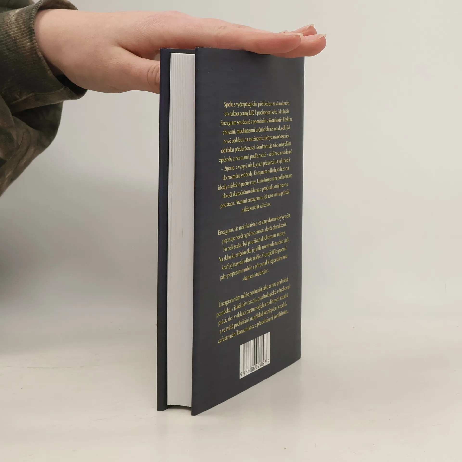 Spolu s vyčerpávajícím přehledem se vám dostává do rukou cenný klíč k pochopení sebe i druhých. Eneagram současně s poznáním zákonitostí v lidském chování, mechanismů určující náš osud, odkrývá nové pohledy na možnosti změny a osvobození se od tlaku předurčenosti. Konfrontuje nás s navyklými způsoby a normami, podle nichž – většinou nevědomě – žijeme, a vyzývá nás k jejich překonání a vykročení do rozměru svobody. Umožňuje nám pohlédnout do očí skutečnému dilema a probudit naší pravou postatu. Poznání eneagramu, jež tato niha přínáší, může změnit váš život. Eneargam, víc než dva tisíce let starý dynamický systém, popisuje devět typů osobnosti, devět charakterů. Po celá staletí byl používán duchovními mistry. Na sklonku středověku jej dále rozvinuli mudrci súfi, kteří jej nazvali „Boží tváří“. Gurdjieff jej popsal jako perpetum mobile a přirovnal k legendárnímu „kameni mudrců“.