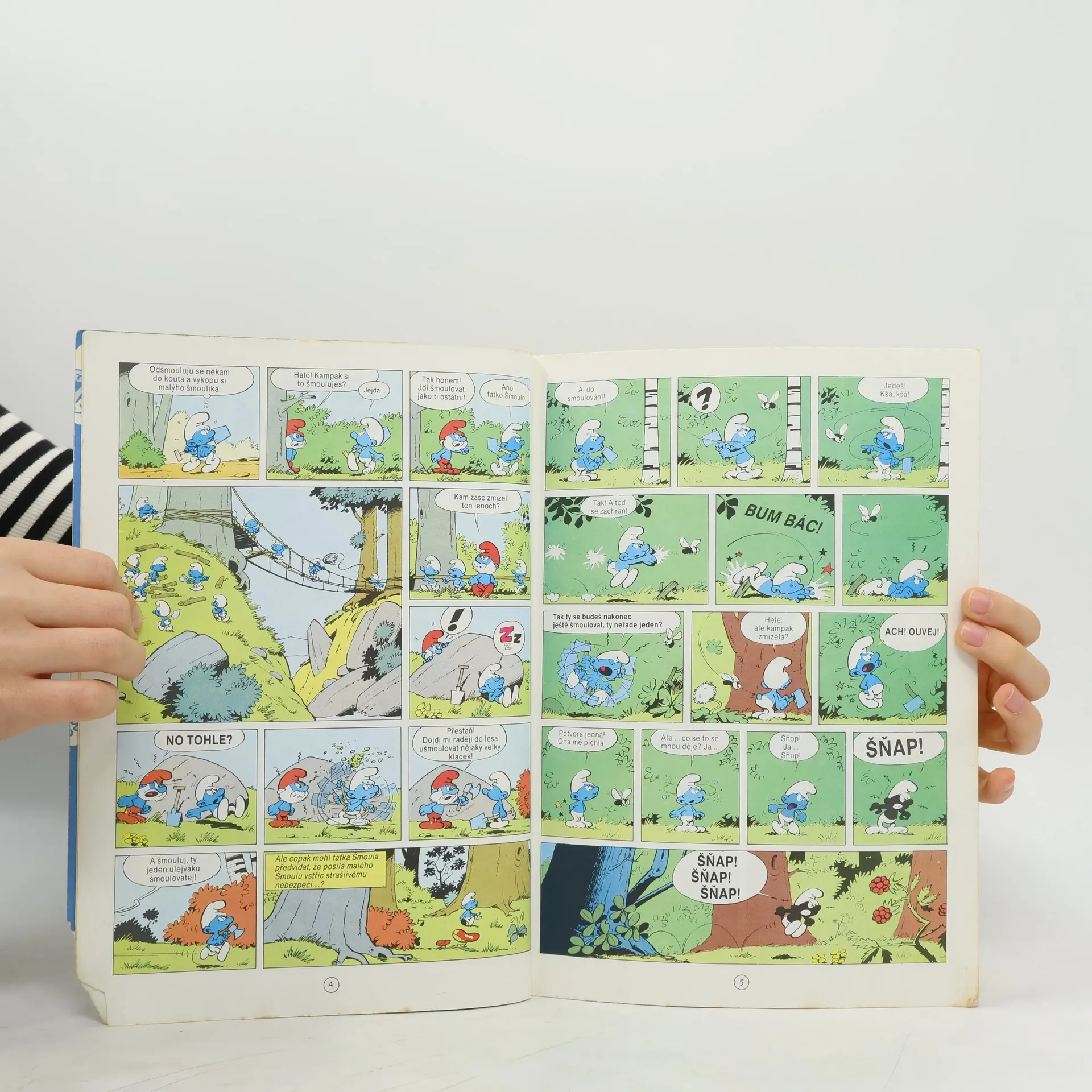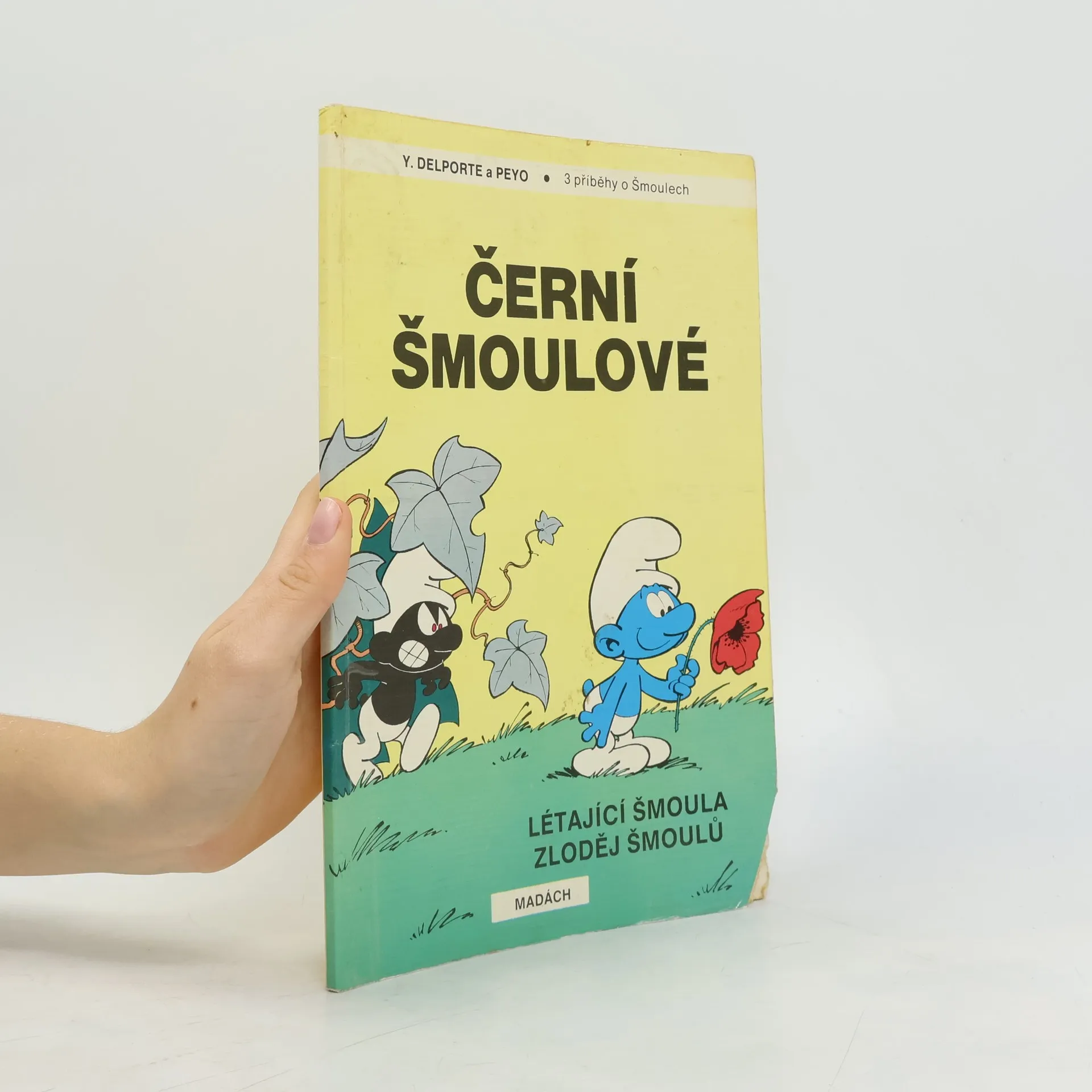 Tří příběhy o Šmoulech: Černí Šmoulové Létající Šmoula Zloděj Šmoulů VYDAL: Madách ŽÁNR: dětský, humorný POZNÁMKY: Paperback 200x280mm, barevný, 64 stran, cena 39 Kčs. Originál:3 Histoires de Schtroumpfs: Les schtroumpfs noirs - Le schtroumpf volant - Le voleur de Schtroumpfs j Šmoulů AUTOŘI: [scénář] Yvan Delporte [scénář] Pierre Culliford [kresba] Pierre Culliford [překlad] Hana Kubánková [redakce] Anna Valentová
