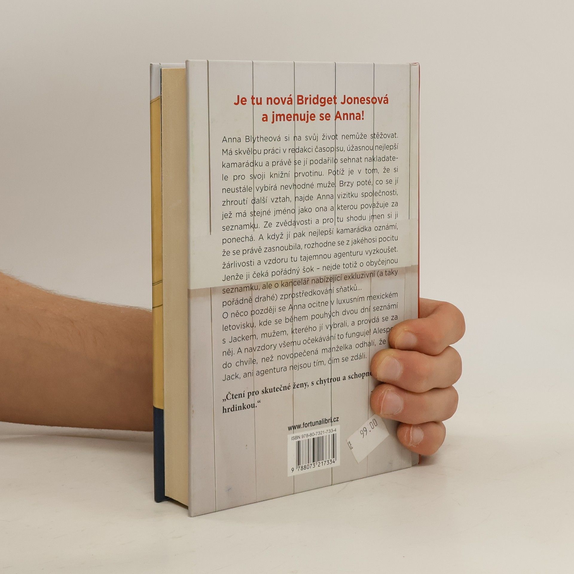 Je tu nová Bridget Jonesová a jmenuje se Anna! Anna Blytheová si na svůj život nemůže stěžovat. Má skvělou práci v redakci časopisu, úžasnou nejlepší kamarádku a právě se jí podařilo sehnat nakladatele pro svoji knižní prvotinu. Potíž je v tom, že si neustále vybírá nevhodné muže. Brzy poté, co se jí zhroutí další vztah, najde Anna vizitku společnosti, jež má stejné jméno jako ona a kterou považuje za seznamku. Ze zvědavosti a pro tu shodu jmen si ji ponechá. A když jí pak nejlepší kamarádka oznámí, že se právě zasnoubila, rozhodne se z jakéhosi pocitu žárlivosti a vzdoru tu tajemnou agenturu vyzkoušet. Jenže ji čeká pořádný šok – nejde totiž o obyčejnou seznamku, ale o kancelář nabízející exkluzivní (a taky pořádně drahé) zprostředkování sňatků... O něco později se Anna ocitne v luxusním mexickém letovisku, kde se během pouhých dvou dní seznámí s Jackem, mužem, kterého jí vybrali, a provdá se za něj. A navzdory všemu očekávání to funguje! Alespoň do chvíle, než novopečená manželka odhalí, že ani Jack, ani agentura nejsou tím, čím se zdáli.