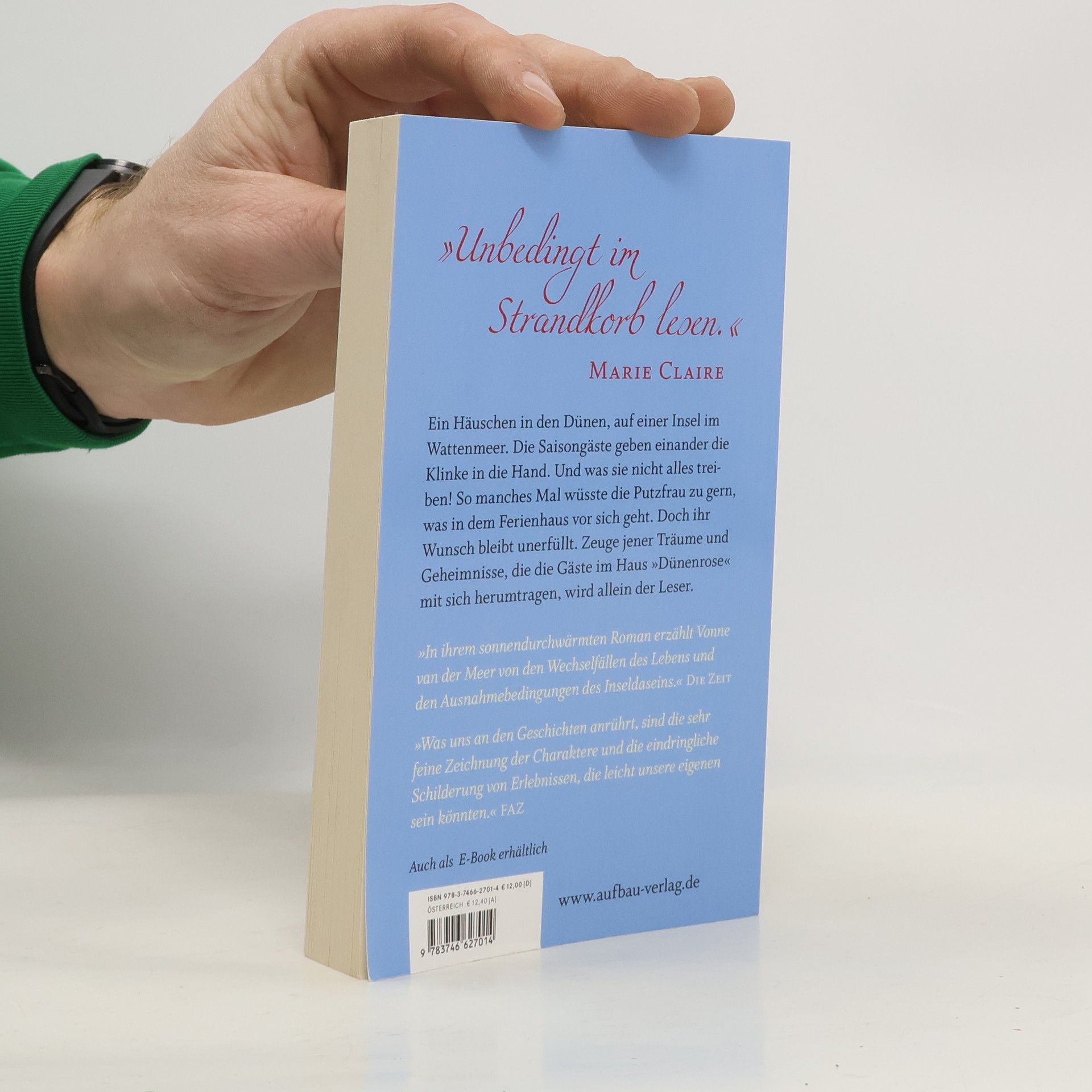 »Unbedingt im Strandkorb lesen.« Marie Claire Ein Häuschen in den Dünen, auf einer Insel im Wattenmeer. Die Saisongäste geben einander die Klinke in die Hand. Und was sie nicht alles treiben! So manches Mal wüsste die Putzfrau zu gern, was in dem Ferienhaus vor sich geht. Doch ihr Wunsch bleibt unerfüllt. Zeuge jener Träume und Geheimnisse, die die Gäste im Haus „Dünenrose“ mit sich herumtragen, wird allein der Leser. »In ihrem sonnendurchwärmten Roman erzählt Vonne van der Meer von den Wechselfällen des Lebens und den Ausnahmebedingungen des Inseldaseins.« Die Zeit »Was uns an den Geschichten anrührt, sind die sehr feine Zeichnung der Charaktere und die eindringliche Schilderung von Erlebnissen, die leicht unsere eigenen sein könnten.« FAZ