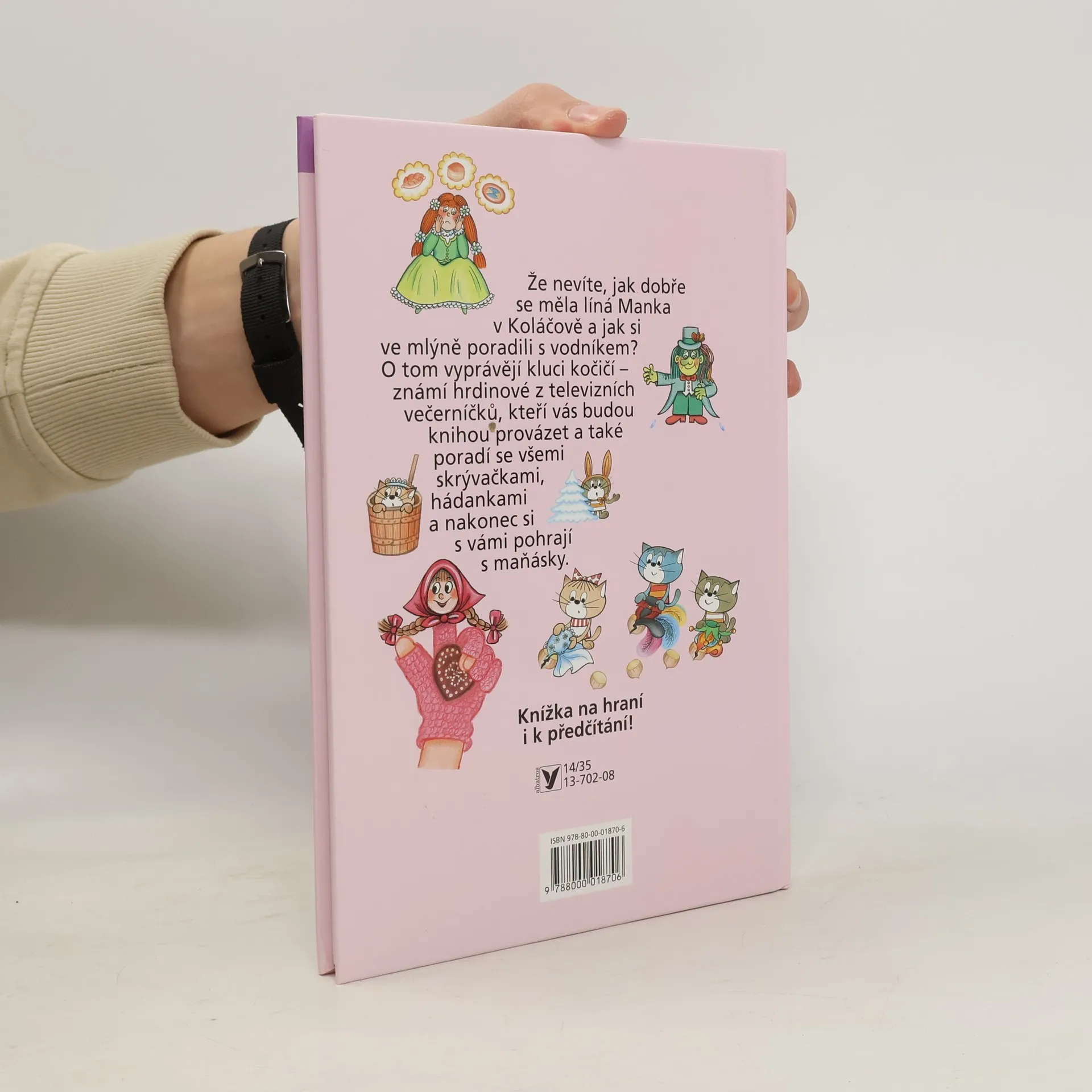 Že nevíte, jak dobře se měla Líná Manka v Koláčově a jak si ve mlýně poradili s vodníkem? O tom vám poví kluci kočičí - známí hrdinové z televizních večerníčků, kteří vás budou knihou provázet a také vám poradí se všemi skrývačkami i hádankami. Kdo je jen trošičku šikovný, nakonec si s nimi vyrobí maňásky z docela obyčejného pinpongového míčku a zahraje si pohádku!