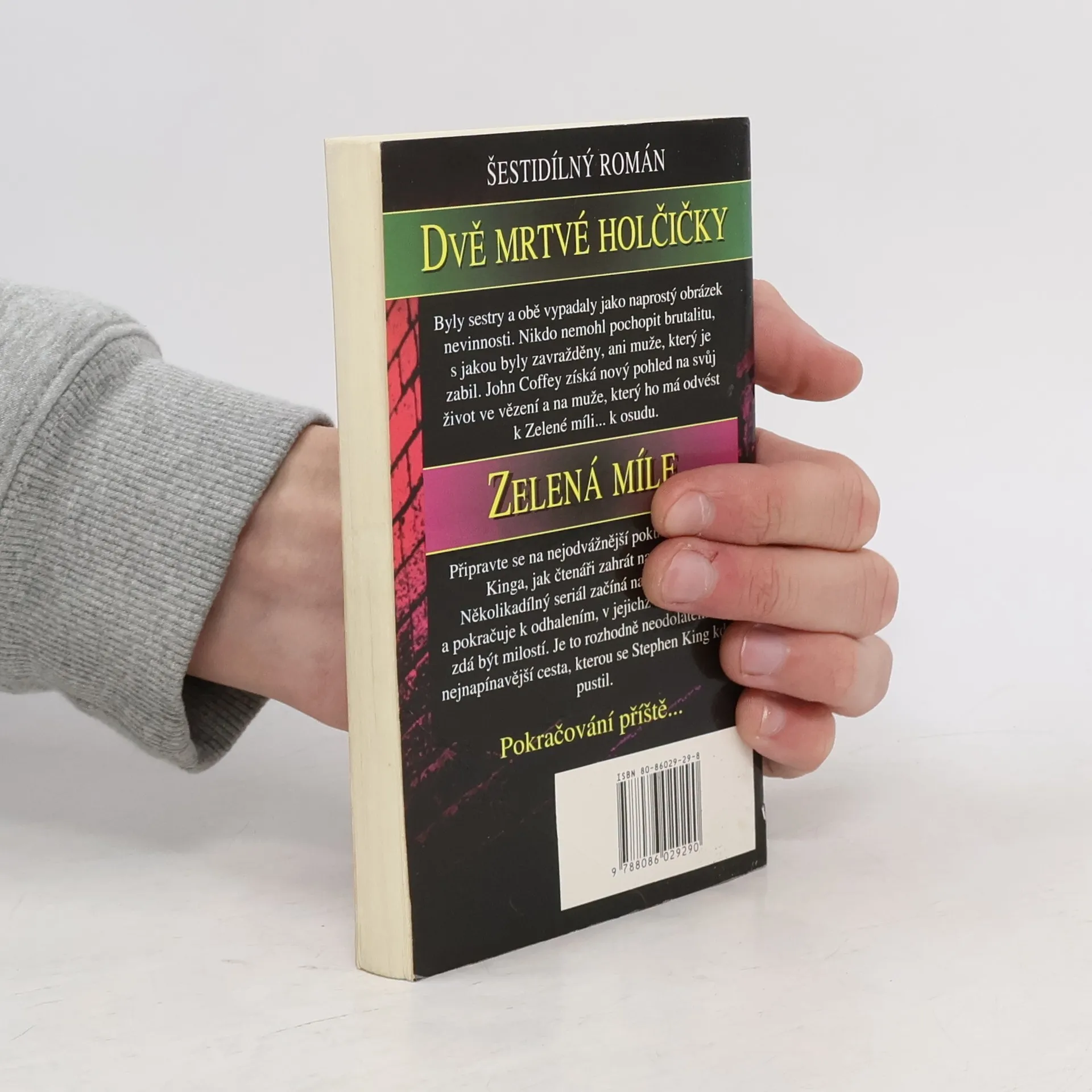 Byly sestry a obě vypadaly jako naprostý obrázek nevinnosti. Nikdo nemohl pochopit brutalitu, s jakou byly zavražděny, ani muže, který je zabil. John Coffey získá nový pohled na svůj život ve vězení a na muže, který ho má odvést k Zelené míli… k osudu. Připravte se na nejodvážnější pokus Stephena Kinga, jak čtenáři zahrát na nervy. Několikadílný seriál začíná na křesle smrti a pokračuje k odhalení, v jejichž světle se smrt zdá být milostí. Je to rozhodně neodolatelná a nejnajpínavější cesta, kterou se Stephen King kdy pustil.