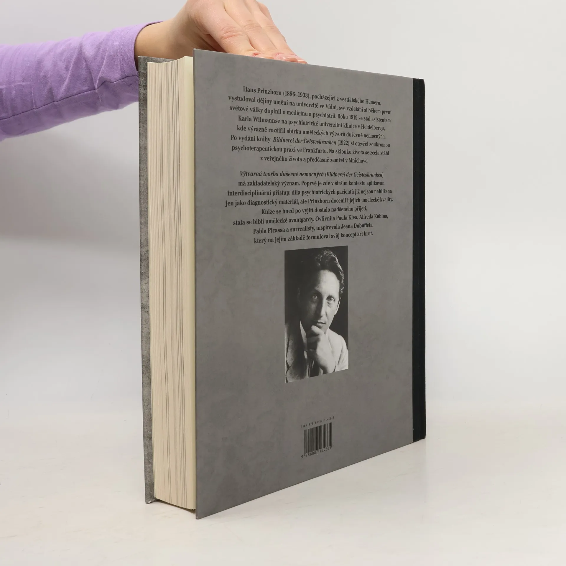 Hans Prinzhorn (1886-1933) německý psychiatr, hudebník, filosof a kunsthistorik se narodil ve vestfálském Henreru. Studoval dějiny umění a filozofii na univerzitě ve Vídni, kde v roce 1908 získal doktorát. Krátce nato odešel do Anglie, kde se profesionálně věnoval zpěvu. Následně na to však vystudoval lékařství a psychiatrii a za 1. světové války sloužil na frontě jako praktický lékař. V roce 1919 se stal asistentem Karla Willmanse na psychiatrické léčebně při univerzitě v Heidelbergu. Jeho úkolem bylo rozšířit uměleckou kolekci utvořenou mentálně nemocnými pacienty. Když v roce 1921 odešel obsahovala sbírka více než 5000 prací od přibližně 450 pacientů. Kniha Výtvarná tvorba duševně nemocných (Bildnerei der Geisteskranken) vydaná v roce 1922 má zakladatelský význam. Poprvé je zde v širším kontextu aplikován interdisciplinární přístup: díla psychiatrických pacientů již nejsou nahlížena jen jako diagnostický materiál, Prinzhorn docenil i jejich umělecké kvality. Knize se hned po vyjití dostalo nadšeného přijetí, kolovala v Bauhausu a okamžitě stala se biblí pařížské umělecké avantgardy. Ovlivnila Paula Klea, Alfreda Kubina, Pabla Picassa a surrealisty, inspirovala Jeana Dubuffeta, který na jejím základě formuloval svůj koncept art brut. Hans Bellmer ji dokonce označil za zásadní událost století. Nyní vychází poprvé v českém překladu.