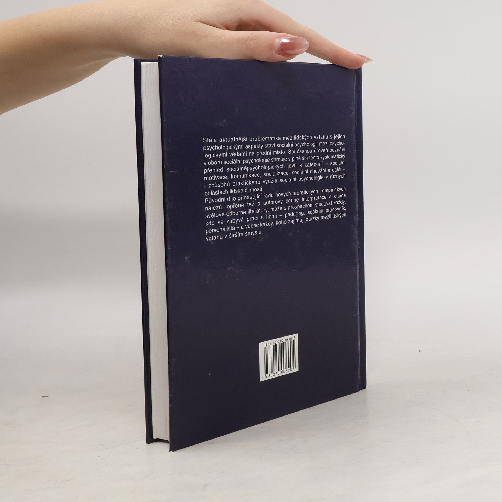 Kniha shrnuje současnou úroveň poznání v oboru sociální psychologie. Přináší řadu nových teoretických a empirických nálezů, opřených o autorovy cenné interpretace a citace světové odborné literatury. Může ji s prospěchem studovat každý, kdo se zabývá prací s lidmi nebo koho zajímají otázky mezilidských vztahů v širším smyslu.
