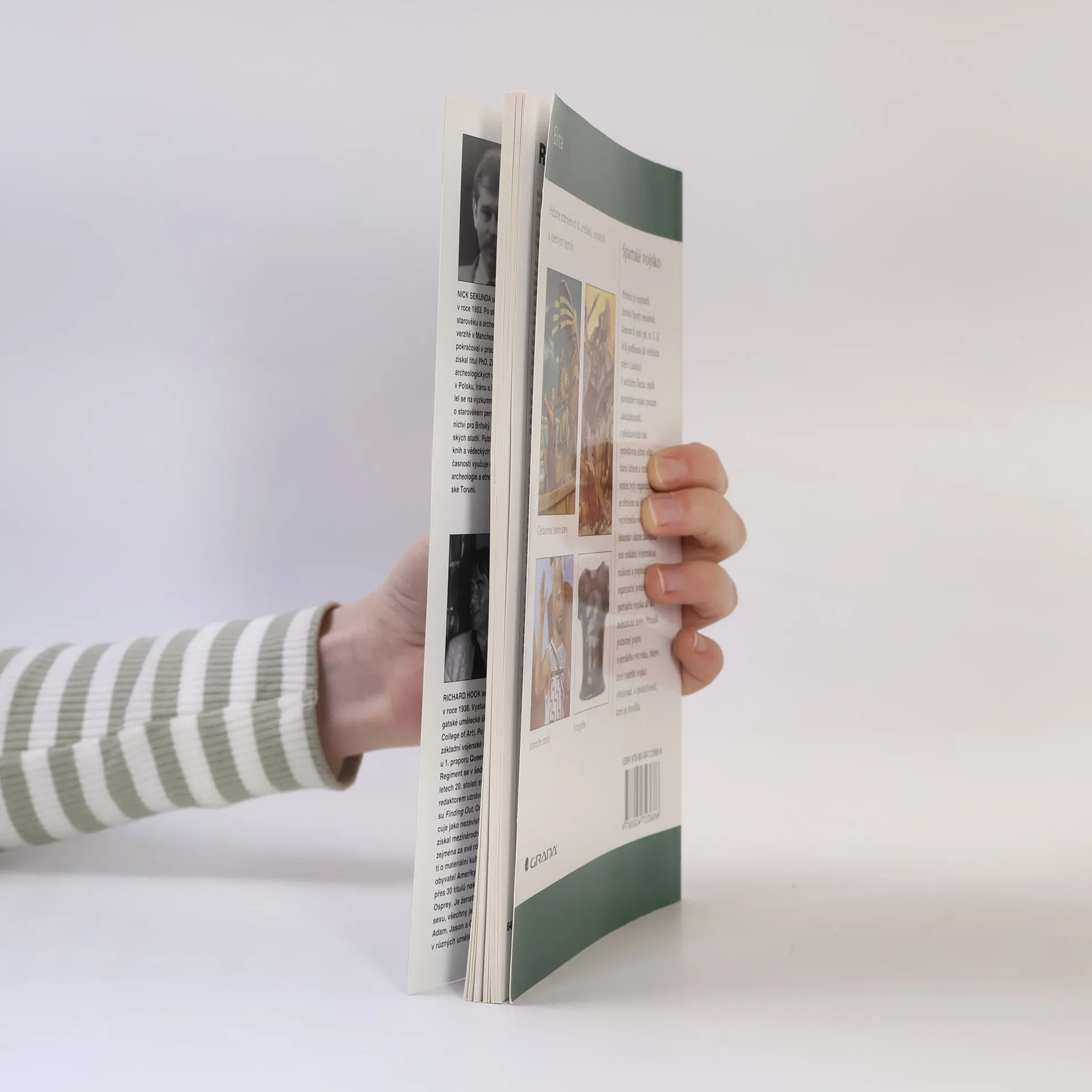 Vybavení, výzbroj a organizace starověkého spartského vojska. Polský historik N. Sekunda věnoval svou práci popisu starověkého spartského vojska. Čerpal z řady historických pramenů a také dochovaných bronzových a kamenných sošek, stél, reliéfů i jiných archeologických nálezů. Popisuje výcvik spartských chlapců, organizaci hoplítského vojska, vojenský oděv, obuv i účes. Zvláštní pozornost je věnována výzbroji vojáků - kopím, štítům, přilbám, mečům. Výklad doprovázejí fotografie archeologických nálezů a ilustrace (historické rekonstrukce) spoluautora knihy R. Hooka. V závěru literatura a rejstřík.