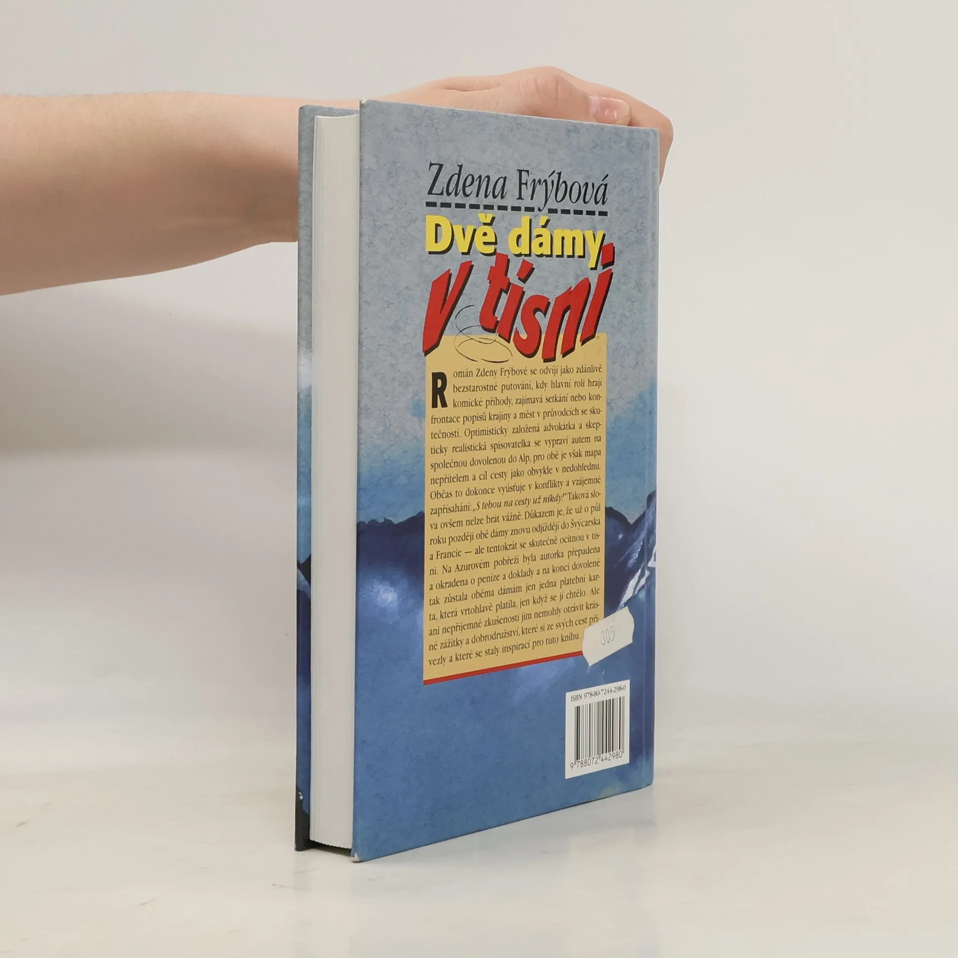 Autobiografickou knihu Zdeny Frýbové prostupuje nálada humorně bezstarostného putování Švýcerskem a Francií: komické příhody, zajímavá setkání, konfrontace reality s tím, co se popisuje v průvodcích. Dvě dámy v tísni jsou přítelkyně, které se společně vydaly autem na dovolenou. Ke konfliktům mezi nimi dochází v četných stresových situacích, vyplývajících ze skutečnosti, že obě postrádají smysl pro orientaci a mapa je jejich nepřítelem. V autentické vyprávění o vlastních cestách autorka vylíčila nejen krásné zážitky a zábavná dobrodružství, ale též nepříjemné zkušenosti, které ukazují i odvrácenou tvář dnešního světa.