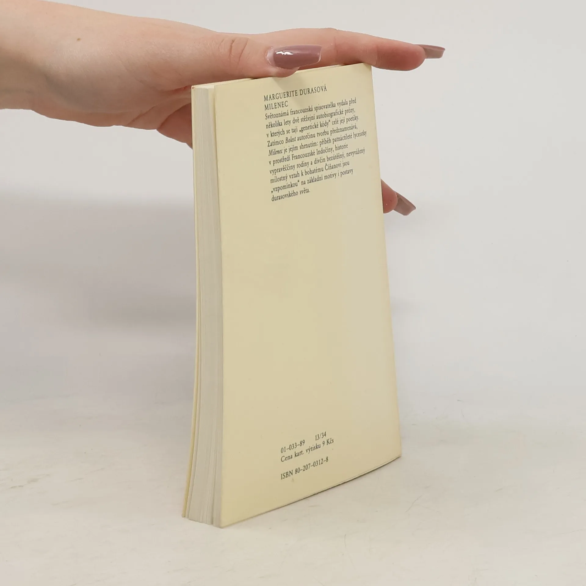 Tématem rozsahem nevelké, o to více však strhující prózy Milenec z roku 1984 je první smyslný prožitek, erotický vztah patnáctileté chudé bělošky a o dvanáct let staršího bohatého Číňana, zasazený do kulis lidnatého Šalonu, čínské enklávy indočínského Saigonu. V novele, jež nese zřetelné autobiografické prvky, rozehrála Marguerite Durasová drama lásky bez budoucnosti, která navzdory své bezvýchodnosti vyniká tělesností a nevysloveným poutem. O tom, jak výjimečná tato próza je, svědčí nejen skutečnost, že v ní mají své kořeny všechny pozdější postavy spisovatelčina díla, ale především ohlas, jejž novela vyvolala. Literární text a potažmo i vztah v něm popisovaný byly sice označovány za skandální, knize se navzdory tomu dostalo hned několika uznání – za francouzské vydání získala autorka prestižní Goncourtovu cenu, za vydání americké cenu Paris-Ritz-Hemingwayovu. V roce 1992 převedl novelu unikátním způsobem na stříbrné plátno režisér Jean-Jacques Annaud. „Vytvořit bezvýchodnou situaci je pro mě ukojení, kterému se říká literatura“, prohlásila autorka a právě tato slova jsou pro Milence více než charakteristická. Konečně byla to právě Marguerita Durasová, která byla v líčení mučivé erotické bolesti nedostižná.