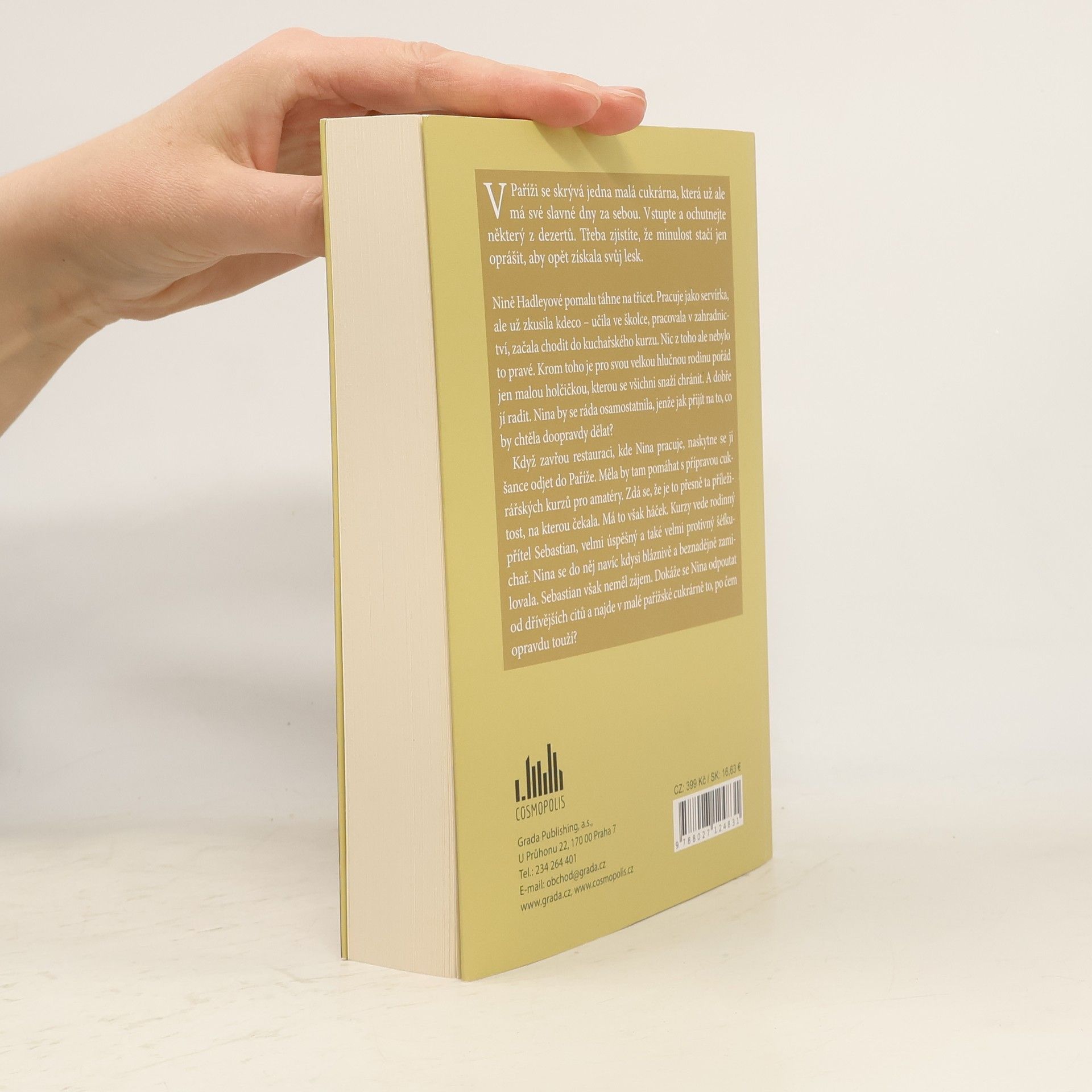 V Paříži se skrývá jedna malá cukrárna, která má už ale své slavné dny za sebou. Vstupte a ochutnejte některý z dezertů. Třeba zjistíte, že minulost stačí jen oprášit, aby opět získala svůj lesk. Nině Hadleyové pomalu táhne na třicet. Pracuje jako servírka, ale už zkusila kdeco – učila ve školce, pracovala v zahradnictví, absolvovala také kuchařský kurz. Nic z toho ale nebylo to pravé. Krom toho je pro svou velkou hlučnou rodinu pořád jen malou holčičkou, kterou se všichni snaží chránit. A dobře jí radit. Nina by se ráda osamostatnila, jenže jak přijít na to, co by doopravdy chtěla dělat? Když na dva měsíce kvůli rekonstrukci zavřou restauraci, kde Nina pracuje, naskytne se jí šance odjet do Paříže. Měla by tam pomáhat s přípravou cukrářských kurzů pro amatéry. Zdá se, že je to přesně ta příležitost, na kterou čekala. Má to však háček. Kurzy vede rodinný přítel Sebastian, velmi úspěšný a také velmi protivný šéfkuchař. Nina se do něj navíc kdysi bláznivě a beznadějně zamilovala. Sebastian ovšem neměl zájem. Dokáže se Nina odpoutat od dřívějších citů a najde v malé pařížské cukrárně to, po čem opravdu touží?