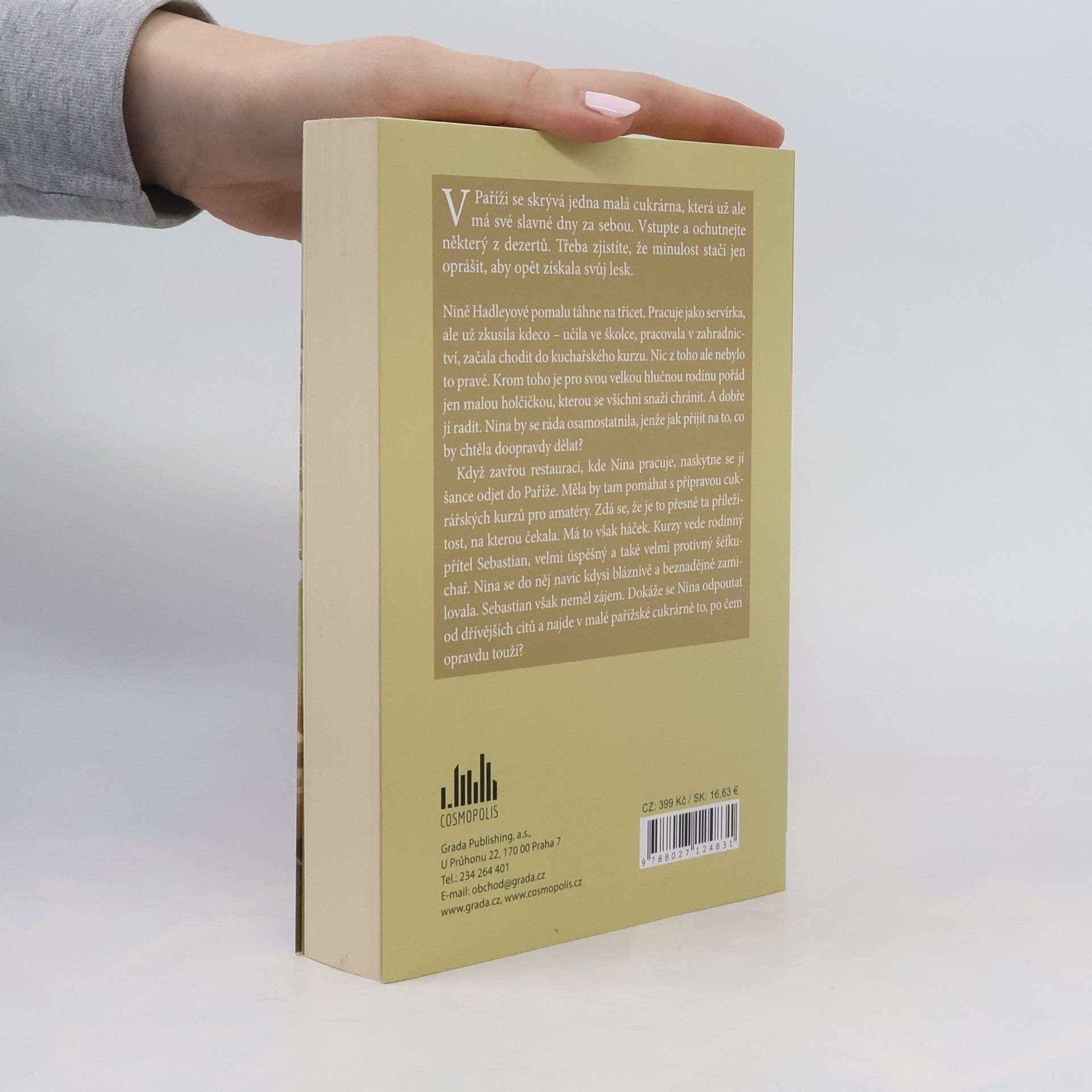 V Paříži se skrývá jedna malá cukrárna, která má už ale své slavné dny za sebou. Vstupte a ochutnejte některý z dezertů. Třeba zjistíte, že minulost stačí jen oprášit, aby opět získala svůj lesk. Nině Hadleyové pomalu táhne na třicet. Pracuje jako servírka, ale už zkusila kdeco – učila ve školce, pracovala v zahradnictví, absolvovala také kuchařský kurz. Nic z toho ale nebylo to pravé. Krom toho je pro svou velkou hlučnou rodinu pořád jen malou holčičkou, kterou se všichni snaží chránit. A dobře jí radit. Nina by se ráda osamostatnila, jenže jak přijít na to, co by doopravdy chtěla dělat? Když na dva měsíce kvůli rekonstrukci zavřou restauraci, kde Nina pracuje, naskytne se jí šance odjet do Paříže. Měla by tam pomáhat s přípravou cukrářských kurzů pro amatéry. Zdá se, že je to přesně ta příležitost, na kterou čekala. Má to však háček. Kurzy vede rodinný přítel Sebastian, velmi úspěšný a také velmi protivný šéfkuchař. Nina se do něj navíc kdysi bláznivě a beznadějně zamilovala. Sebastian ovšem neměl zájem. Dokáže se Nina odpoutat od dřívějších citů a najde v malé pařížské cukrárně to, po čem opravdu touží?