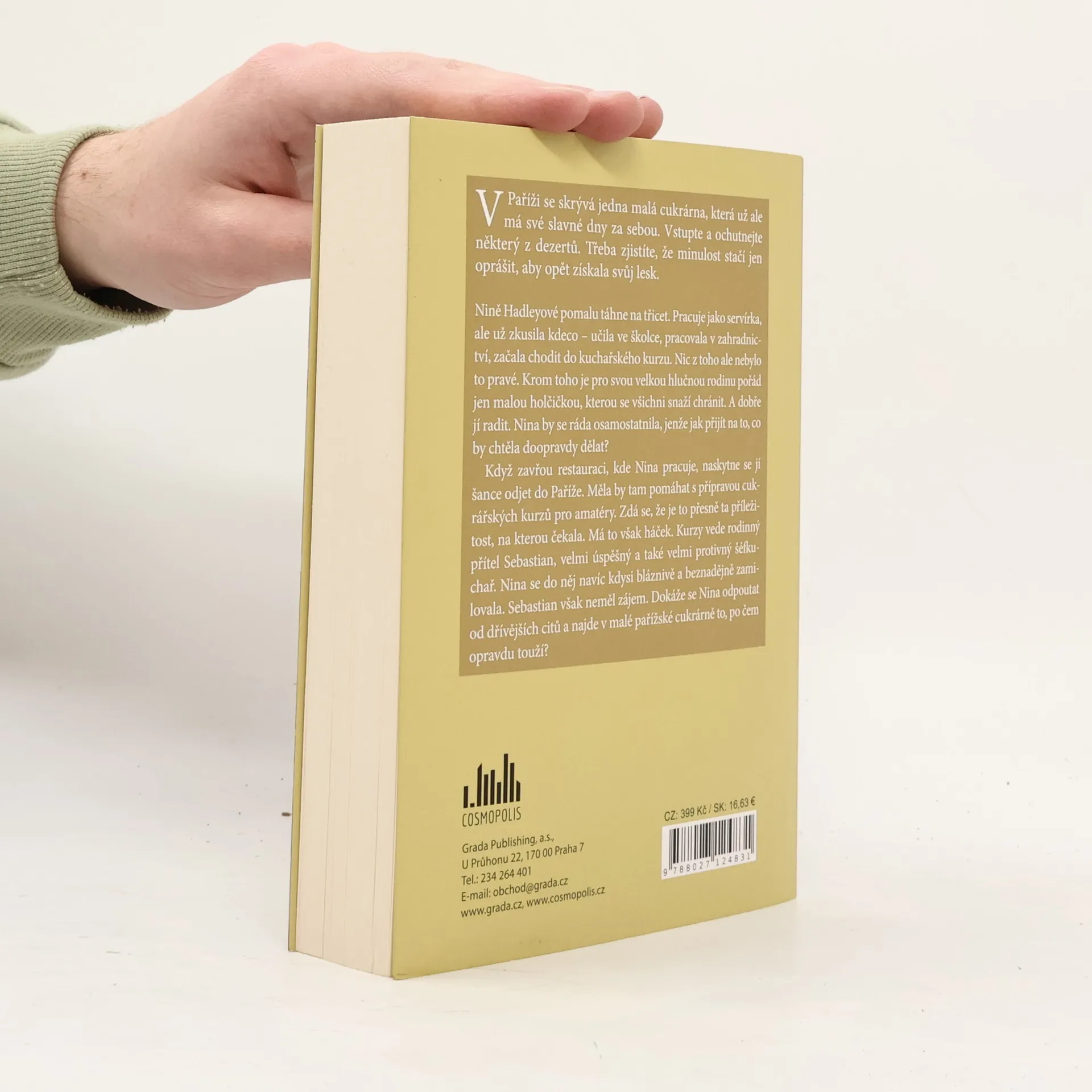 V Paříži se skrývá jedna malá cukrárna, která má už ale své slavné dny za sebou. Vstupte a ochutnejte některý z dezertů. Třeba zjistíte, že minulost stačí jen oprášit, aby opět získala svůj lesk. Nině Hadleyové pomalu táhne na třicet. Pracuje jako servírka, ale už zkusila kdeco – učila ve školce, pracovala v zahradnictví, absolvovala také kuchařský kurz. Nic z toho ale nebylo to pravé. Krom toho je pro svou velkou hlučnou rodinu pořád jen malou holčičkou, kterou se všichni snaží chránit. A dobře jí radit. Nina by se ráda osamostatnila, jenže jak přijít na to, co by doopravdy chtěla dělat? Když na dva měsíce kvůli rekonstrukci zavřou restauraci, kde Nina pracuje, naskytne se jí šance odjet do Paříže. Měla by tam pomáhat s přípravou cukrářských kurzů pro amatéry. Zdá se, že je to přesně ta příležitost, na kterou čekala. Má to však háček. Kurzy vede rodinný přítel Sebastian, velmi úspěšný a také velmi protivný šéfkuchař. Nina se do něj navíc kdysi bláznivě a beznadějně zamilovala. Sebastian ovšem neměl zájem. Dokáže se Nina odpoutat od dřívějších citů a najde v malé pařížské cukrárně to, po čem opravdu touží?
