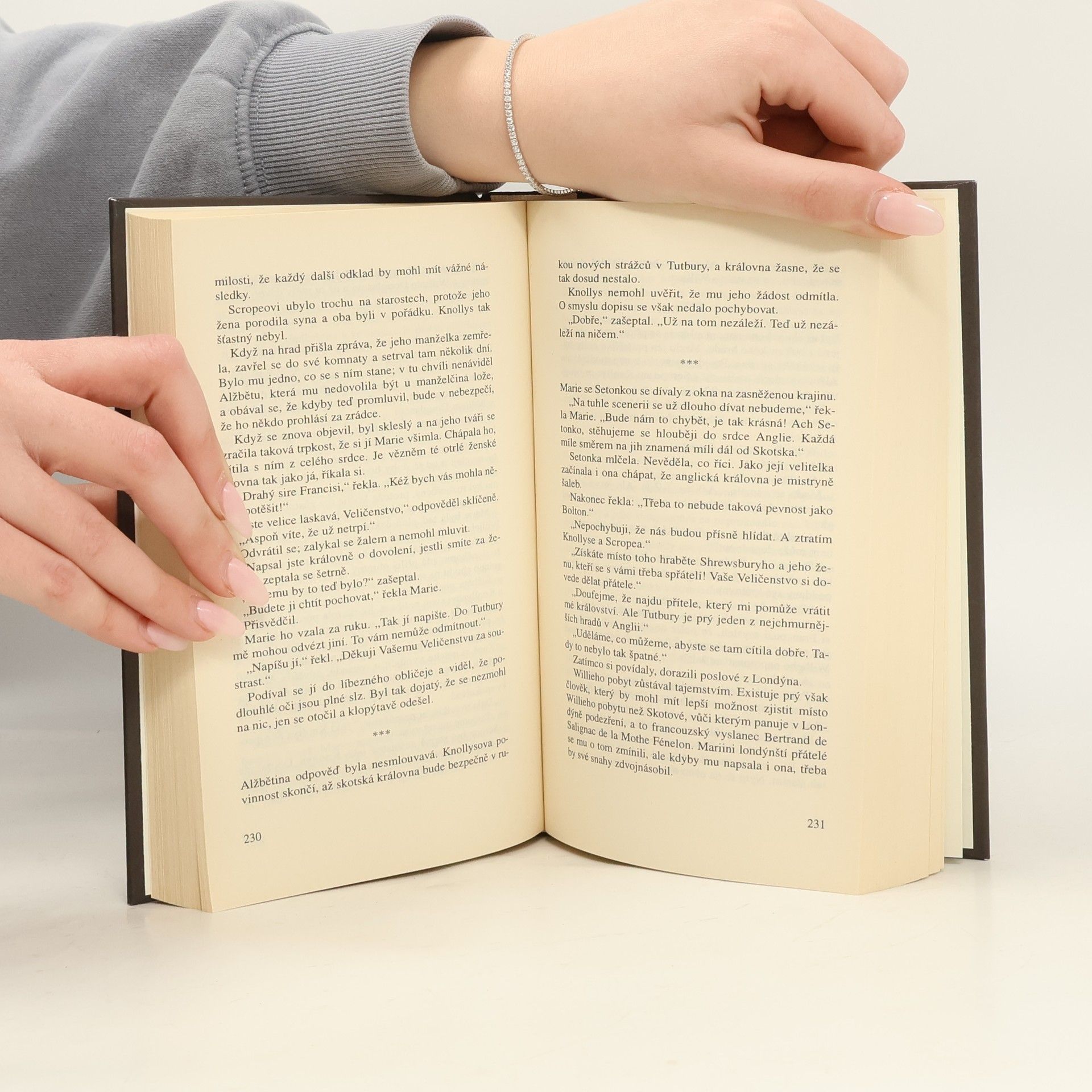 Dramatický a barvitý román anglické autorky je věnován osudům skotské královny Marie Stuartovny po jejím návratu zpět do Skotska. Královna prchá před nevlastním bratrem Jakubem na anglické území, ale Alžběta ji opět zradí ze strachu, že by ji Marie svým manželským původem mohla zbavit trůnu. Jejím dvěma milencům jde pouze o moc a tak i Mariiny lásky končí tragicky. Alžběta Marii uvězní, ponechá jí jen část její družiny a nejnutnější životní potřeby, střídá žalářníky i nehostinné hrady jako vězení. Ze strachu o svou moc bojuje Alžběta proti Mariině katolické opozici, obžaluje ji z pokusu o královraždu a nekonec nechá potupně popravit.