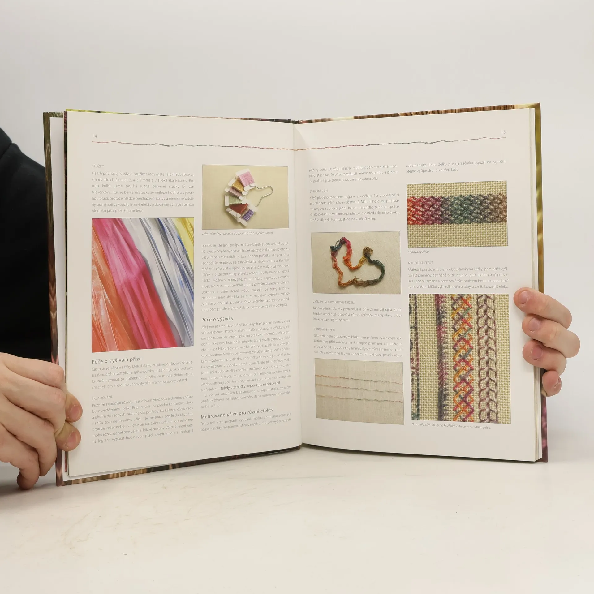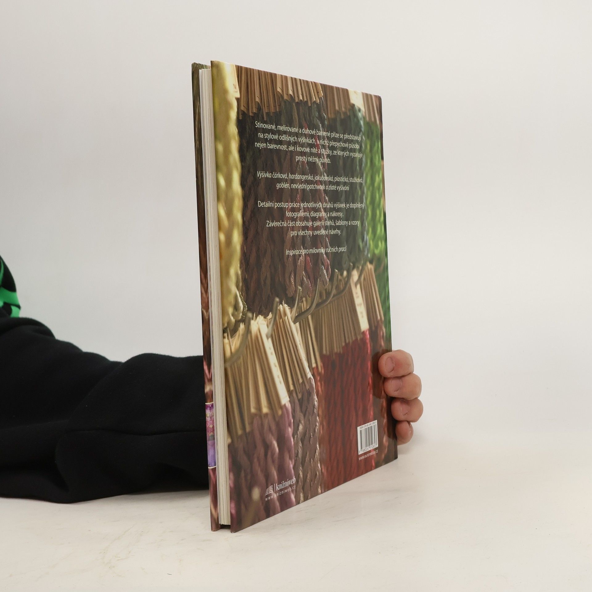 Stínované, melírované a duhově barvené příze se představují na stylově odlišných výšivkách, v nichž přepychově působí nejen barevnost, ale i kovové nitě a stužky, ze kterých vyzařuje prostý něžný půvab. Výšivka čárková, hardangerská, jakubovská, plastická, stužková, goblén, nevšední patchwork a zlaté vyšívání Detailní postup práce jednotlivých druhů výšivek je doplněný fotografiemi, diagramy a nákresy. Závěrečná část obsahuje galerii stehů, šablony a vzory pro všechny uvedené návrhy. Inspirace pro milovníky ručních prací
