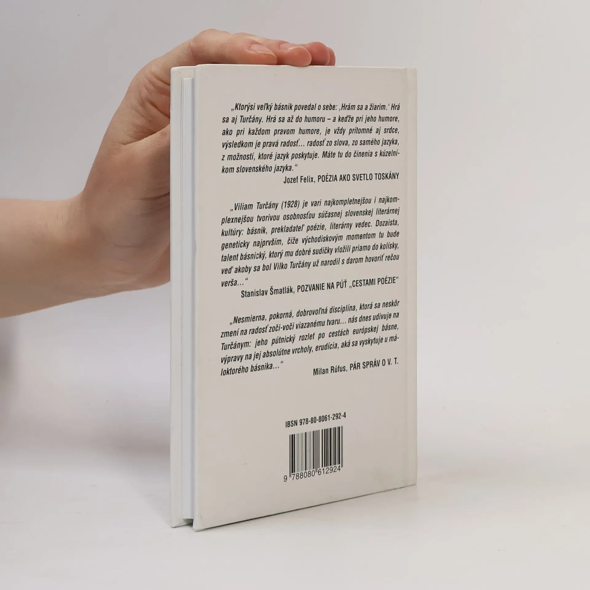 Viliam Turčány patrí medzi najvýznamnejších predstaviteľom staršej generácie súčasnej slovenskej poézie. V kultúrnych spoločnostiach býva dobrým zvykom pri príležitosti životného jubilea najvýznamnejším predstaviteľom básnickej generácie vydávať výber z toho najlepšieho. Ponúkaný výber z Turčányho posledných piatich zbierok prináša čitateľovi to najvyzretejšie a najkvalitnejšie z jeho dlhoročnej tvorby. Na margo autora Stanislav Šmatlák napísal: „Viliam Turčány je vari najkompletnejšou i najkomplexnejšou tvorivou osobnosťou súčasnej slovenskej literárnej kultúry: básnik, prekladateľ poézie, literárny vedec. Dozaista, geneticky najprvším, čiže východiskovým momentom tu bude talent, ktorý mu dobré sudičky vložili priamo do kolísky, veď akoby sa bol Vilko Turčány už narodil s darom hovoriť rečou verša...“ Výber je ilustrovaný prácami akad. maliara Jozefa Ilavského.