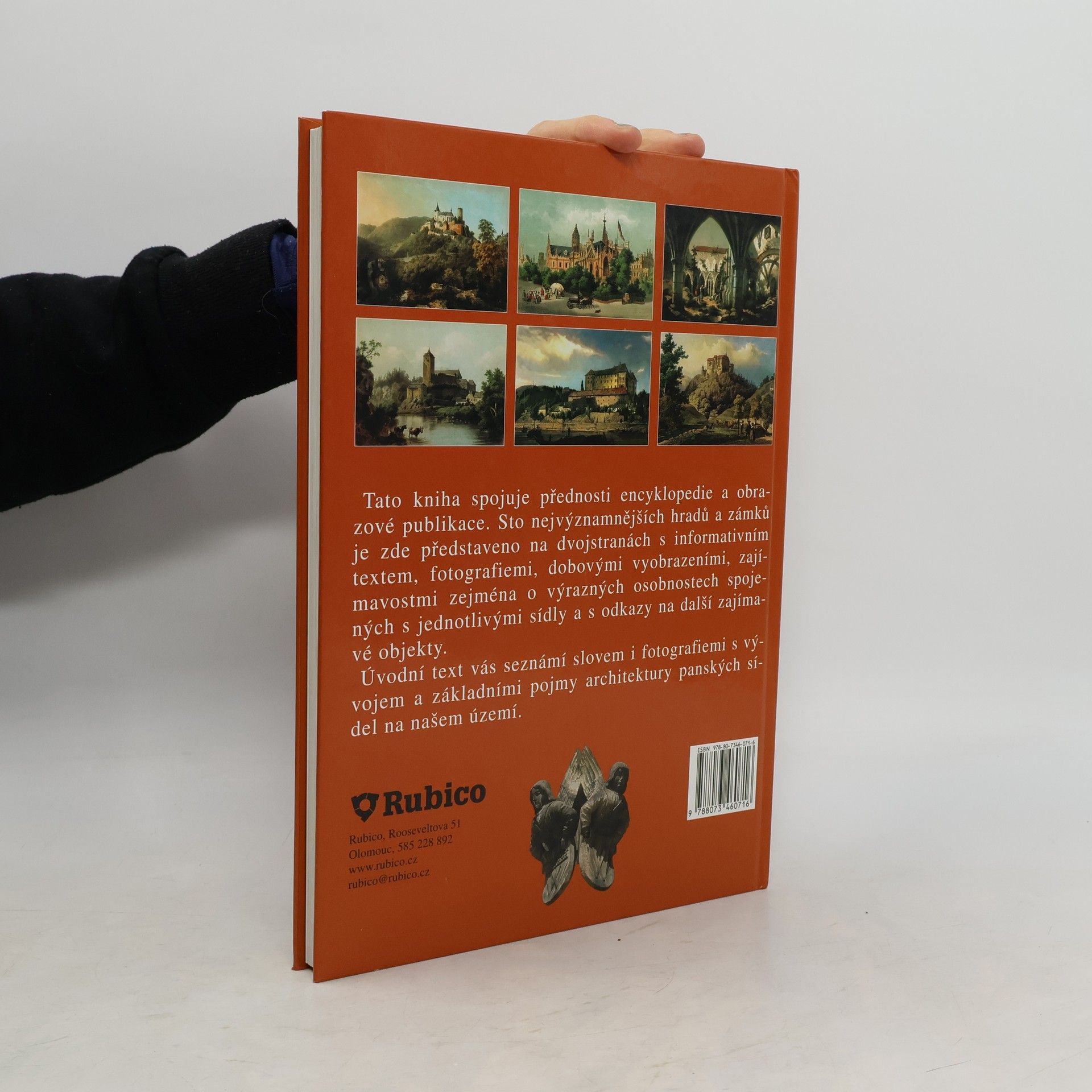V množství našich dochovaných stavebních památek patří hrady a zámky nepochybně k nejatraktivnějším. Cílem této knihy je zaplnit existující mezeru a nabídnout titul, který spojuje přednosti populární encyklopedie a obrazové publikace. Čtenář zde najde sto nejvýznamnějších hradů a zámků na dvojstranách s informativním textem a několika fotografiemi. Tento základní soubor doplňují další objekty, kterým je věnována stručnější informace v samostatném sloupci. V dalších rámečcích je zařazeno množství dobových vyobrazení a také řada zajímavostí, zejména o výrazných osobnostech spojených s jednotlivými sídly. Stručný úvodní text seznamuje čtenáře slovem i fotografiemi alespoň v hrubých rysech s vývojem a základními pojmy architektury panských sídel na našem území.