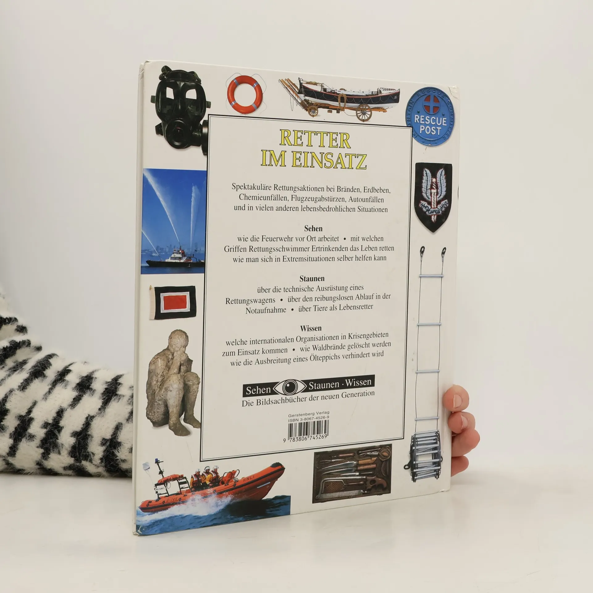 Menschen, die nach einem Erdbeben unter Trümmern verschüttet sind, Seeleute auf einem sinkenden Schiff oder die Passagiere eines abgestürzten Flugzeugs – sie alle hoffen auf Hilfe. Dieses Buch berichtet von spektakulären Rettungsaktionen an Land, zur See, aus der Luft und sogar im All. Es gibt spannende Einblicke in die Arbeit von Sanitätern, Feuerwehrleuten und anderen Helfern, die Menschen und Tiere aus lebensbedrohlichen Situationen retten. Oft gehen diese Retter dabei selbst ein Risiko ein; sie müssen sich auf ihre Ausrüstung verlassen können. Ihre technischen Geräte und Spezialfahrzeuge werden anhand vieler Fotos ausführlich vorgestellt.