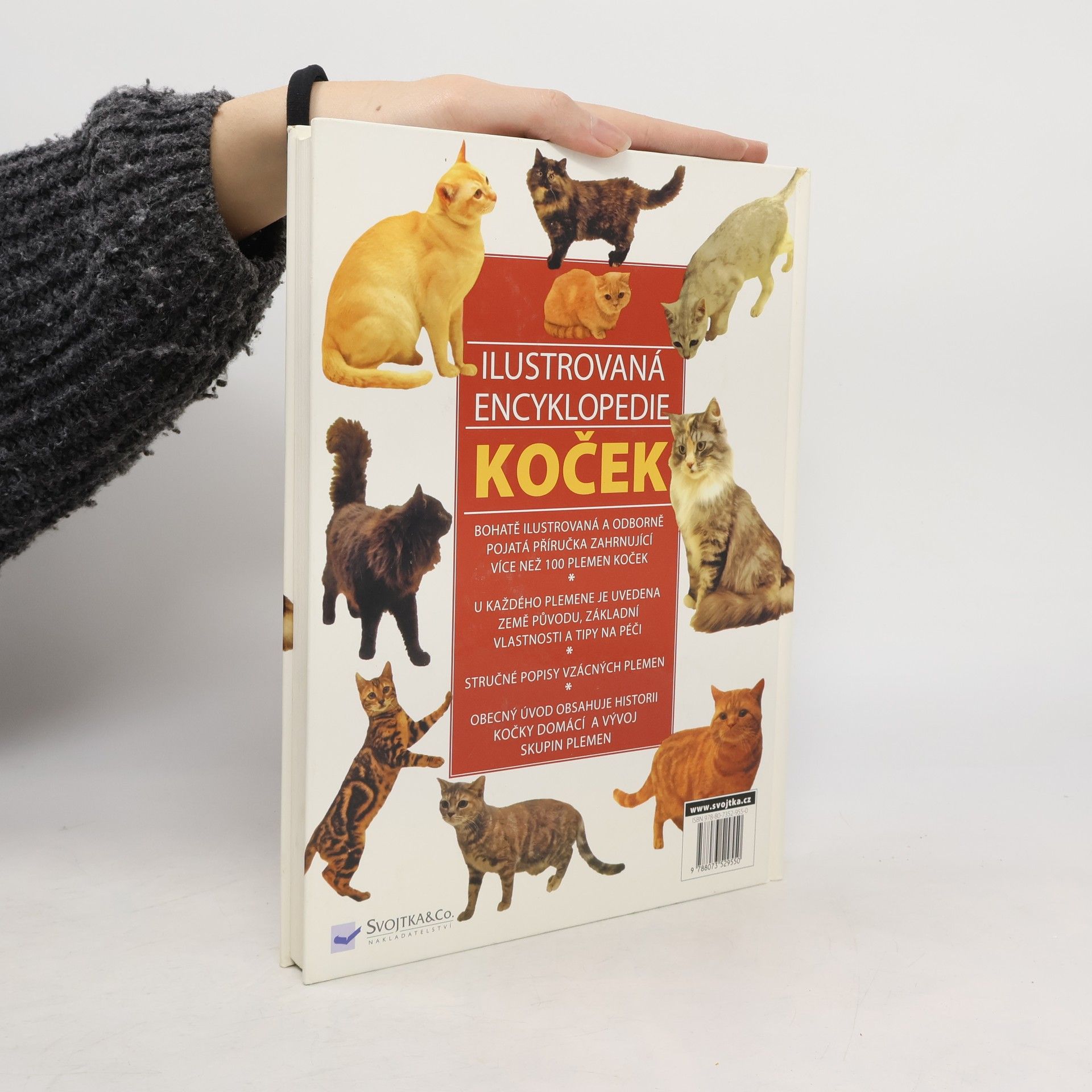Tato srovnávací obrazová příručka všech světových plemen koček je doplněna neocenitelnými praktickými údaji o chovu, výcviku, péči a výstavách. Je bohatě ilustrovaná a obsahuje informace o více než 100 plemen koček. U každého plemene je uvedena země původu, základní vlastnosti a doporučení na péči. Obsahuje i stručné popisy vzácných plemen a historii kočky domácí. Stručné popisy vzácných plemen.