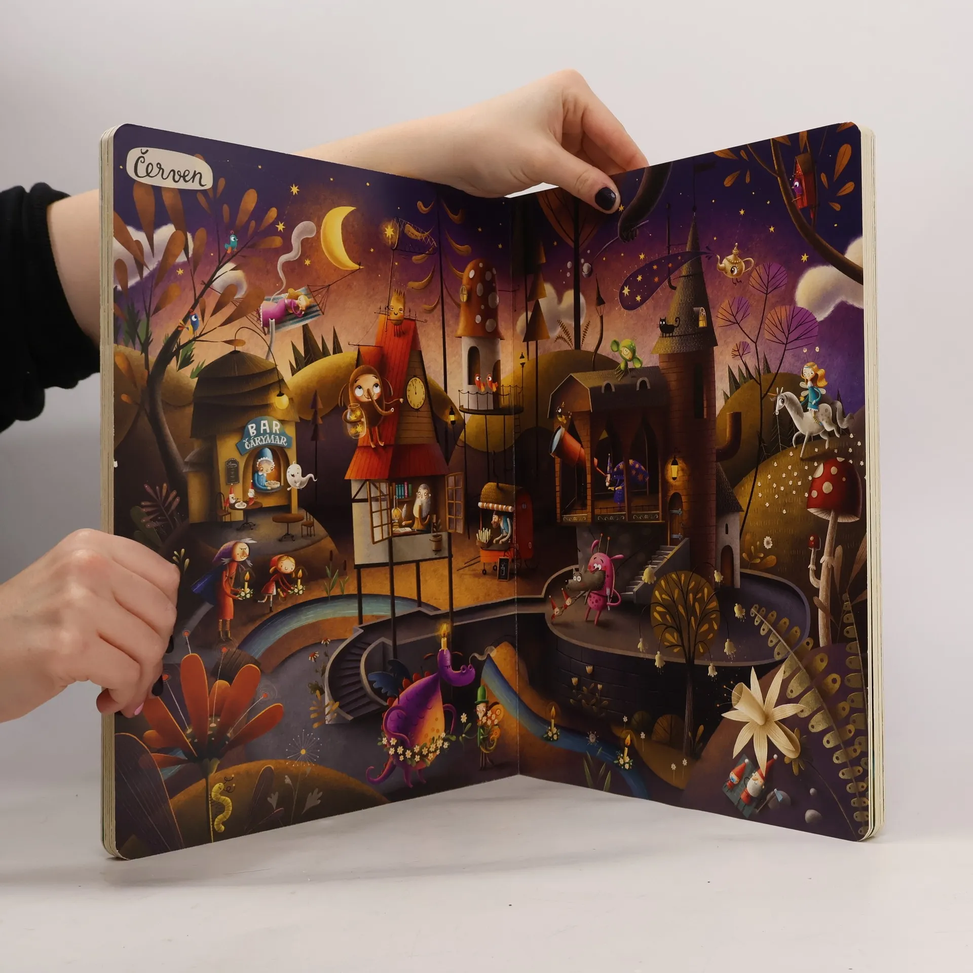 "Pěkný den, moji milí! Jmenuju se Ježibaba a mám velkou radost, že jste k nám přišli na návštěvu. Kouzlenka vám vyčaruje čaj i výtečnou bramboračku. A určitě si nenechte ujít ani Bábinčiny dobroty. S Dobrodouškem zažijete spoustu legrace a s Vodníkem nahlédnete pod vodní hladinu. Ale pozor na Raráška, ať vám nevyvede nějakou lotrovinu. Jestlipak vás někdy napadlo, jak by se žilo v pohádce? Co asi dělá taková Karkulka, kouzelník, vlk, trpaslíci, drak nebo princezna po celý rok? Vydejte se s námi na neuvěřitelnou cestu plnou překvapení a neobyčejných setkání s pohádkovými hrdiny: pážetem Kratochvílem, vílou Květinkou, Chobotosaurem a Dráčátkem. Rok v pohádce obsahuje dvanáct dvoustran, přičemž každá z nich vyobrazuje jeden měsíc roku. Na začátku knihy se seznámíte s jejími hrdiny a na konci si zahrajete zábavnou hru. Knížku si můžete prohlížet celé hodiny. Procvičíte si při tom postřeh, vyprávění příběhů, ale hlavně se výborně zabavíte. Pro všechny milovníky Roku v lese. Protože není les jako les — tenhle je pohádkový! "