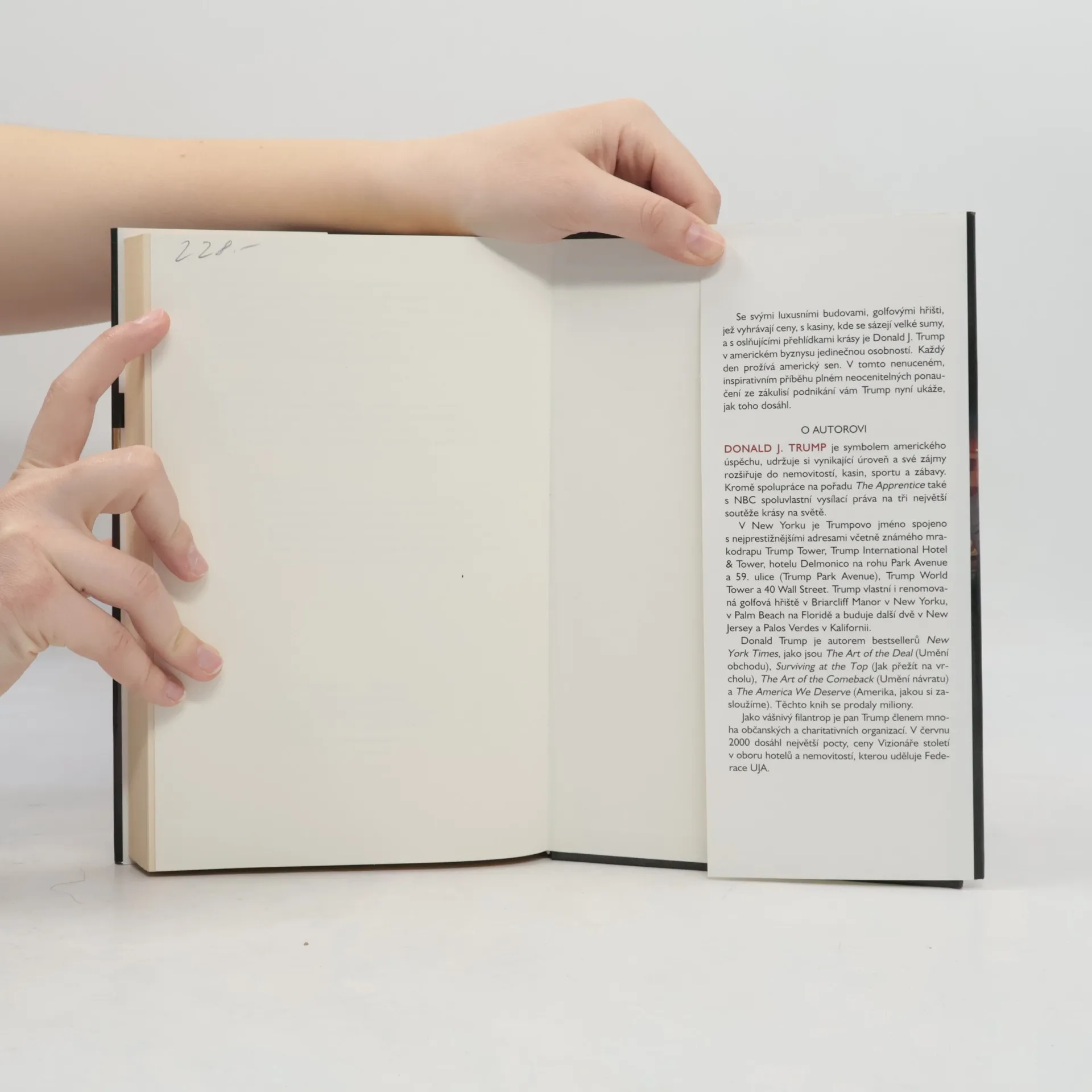 Titán v oboru nemovitostí, autor bestsellerů a televizní showman Donald Trump odhaluje podnikatelské moudrosti v této otevřené knize plné tajemství svého úspěchu. Lidé touží po tom osvojit si schopnost vytvářet velké osobní bohatství a dělat skvělé obchody. Trump, jenž je ztělesněním amerického snu, zde nabízí ty nejlepší tipy, jak toho dosáhnout.