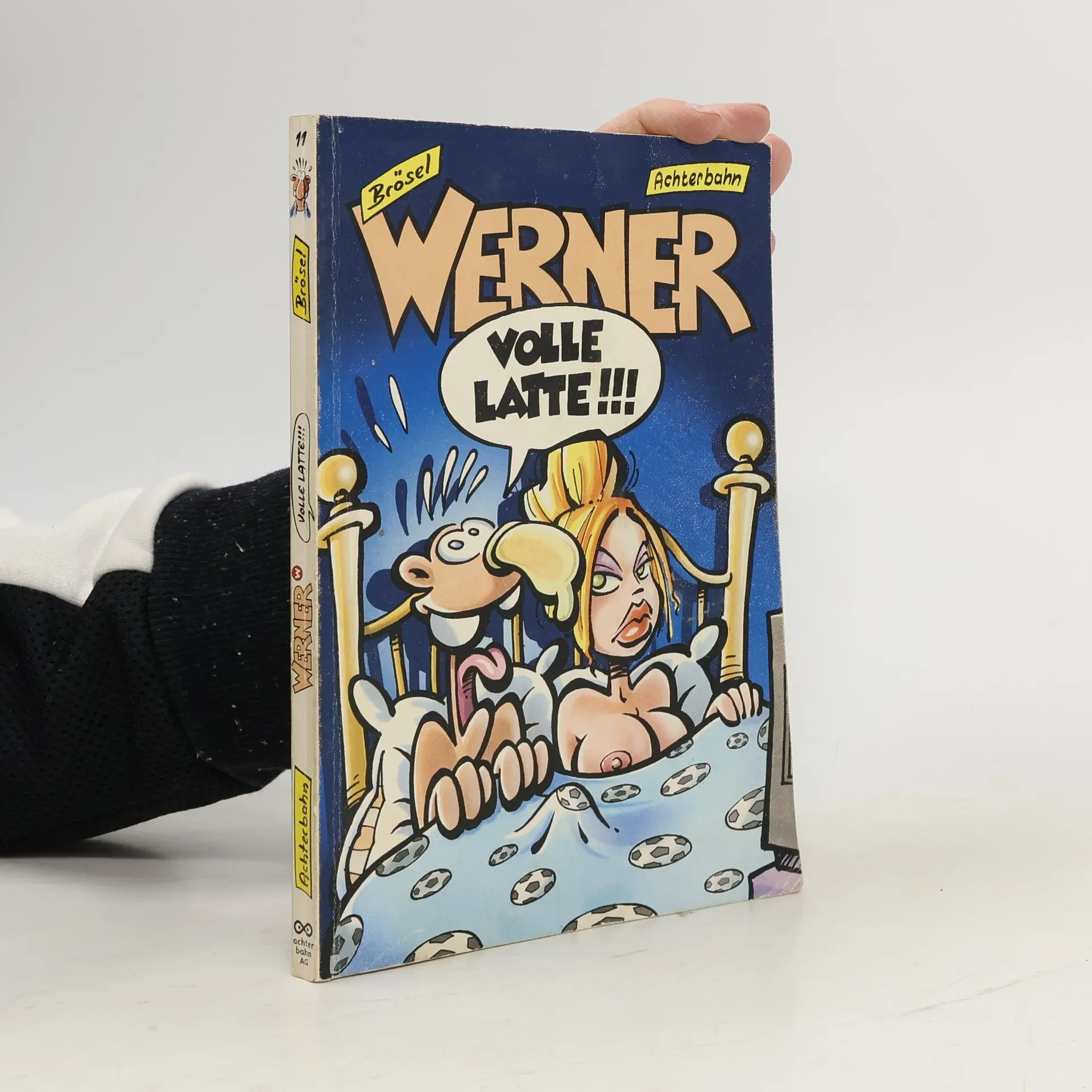 WERNER – VOLLE LATTE! (2002) geht der Frage auf den Grund, wie man eigentlich an eine Frau kommt, wenn man eine Comicfigur ist. Und so viel kann man vorweg Es is alles nich so einfach – vor allem wenn sich auch noch der Zeichner höchstselbst einmischt. Auß Das legendäre Fußballspiel geht in die nächste Runde – diesmal auf einem Campingplatz auf Korsika, den Werner zum Gasbräter Freizeitstadion umfunktioniert. Dort geht’s im Duell zwischen TUS Isomatte gegen FC Chemoklo um nicht weniger als die Goldene Grillzange. Und zum dramatischen Abschluss stellt Rennarzt Prof. Dr. Rupius Oszilitis im Endstadium bei Werner fest. Seine Organe sind von der Einzylindererei völlich zerschüttelt, was so viel heißt Nie wieder Motorrad fahren! Kann Dr. Rupius helfen oder ist es mit Werner endgültig vorbei?