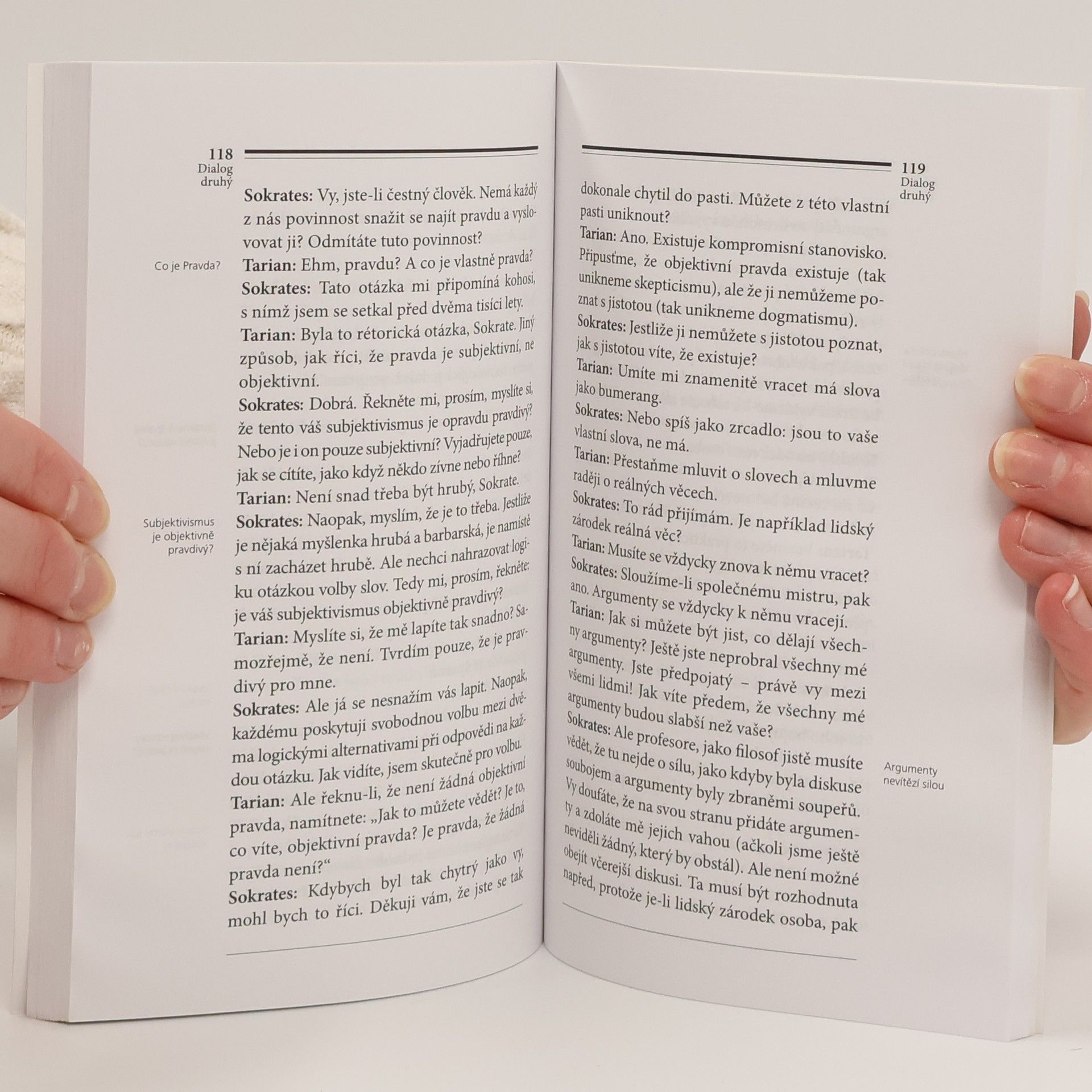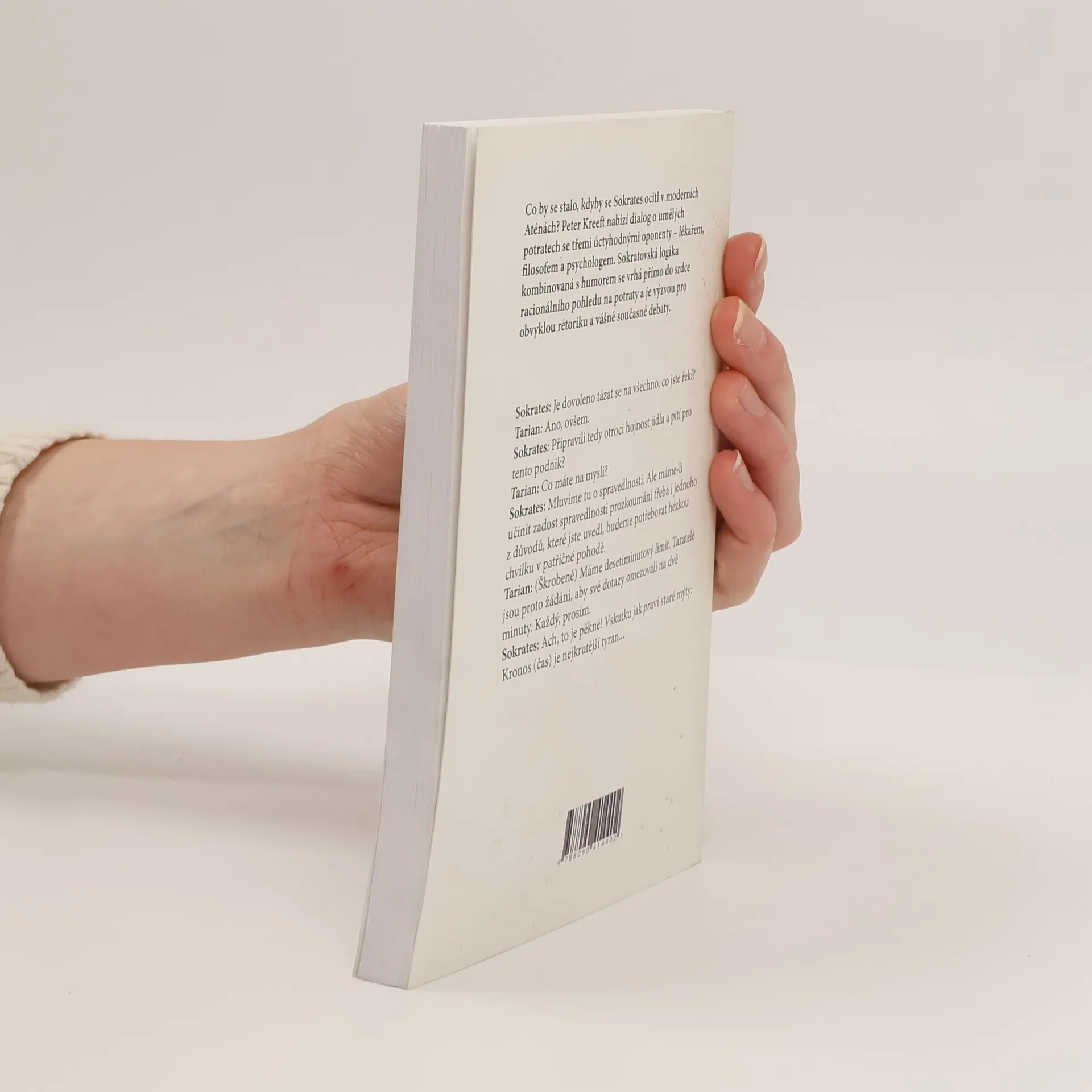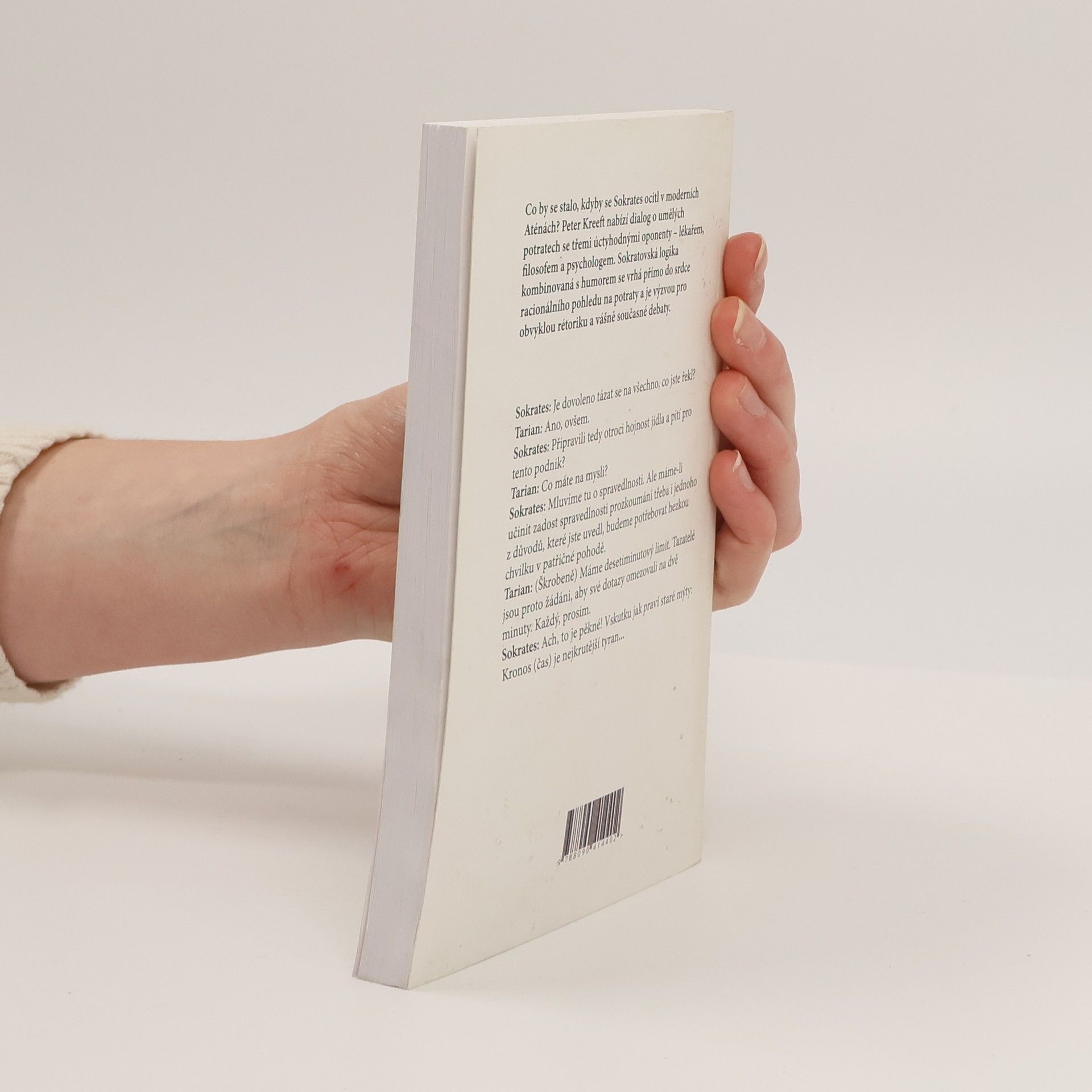 Netradičně o umělých potratech. Co by se stalo, kdyby se Sokrates ocitl v moderních Aténách? Peter Kreeft nabízí dialog o umělých potratech se třemi úctyhodnými oponenty – lékařem, filosofem a psychologem. Sokratovská logika kombinovaná s humorem se vrhá přímo do srdce racionálního pohledu na potraty a je výzvou pro obvyklou rétoriku a vášně současné debaty. Sokrates: Je dovoleno tázat se na všechno, co jste řekl? Tarian: Ano, ovšem. Sokrates: Připravili tedy otroci hojnost jídla a pití pro tento podnik? Tarian: Co máte na mysli? Sokrates: Mluvíme tu o spravedlnosti. Ale máme-li učinit zadost spravedlnosti prozkoumání třeba i jednoho z důvodů, které jste uvedl, budeme potřebovat hezkou chvilku v patřičné pohodě. Tarian: (škrobeně) Máme desetiminutový limit. Tazatelé jsou proto žádáni, aby své dotazy omezovali na dvě minuty. Každý, prosím. Sokrates: Ach, to je pěkné! Vskutku jak praví staré mýty: Kronos (čas) je nejkrutější tyran...