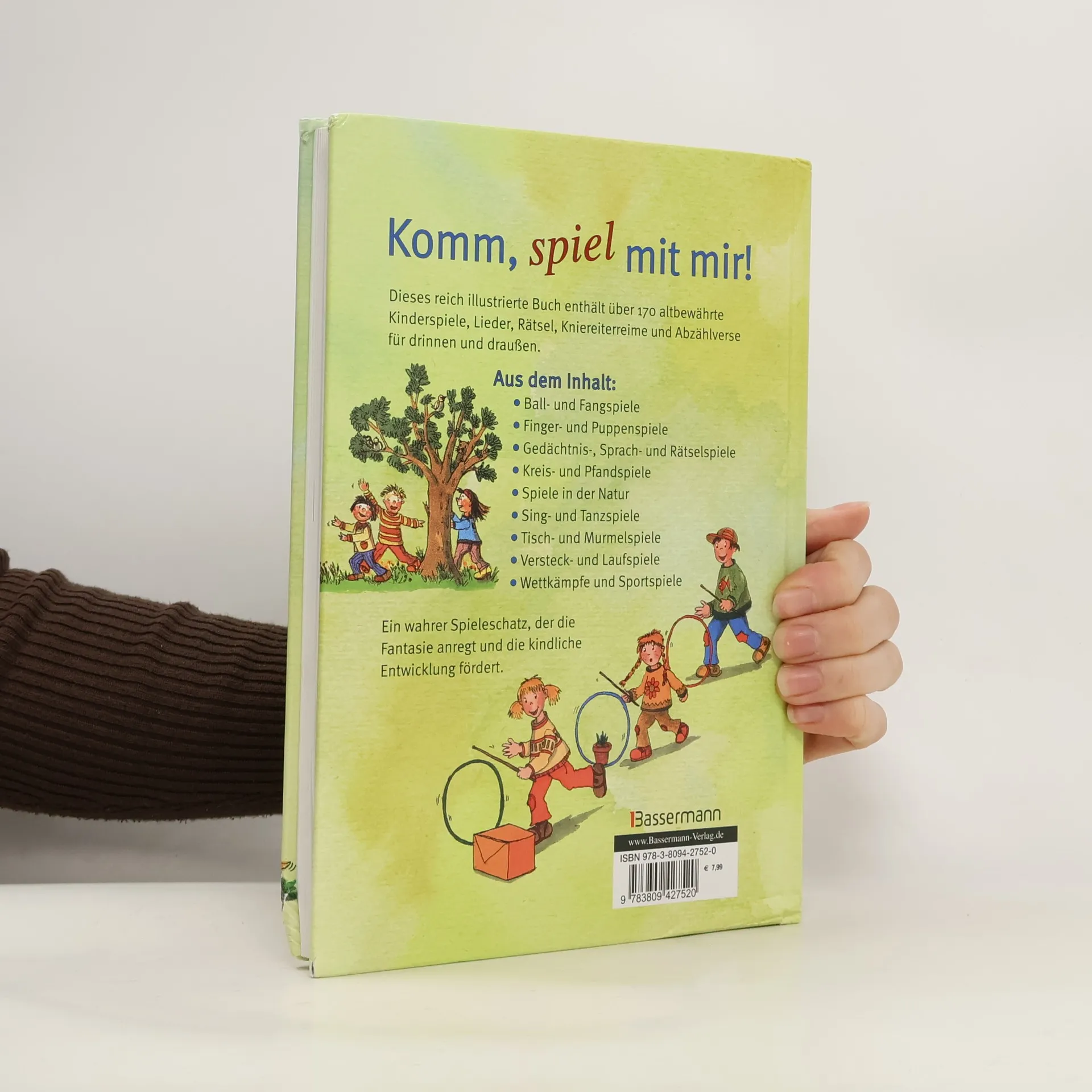 Lieber spielen als Fernsehen Dieses reich illustrierte Buch enthält über 170 alte Kinderspiele, Lieder, Rätsel, Kniereiterreime und Abzählverse für drinnen und draußen. Ball- und Fangspiele. Finger- und Puppenspiele. Gedächtnis-, Sprach- und Rätselspiele. Kreis- und Pfandspiele. Spiele in der Natur. Sing- und Tanzspiele. Tisch- und Murmelspiele. Versteck- und Laufspiele. Wettkämpfe und Sportspiele. Ein wahrer Spieleschatz, der die Fantasie anregt und die kindliche Entwicklung fördert. Ausstattung: durchgehend vierfarbig illustriert