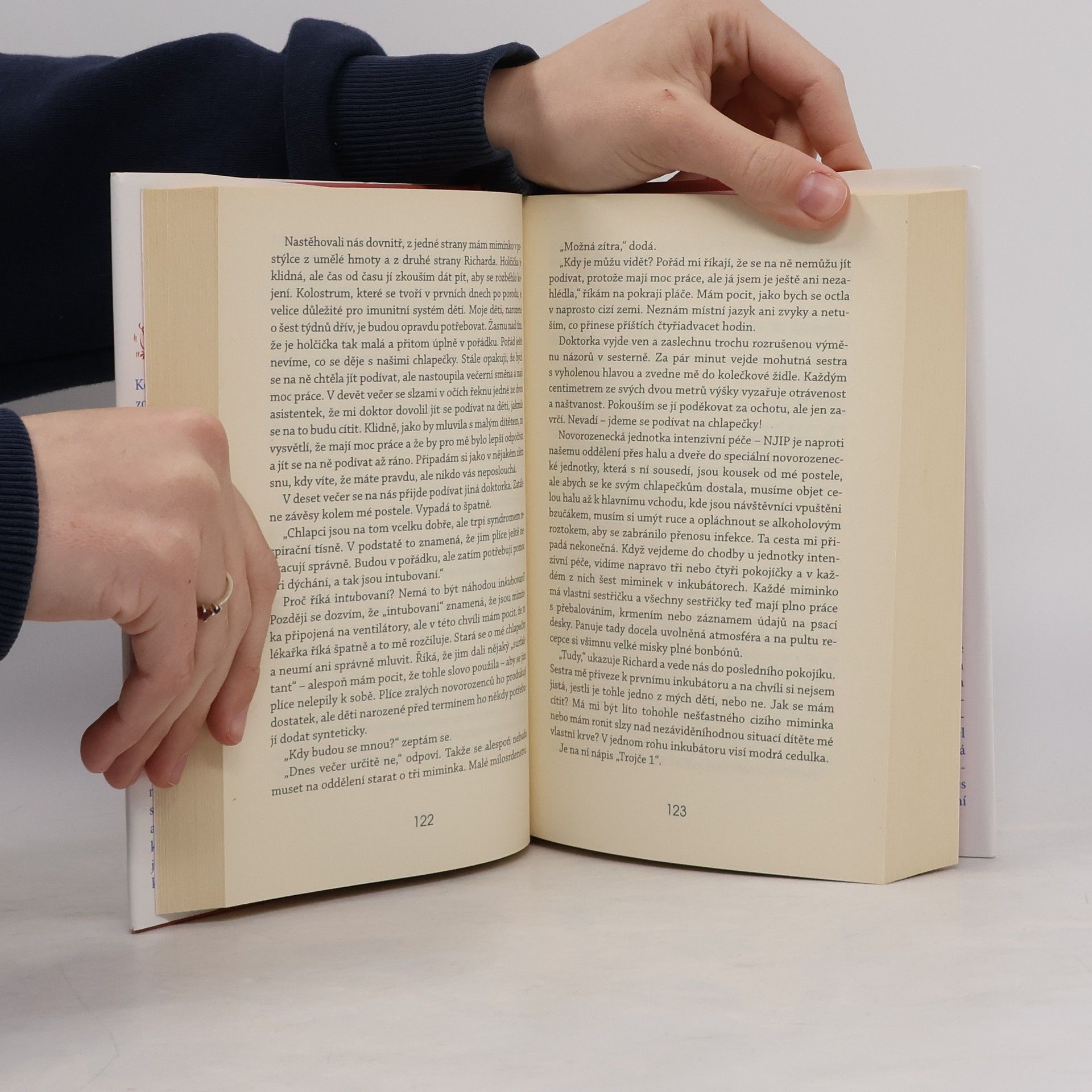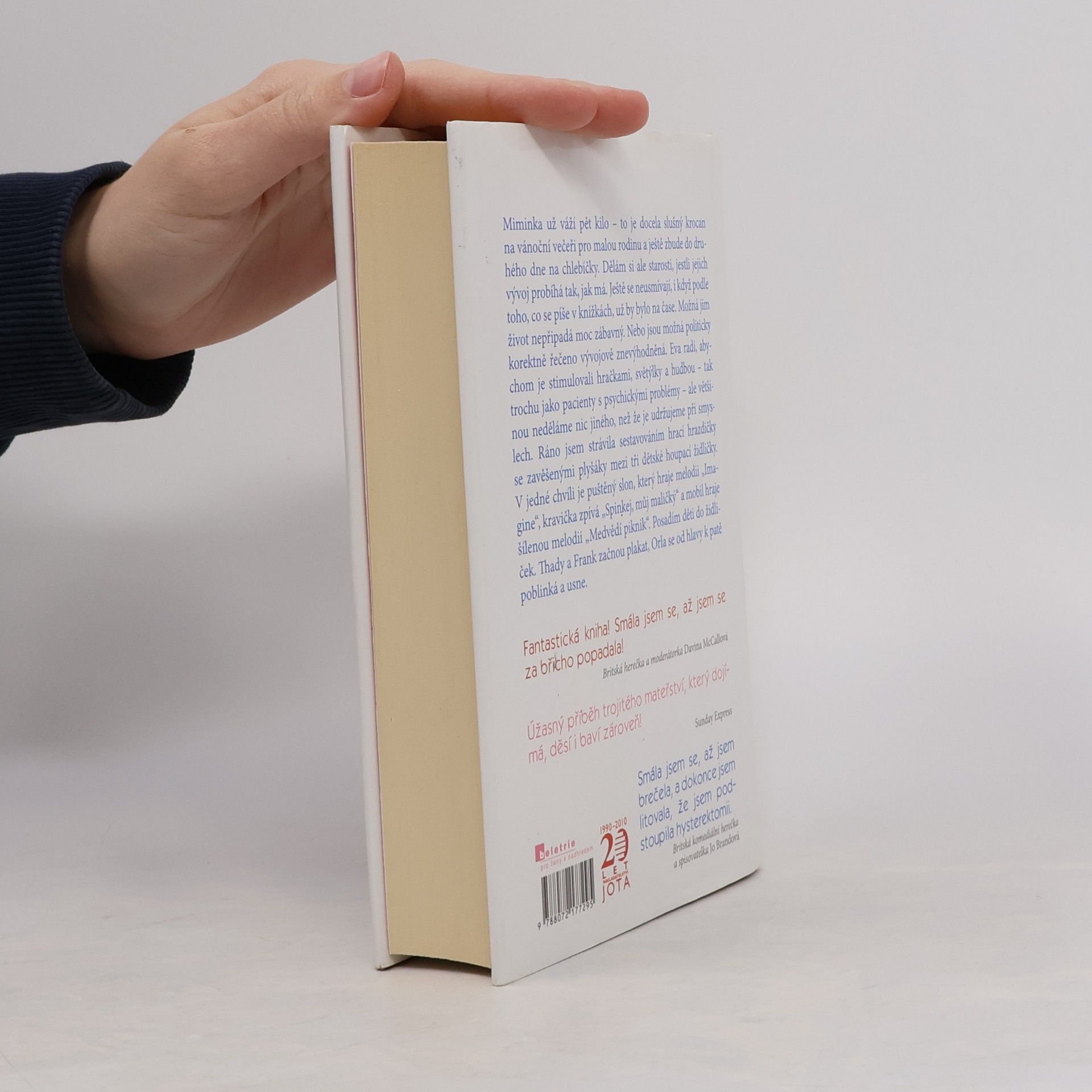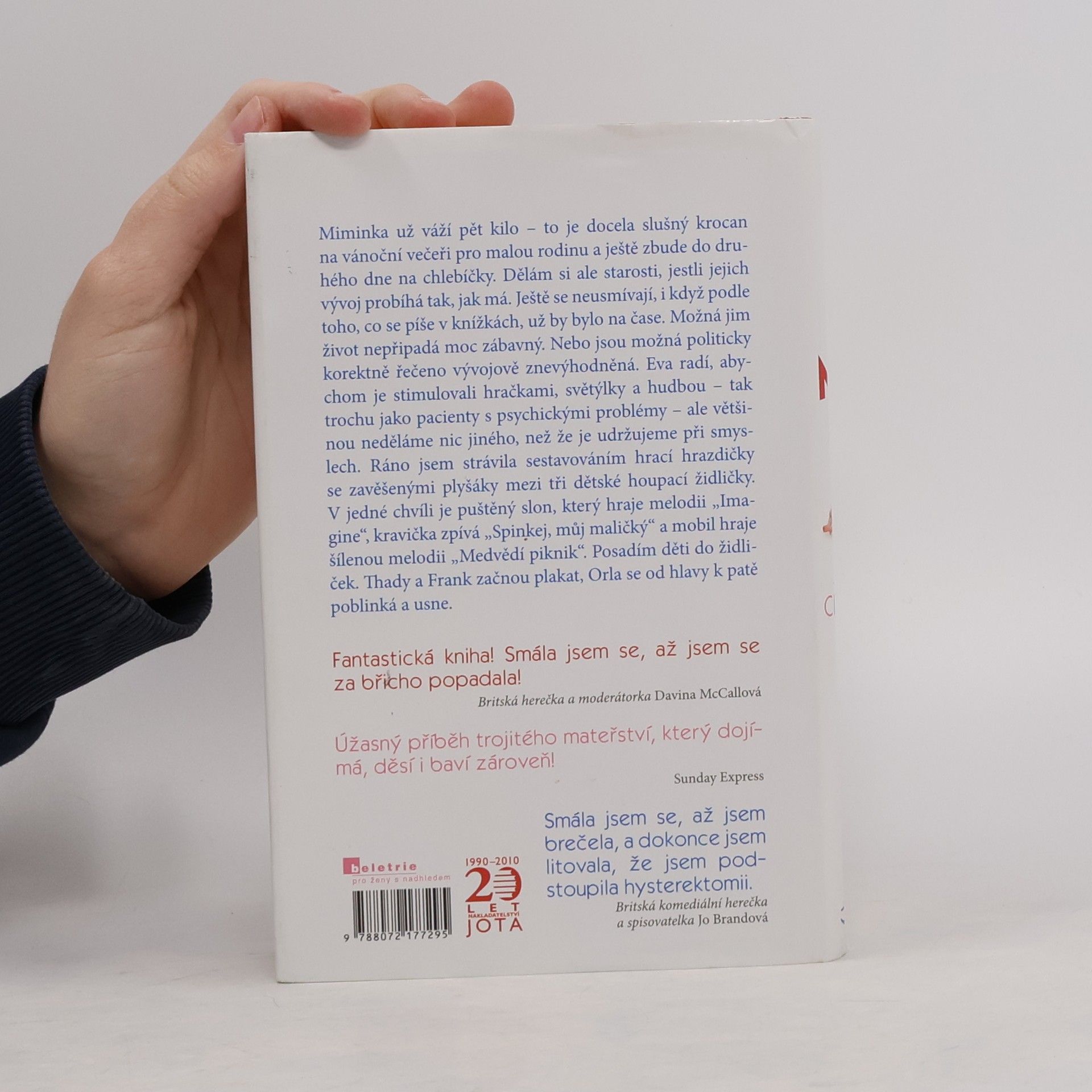 Jackie Cluneová je herečka a rozhlasová reportérka, vystupuje v zábavných pořadech „na stojáka“. Toto je její první kniha. Představte si, že jdete na běžnou lékařskou kontrolu a dozvíte se, že čekáte trojčata… Přesně to se v prosinci 2004 stalo Jackie Cluneové. To těhotenství bylo skutečně „náhodné“ - nebylo výsledkem umělého oplodnění a její první dcera neměla v té době ještě ani rok. Jackie a její partner měli mít najednou čtyři děti místo jednoho. Její první reakcí byla touha praštit lékařku, která jí tu zprávu sdělila. A potom taky některé své přátele, když si musela vyslechnout jejich soucitné komentáře: „Ach bože, život ti skončil“ nebo „No, mohlo to být horší, mohla to být rakovina.“ V této knize se dozvíte, co se odehrálo od prvního ultrazvuku až po první Vánoce s trojčaty a jaké to je přivést na svět tři děti naráz.