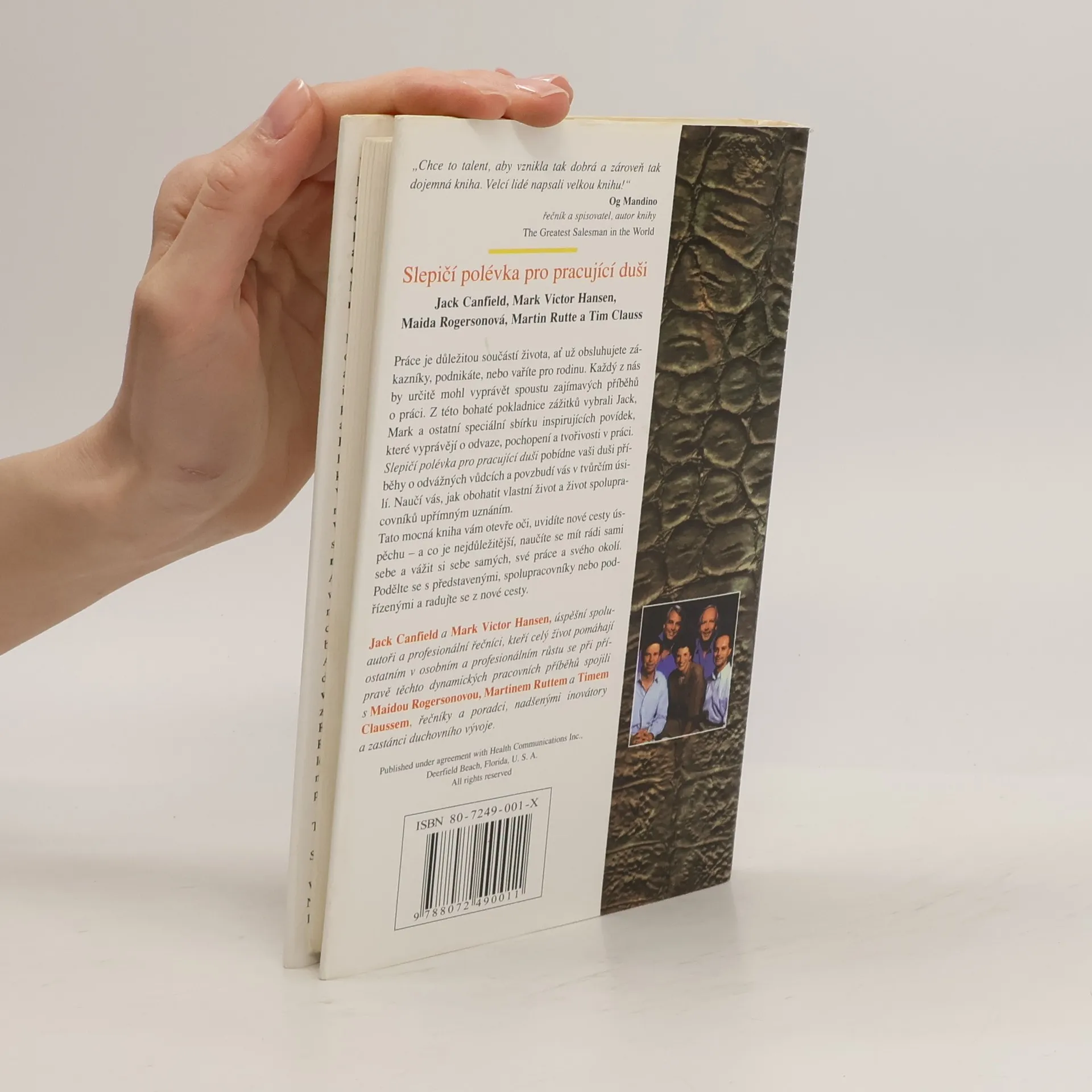 There are currently of book Slepičí polévka pro pracující duši: Příběhy o odvaze, pochopení a tvůrčí práci (1999) in stock.