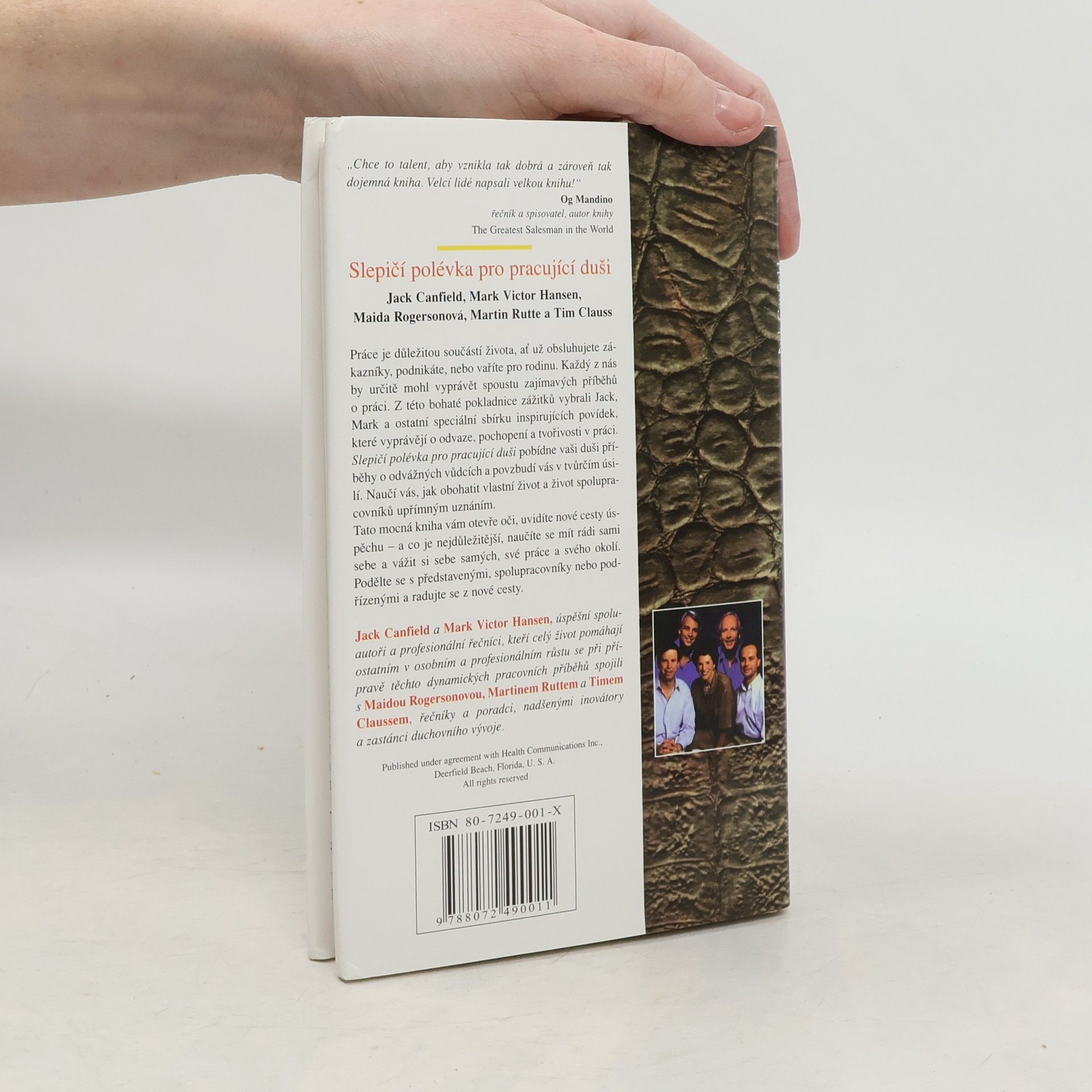 Práce je klíčovou součástí našeho života, ať už se jedná o zákaznický servis, podnikání nebo vaření pro rodinu. Každý z nás má zajímavé příběhy o práci. Jack, Mark a ostatní vybrali sbírku inspirujících povídek, které oslavují odvahu, pochopení a tvořivost v pracovním prostředí. Tato kniha povzbudí vaši duši příběhy o odvážných vůdcích a podpoří vás v tvůrčím úsilí. Naučíte se, jak obohatit svůj život a život svých kolegů upřímným uznáním. Otevře vám oči a ukáže nové cesty k úspěchu, přičemž se naučíte mít rádi sami sebe a vážit si své práce a okolí. Sdílejte příběhy s kolegy a užijte si novou cestu. Obsah zahrnuje témata jako láska k práci, porozumění, síla vděčnosti, služby, naslouchání srdci, tvůrčí práce, překonávání překážek, odvaha a cenné lekce. Každá kapitola nabízí příběhy, které inspirují a motivují, ať už se jedná o osobní růst, vztahy na pracovišti nebo překonávání výzev. Tato sbírka vás vybaví nástroji, jak se stát lepším pracovníkem a člověkem, a podnítí vás k tomu, abyste se podělili o své vlastní příběhy a zkušenosti.