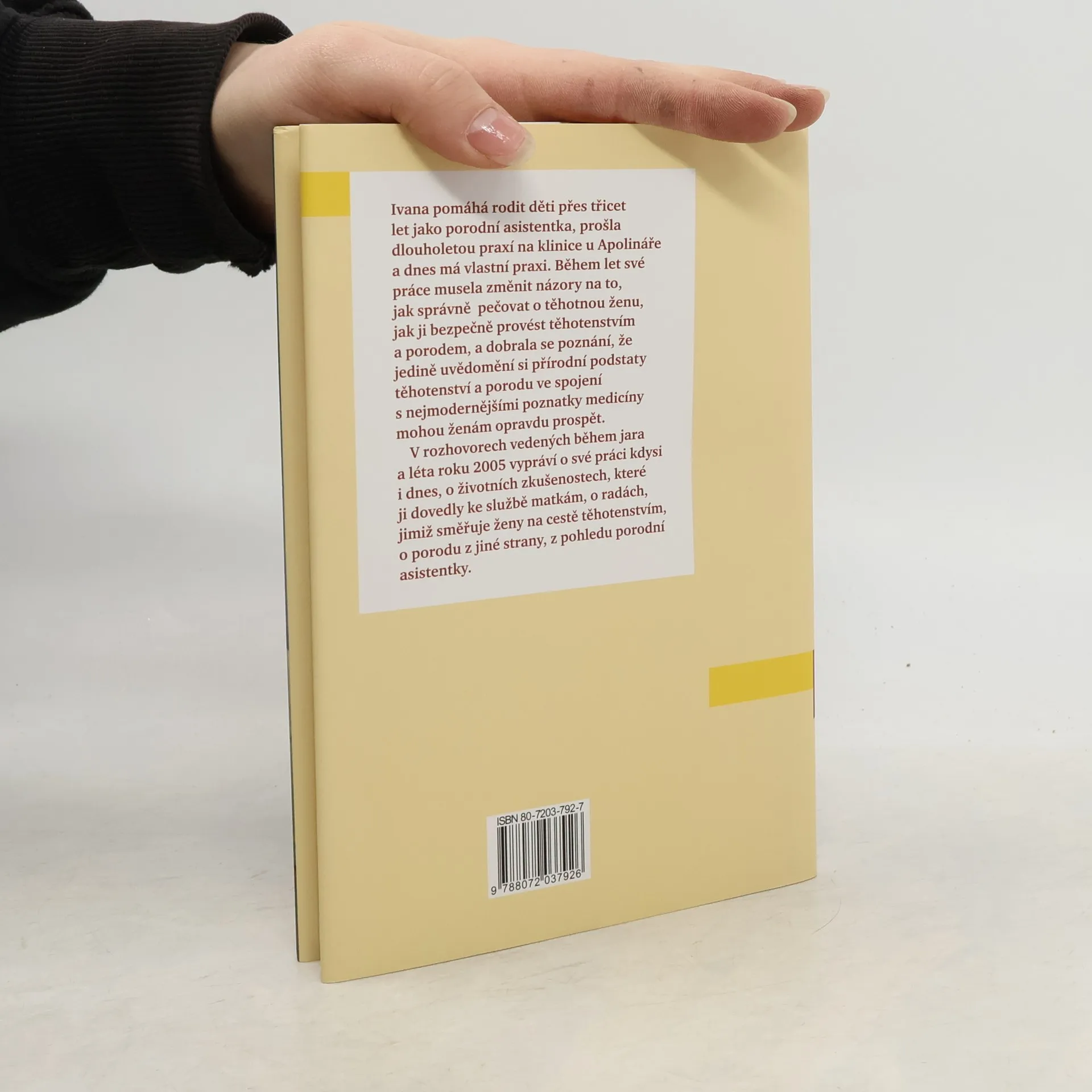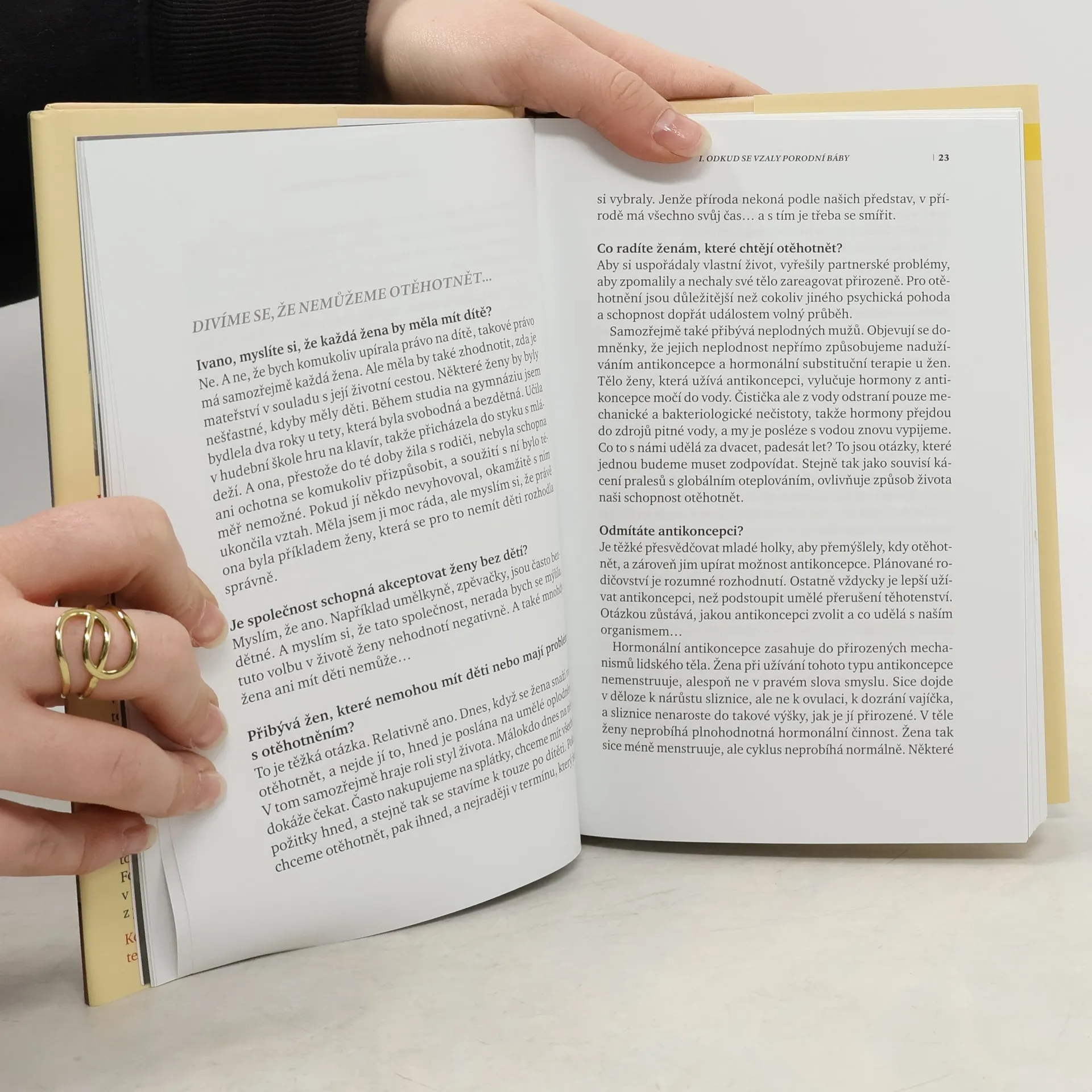 Kniha nabízí pohled na těhotenství a porod prostřednictvím rozhovoru se známou porodní asistentkou Ivanou Konigsmarkovou, která třicet let pomáhá přivést děti na svět. Témata jsou řazena chronologicky od otěhotnění přes těhotenství k porodu a šestinedělí. Porodní asistentka hodnotí kontroverzní problémy dnešních těhotných - genetické testování, přístup medicínský kontra přírodní, epidurální anestezii, rozmáhající se počet porodů císařským řezem… Zamýšlí se nad úlohou porodních bab v životě ženy, mluví o zkušenostech z porodnictví v zahraničí, o pokusech prosadit u nás individuální péči o těhotné…