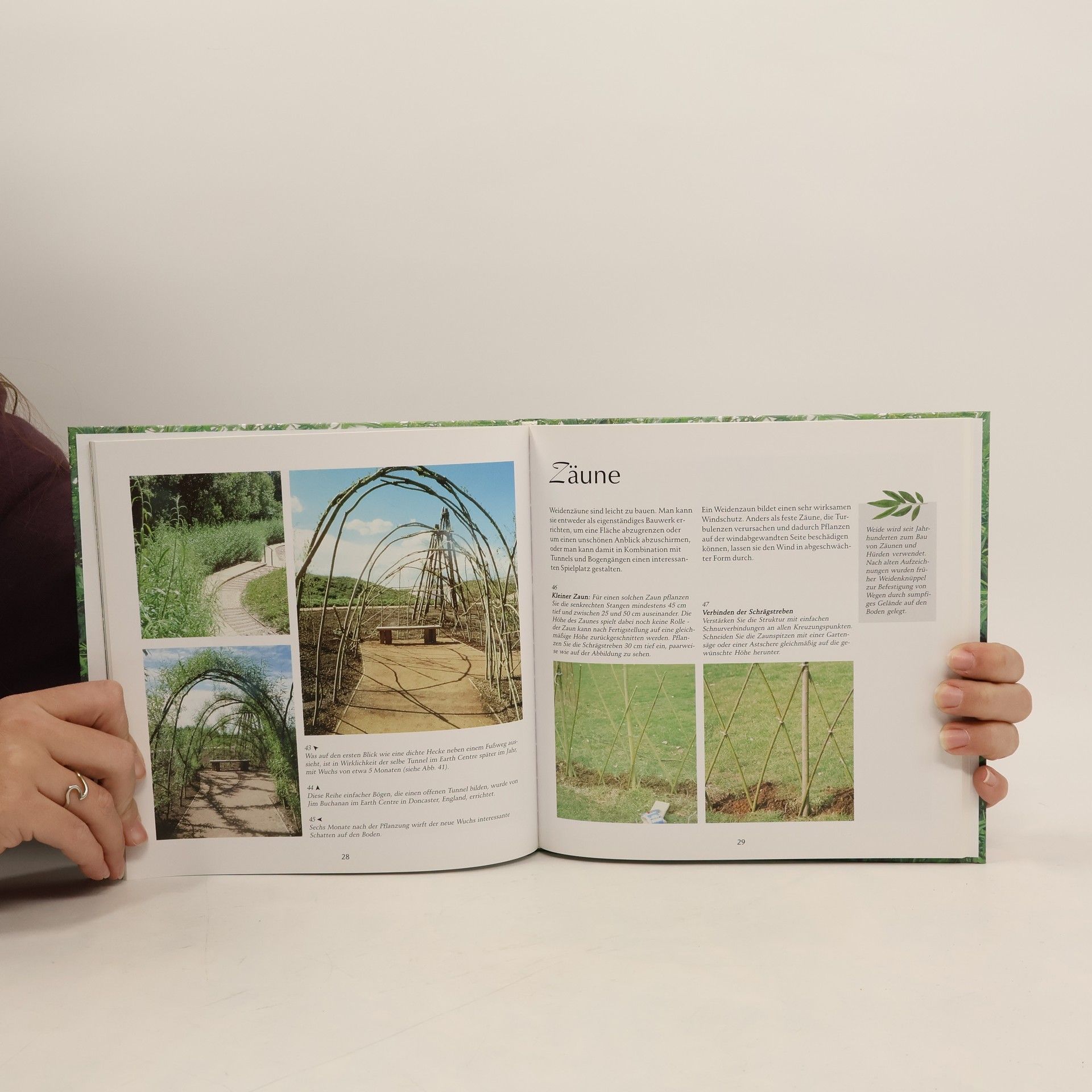 Detaillierte Anleitungen für Weidenbau-Projekte wie Zäune, Tunnel, Sitze, Lauben und Laubenhütten, Galarien; reich illustriert.