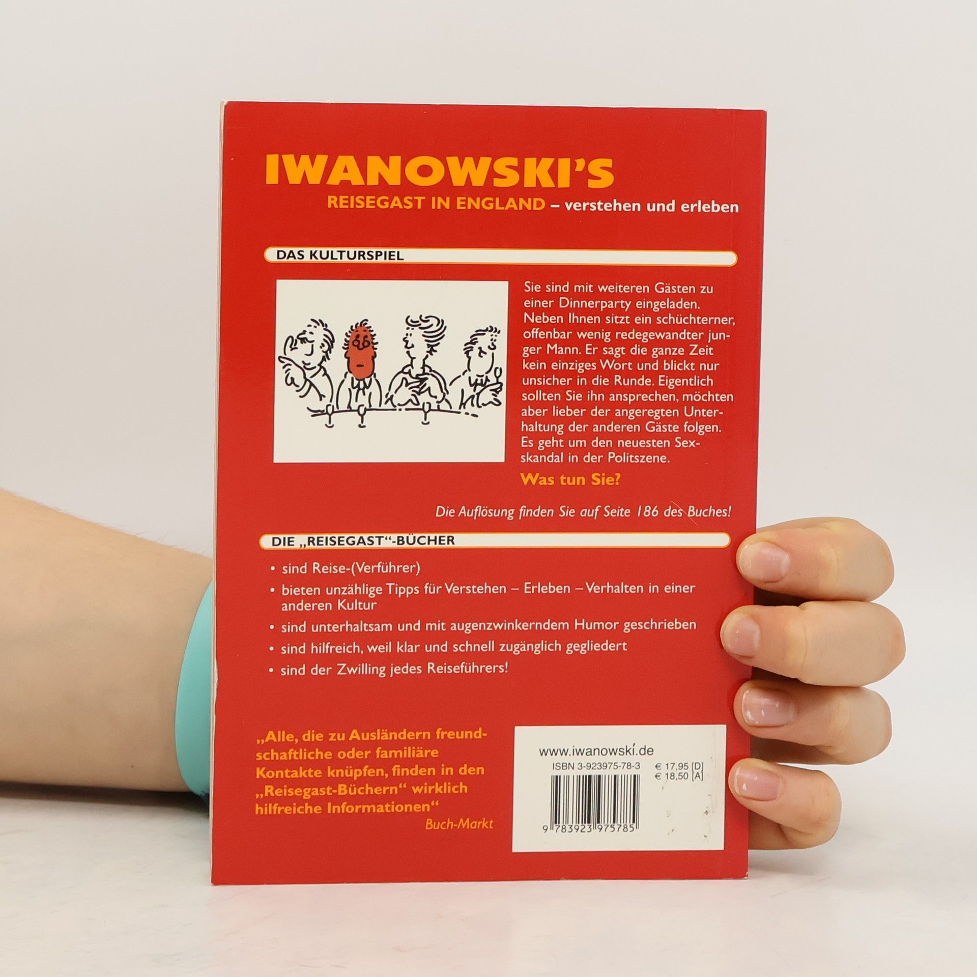Das Kulturspiel Sie sind mit sechs weiteren Gästen zu einer Dinnerparty eingeladen. Links neben Ihnen sitzt ein schüchterner, offenbar wenig wortgewandter junger Mann. Er sagt die ganze Zeit kein einziges Wort und blickt nur unsicher in die Runde. Eigentlich sollten Sie ihn ansprechen, möchten aber lieger der angeregten Unterhaltung der anderen Gäste folgen. Es geht um den neuesten Sex-Skandal in der Politszene. Was tun Sie? Die Antwort finden Sie auf Seite 186 im Innenteil dieses Buches! Caroline Roy lebte von 1989-2002 in London und bereiste regelmäßig England und Schottland. Sie leitete eine von ihr aufgebaute Agentur für Übersetzung und Adaption anglo-deutscher Texte und PR-Arbeit. Seit 2003 lebt sie in Hong Kong und arbeitet als Autorin, vorwiegend im Bereich Kultur- und Reiseliteratur. Das Besondere dieses Buches: Kulturreisende möchten neben Sehenswürdigkeiten mehr über das Wesen der Menschen des jeweiligen Landes informiert werden. Menschen, die in einer anderen Kultur arbeiten, benötigen „Starthilfen“, um nicht in ein Fettnäpfchen zu treten. Wirkliche persönliche Kontakte bei einem Aufenthalt sind nur dann möglich, wenn man bestimmte kulturelle Eigenarten berücksichtigt. Herkömmliche Reiseführer können das Thema „kulturspezifische Eigenarten“ nur streifen, aber nicht vertiefen Humorvoll mit einem Augenzwinkern geschrieben