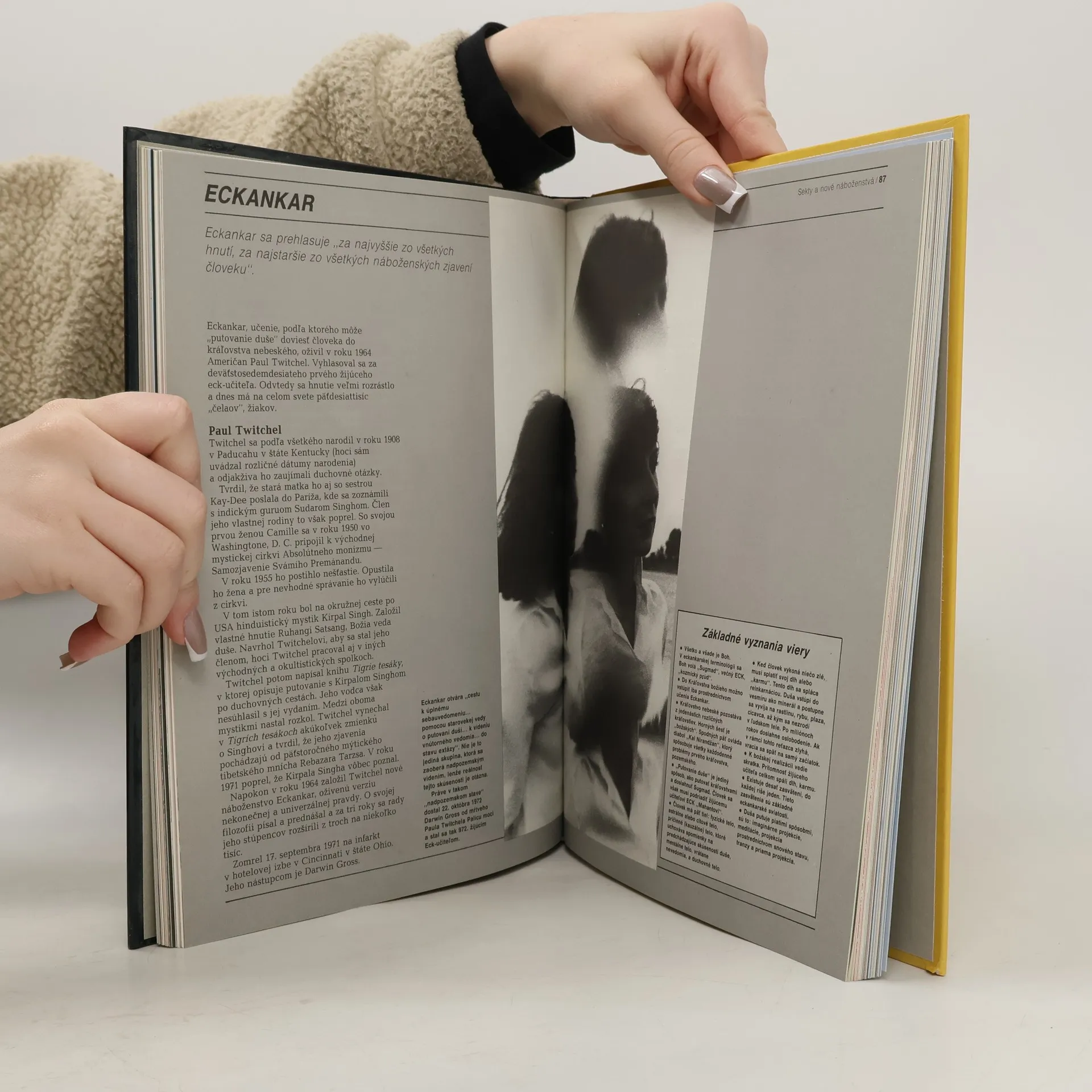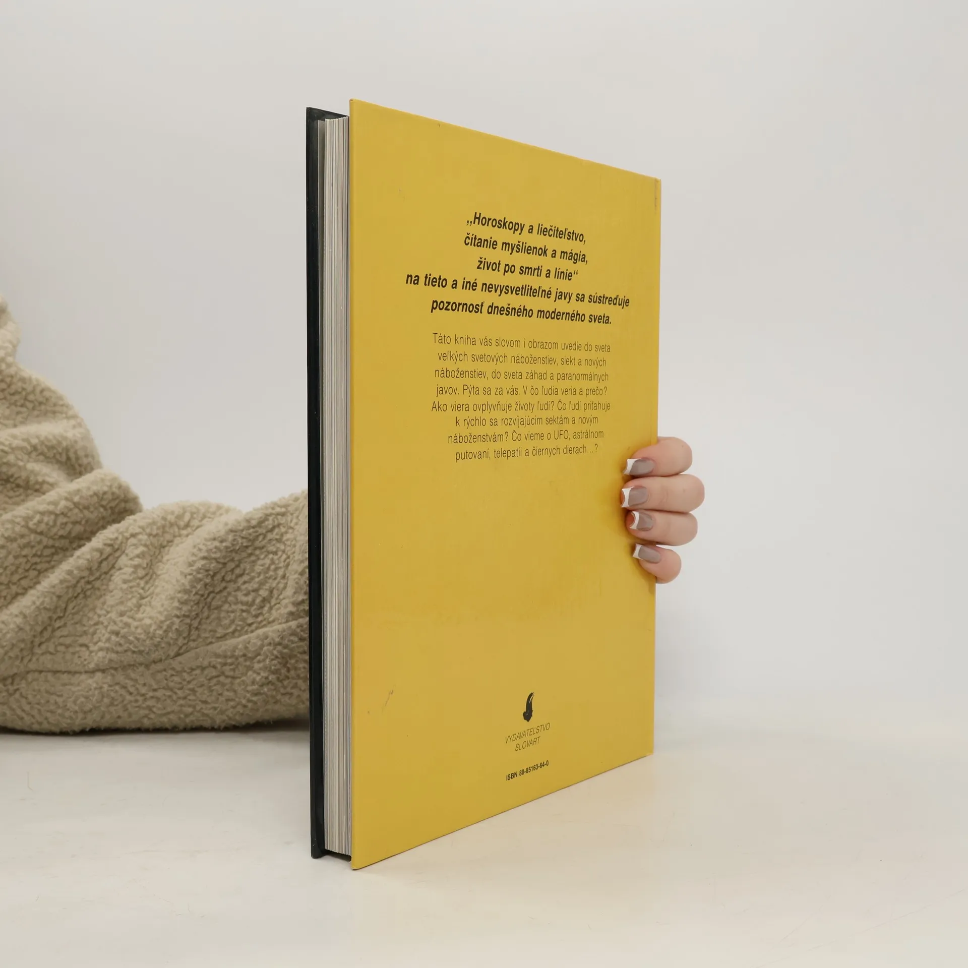 Podtitul: Náboženstvá, sekty, paranormálne javy „Horoskopy a liečiteľstvo, čítanie myšlienok a mágia, život po smrti a línie“ na tieto a iné nevysvetliteľné javy sa sústreďuje pozornosť dnešného moderného sveta. Táto kniha vás slovom i obrazom uvedie do sveta veľkých svetových náboženstiev, siekt a nových náboženstiev, do sveta záhad a paranormálnych javov. Pýta sa za vás. V čo ľudia veria a prečo? Ako viera ovplyvňuje životy ľudí? Čo ľudí priťahuje k rýchlo sa rozvíjajúcim sektám a novým náboženstvám? Čo vieme o UFO, astrálnom putovaní, telepatii a čiernych dierach...? Vydanie prvé