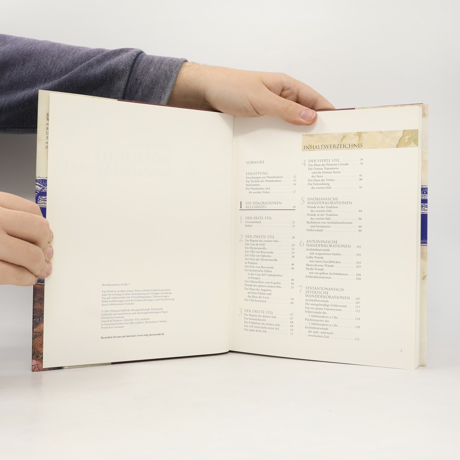 Die römische Wandmalerei ist ein einzigartiges Phänomen der europäischen Kunstgeschichte. Vom 3. Jahrhundert v.Chr. bis zum 4. Jahrhundert n.Chr. wurden im gesamten Römischen Reich öffentliche und private Bauten - nicht nur die Villen der Wohlhabenden, sondern auch einfachste Häuser und die Grabstätten - mit vielfältigen und phantasievollen Bildern ausgestaltet. Selbst der kleinste Raum konnte so zur prachtvollsten Gartenlandschaft werden, bevölkert von den großen Gestalten der Mythologie.Allgemein verständlich und auf dem aktuellen Forschungsstand werden in dem reich bebilderten Band die Techniken und Werkstätten vorgestellt, die verschiedenen Stile durch alle Epochen beschrieben und in den historischen Kontext eingeordnet.Ein Leitfaden für das Verständnis und die Deutung römischer Wandmalerei.(description from backcover)