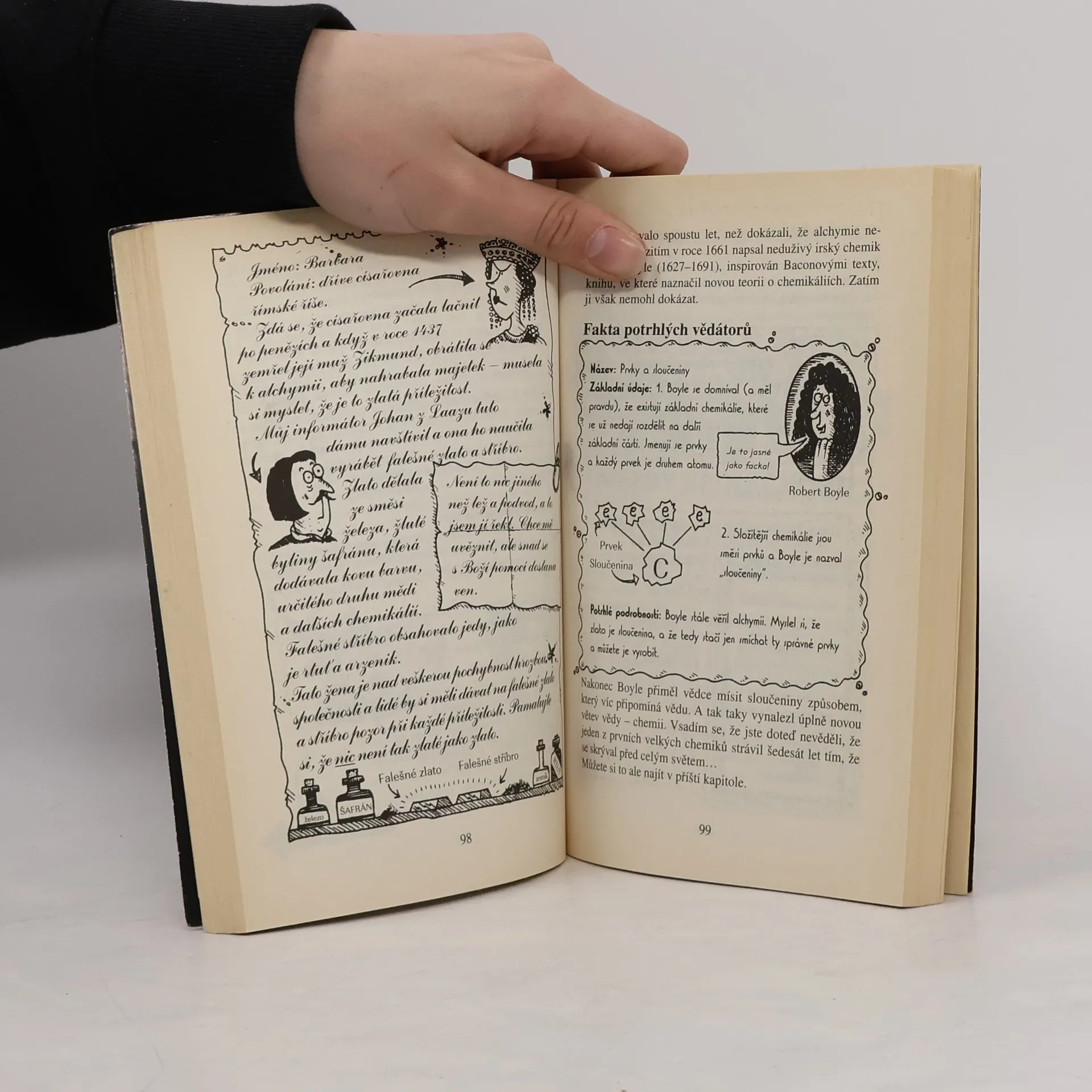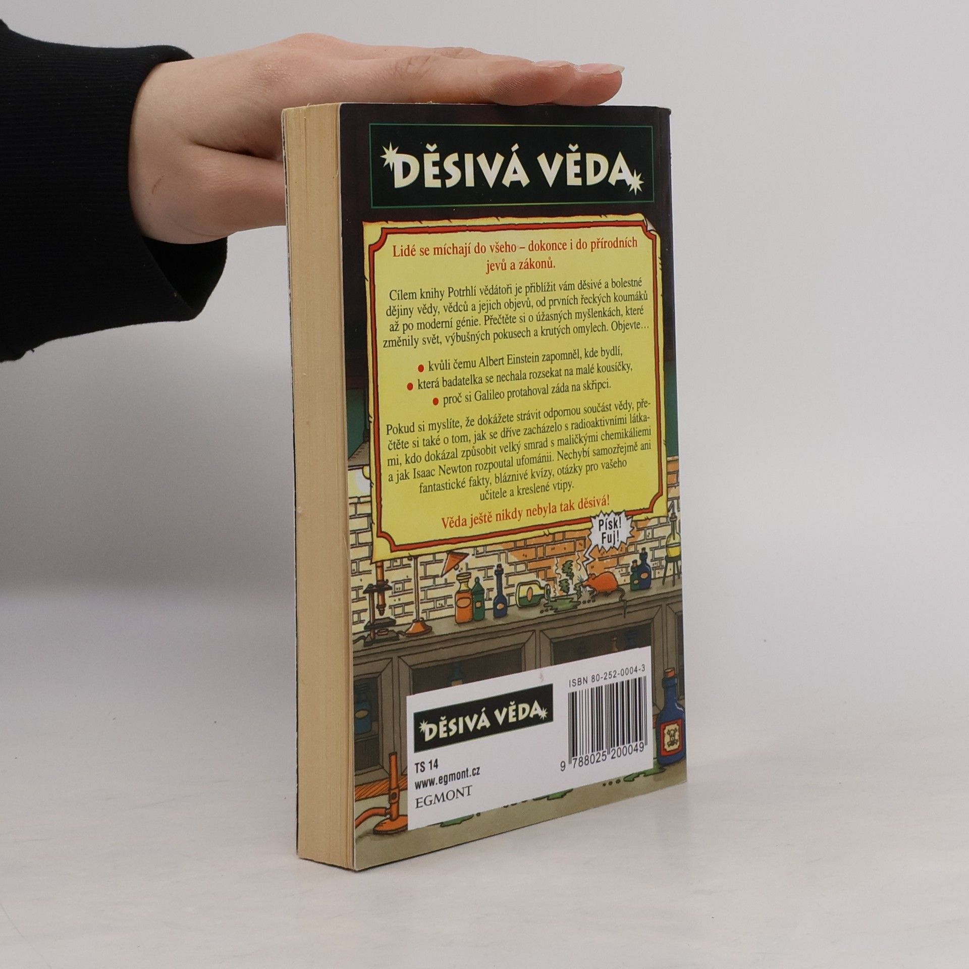 Cílem knihy Potrhlí vědátoři je přiblížit vám děsivé a bolestné dějiny vědy, vědců a jejich objevů, od prvních řeckých koumáků až po moderní génie. Přečtěte si o úžasných myšlenkách, které změnily svět, výbušných pokusech a krutých omylech. Objevte: - kvůli čemu AlbertEinstein zapomněl, kde bydlí, - která badatelky se nechala rozsekat na malé kousíčky, - proč si Galileo protahoval záda na skřipci. Pokud si myslíte, že dokážete strávit odpornou součást vědy, přečtěte si také o tom, jak se dříve zacházelo s radioaktivními látkami, kdo dokázal způsobit velký smrad s maličkými chemikáliemi a jak Isaac Newton rozpoutal ufománii. Nechybí samozřejmě ani fantastické fakty, bláznivé kvízy, otázky pro vašeho učitele a kreslené vtipy.