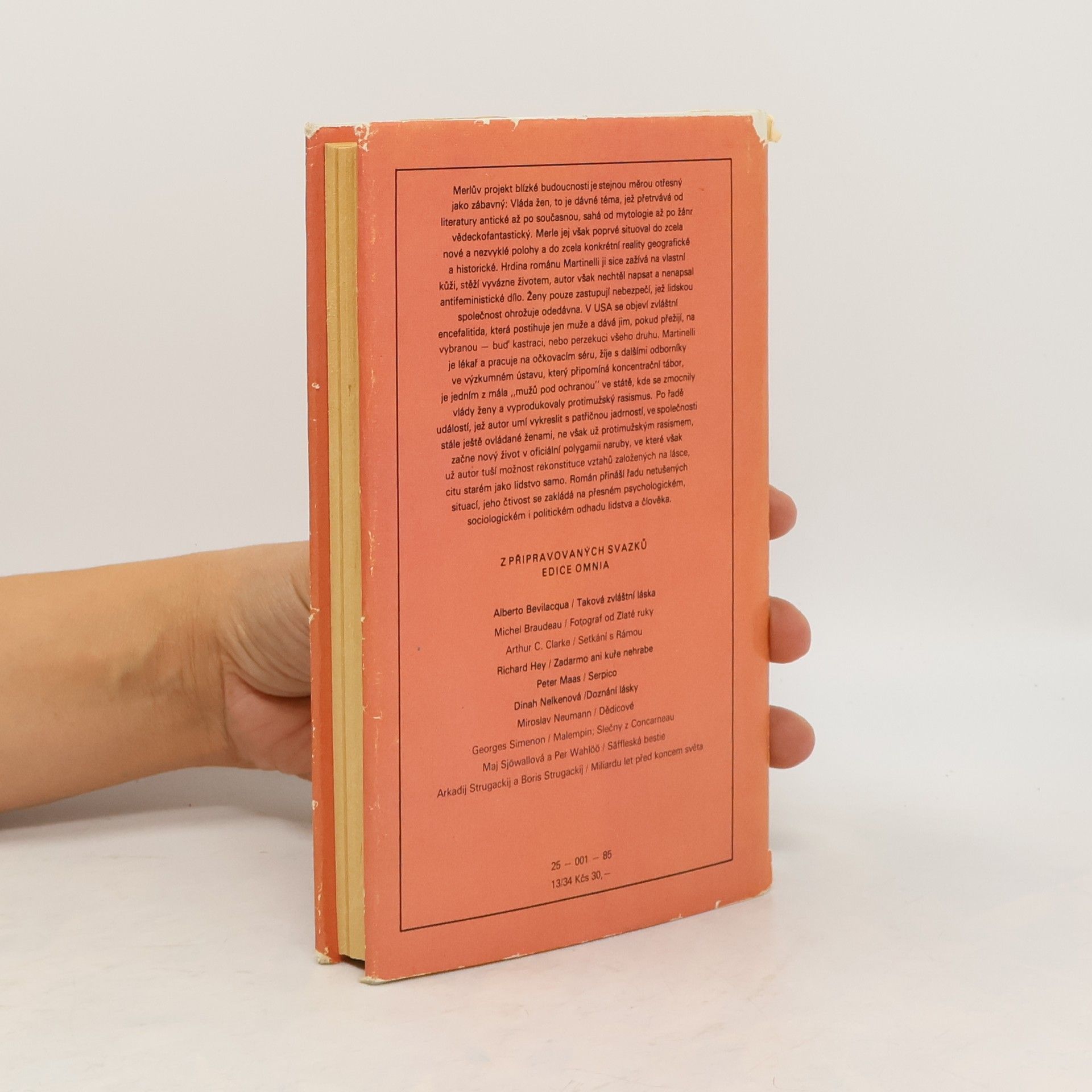 Odehrává se v USA, kde následkem „encefalitidy 16“ hynou muži v pohlavně zralém věku. V laboratoři se připravuje sérum proti epidemii, kterého však nemá být použito. Merle karikuje extrémní feminizační snahy a různé stránky života současné americké společnosti. Identifikační číslo tohoto vydání knihy je 25-001-85 .