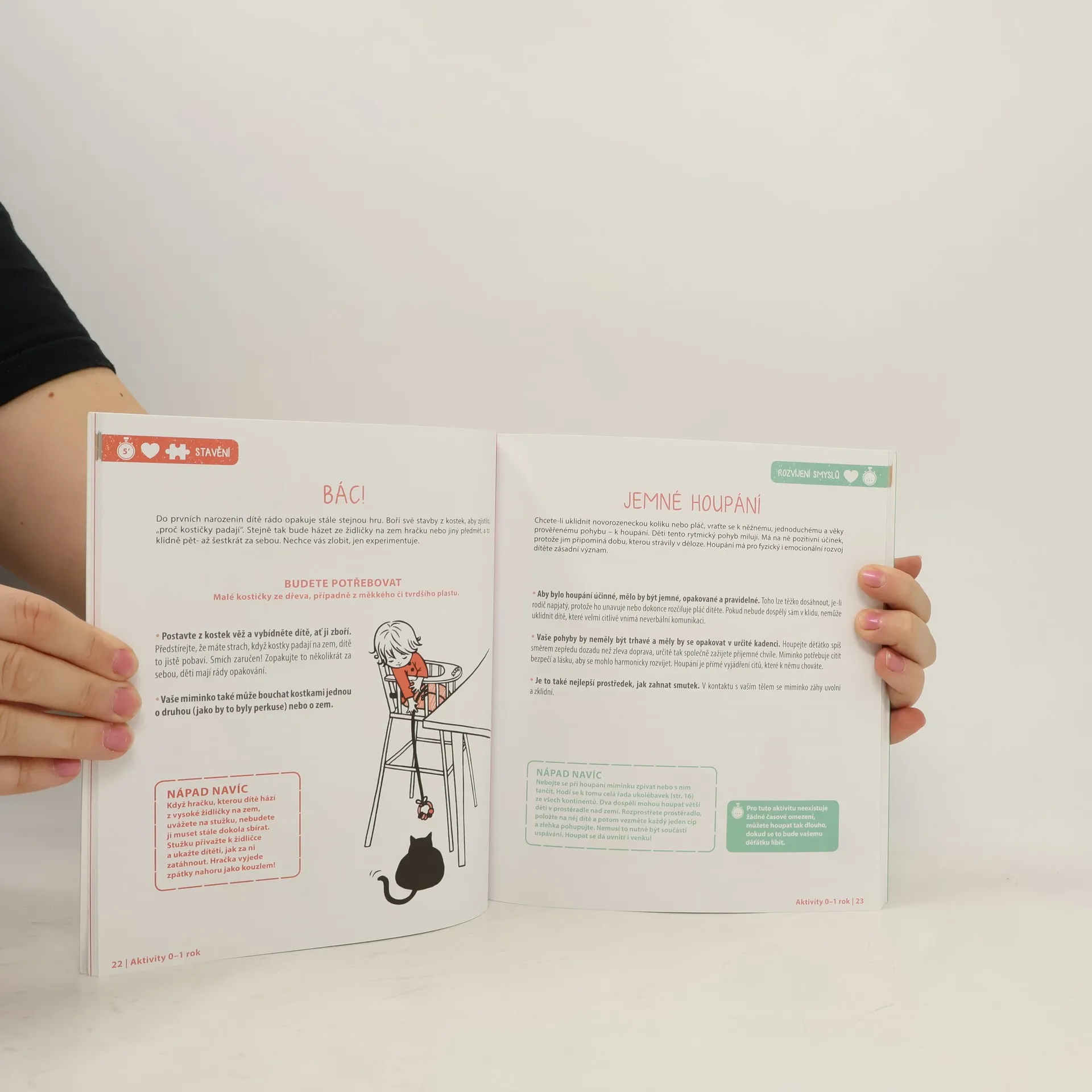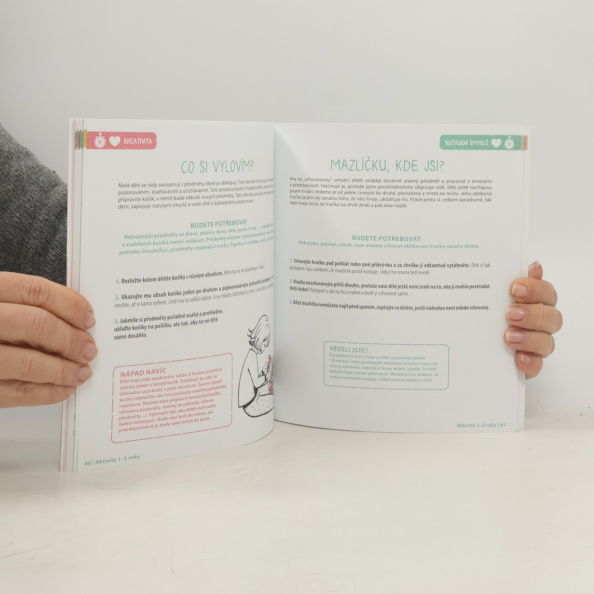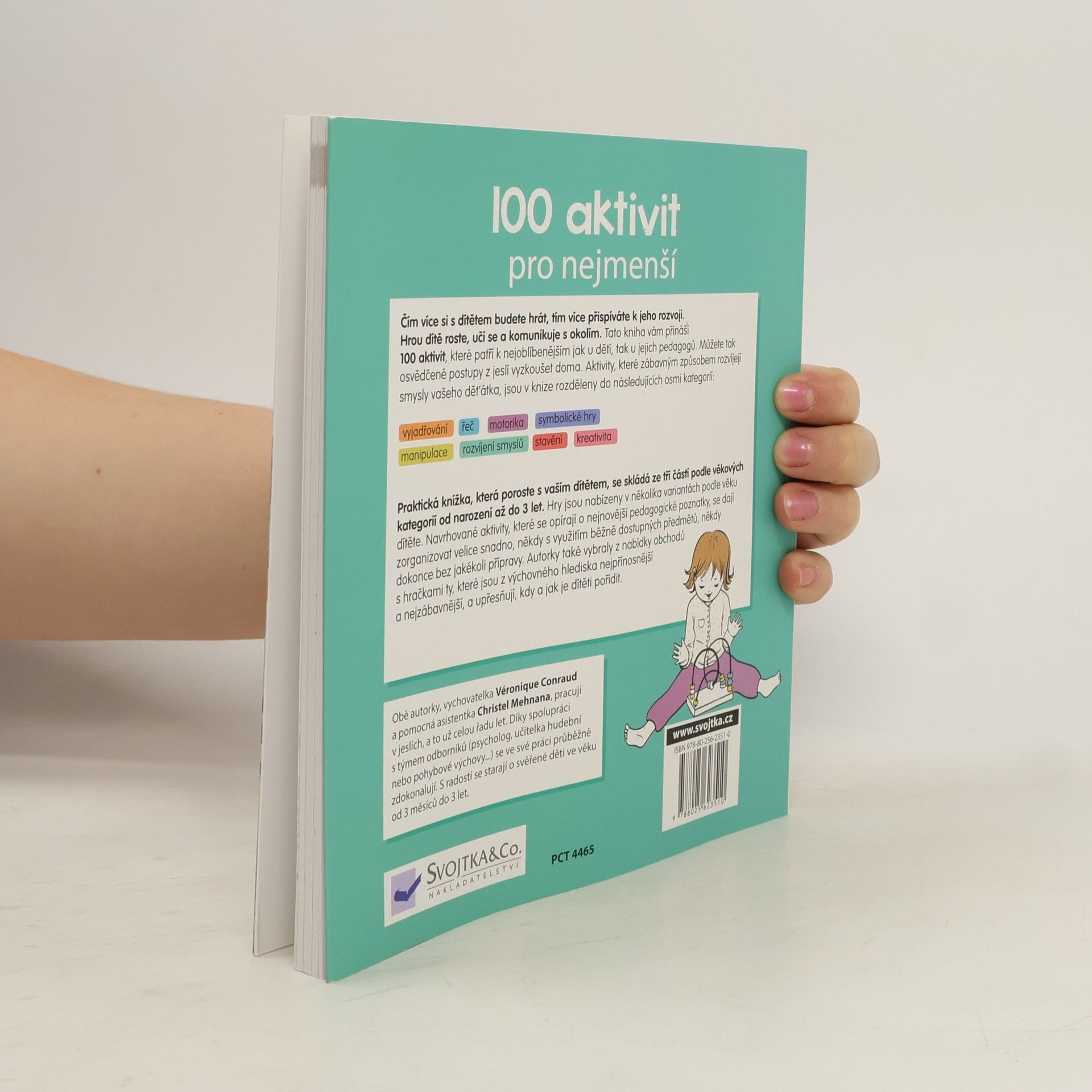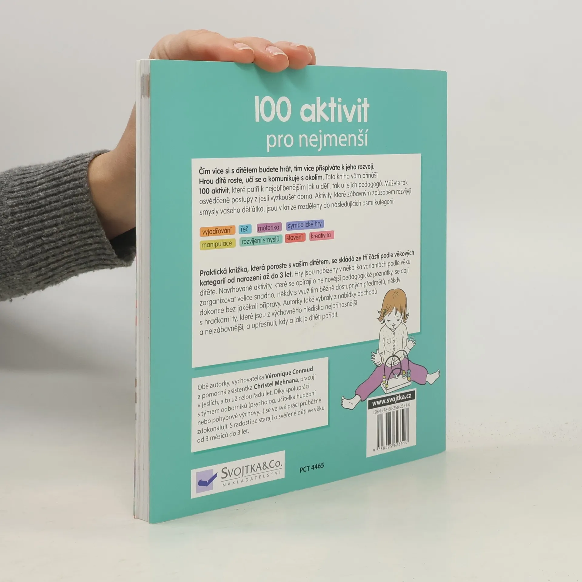 Krabice s převleky, hra na zrcadlo, opičí dráha, dechové hry, smyslové míčky nebo jóga pro nejmenší. To je jen malá ukázka toho, jaké aktivity v knize naleznete. Tyto aktivity nejsou nic jiného než hry – hry zaměřené na manipulaci s předměty, stavění, relaxaci, řečové dovednosti. Jsou seřazené do tří věkových skupin: od narození do jednoho roku, od roku do dvou let a od dvou do tří let. Díky nim si vaše dítě bude rozvíjet smysly a schopnosti, jako je řeč a slovní vyjadřování, jemná motorika, kreativita, manuální zručnost aj. Vedle zajímavých a rozvoj stimulujících her a hraček, které se dají pořídit v obchodě, nabízí tato kniha aktivity, které jsou finančně zcela nenáročné, protože k nim můžete využít běžné věci z domácnosti. Dospělý při hře asistuje, respektuje přání a rozhodnutí dítěte. Vytváří situace přiměřené věku dítěte, jeho psychomotorickému vývoji a potřebám. Kniha se drží hesla, že hlavním zaměstnáním dítěte je hra. A proto si hrajte!