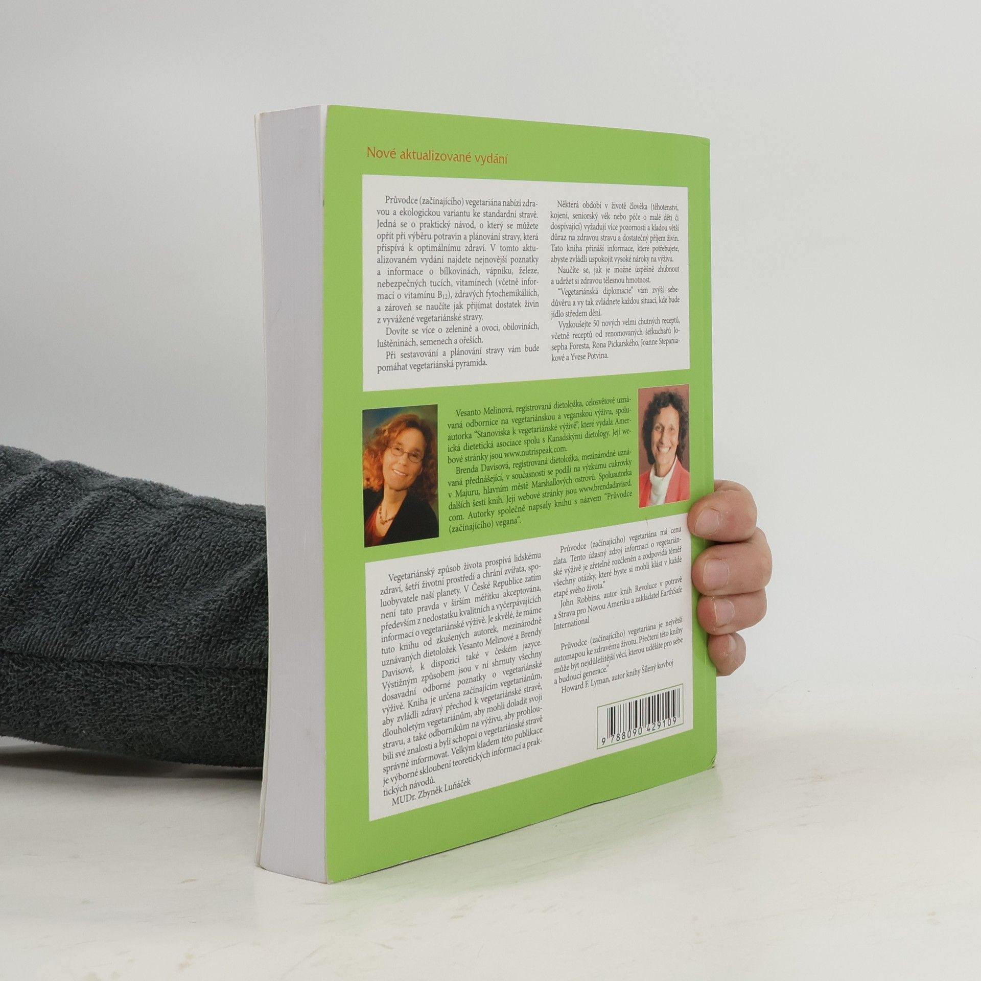 Průvodce (začínajícího) vegetariána nabízí zdravou a ekologickou variantu ke standardní stravě. Jedná se o praktický návod, o který se můžete opřít při výběru potravin a plánování stravy, která přispívá k optimálnímu zdraví. V tomto aktualizovaném vydání najdete nejnovější poznatky a informace o bílkovinách, vápníku, železe, nebezpečných tucích, vitamínech (včetně informací o vitamínu B12), zdravých fytochemikáliích, a naučíte se jak přijímat dostatek živin z vyvážené vegetariánské stravy. Dozvíte se více o zelenině a ovoci, obilovinách, luštěninách, semenech a ořeších. Při sestavování a plánování stravy vám bude pomáhat vegetariánská pyramida. Některá období v životě člověka (těhotenství, kojení, seniorský věk nebo péče o malé děti či dospívající) vyžadují více pozornosti a kladou větší důraz na zdravou stravu a dostatečný příjem živin. Tato kniha přináší informace, které potřebujete, abyste zvládli uspokojit vysoké nároky na výživu. Naučíte se, jak je možné úspěšně zhubnout a udržet si zdravou tělesnou hmotnost. "Vegetariánská diplomacie" vám zvýší sebedůvěru a vy tak zvládnete každou situaci, kde bude jídlo středem dění. Vyzkoušejte 50 nových velmi chutných receptů, včetně receptů od renomovaných šéfkuchařů Josepha Foresta, Rona Pickarského, Joanne Stepaniakové a Yvese Potvina.