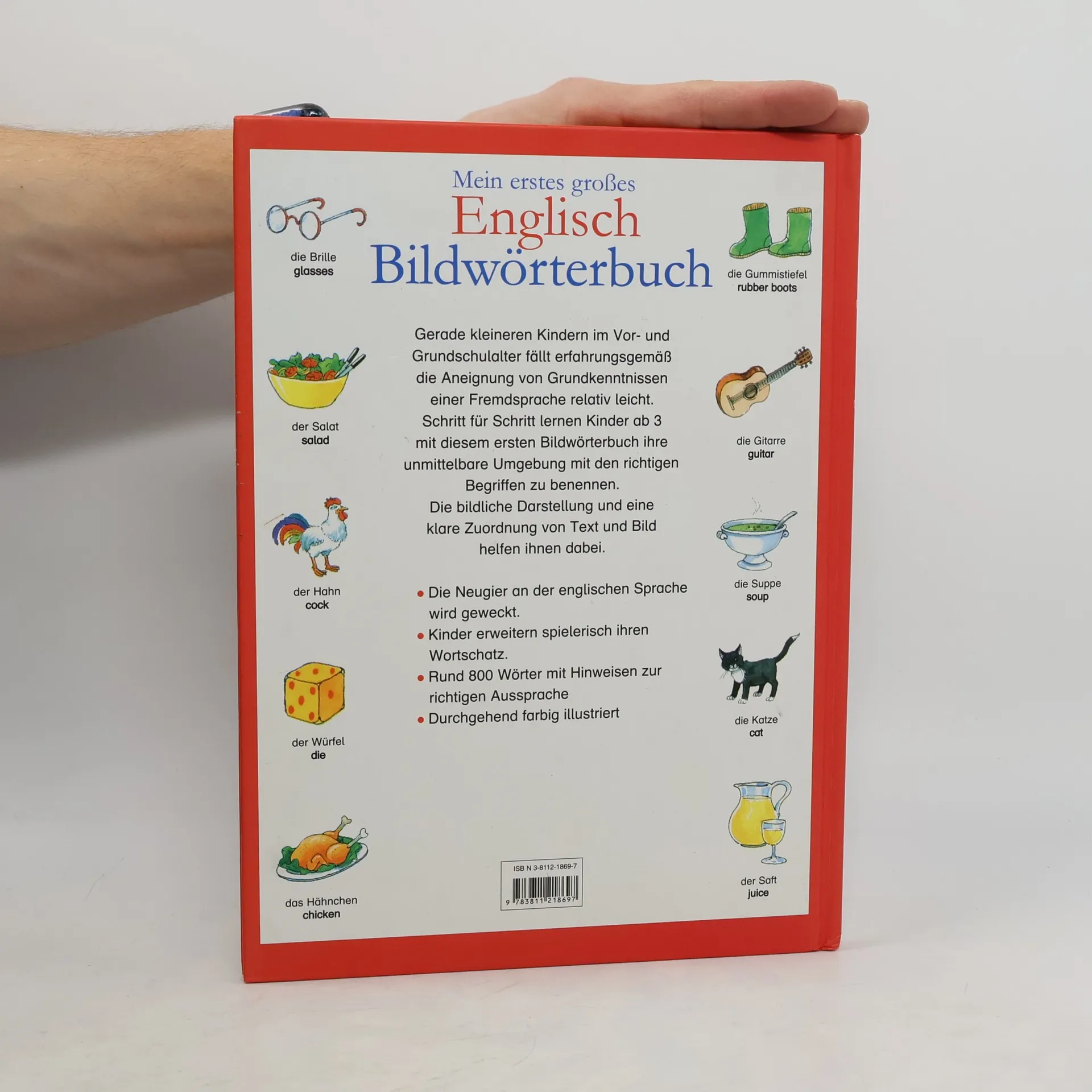 Kindern im Vor- und Grundschulalter fällt das Erlernen einer Fremdsprache besonders leicht. Mit diesem Bildwörterbuch können schon Kinder ab 3 Jahren die wichtigsten englischen Wörter aus ihrer unmittelbaren Umgebung kennenlernen. Die bildliche Darstellung und eine klare Zuordnung von Text und Bild helfen ihnen dabei, sich die Begriffe schnell einzuprägen und richtig anzuwenden.