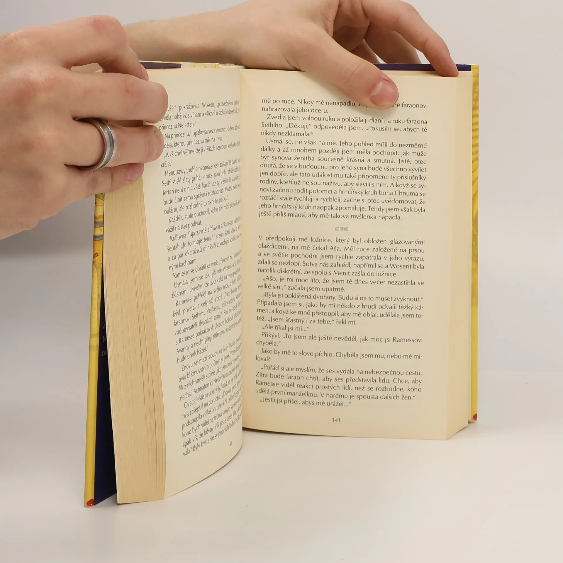 Historická románová fikce věnovaná životu a panování egyptské královny Nefertari, která se v patnácti letech stala druhou ženou Ramesse II. a posléze získala postavení jeho královské manželky. Malá neteř královny Nefertiti žije jako sirotek na dvoře faraóna Sethiho I. v izolaci poté, co její královská teta byla prohlášena za kacířku a patolízalové na faraónově dvoře se obávají, aby na ně nepadl stín prokletého jména. Jedině následník trůnu Ramesse se o dívku zajímá, naslouchá jí a zařadí ji mezi své přátele. Nefertari si jeho přízně nesmírně váží, miluje ho a ve své osamělosti sní o tom, jaké by to bylo být jeho manželkou a po jeho boku vládnout Egyptu. Nic nenasvědčuje, že se její sny mohou splnit, zvláště po faraonově sňatku. Zasáhne ale osud a dvorské intriky a dospívající Nefertari se skutečně stane Ramessovou ženou. Ve vzájemné úctě a lásce prožijí manželé dlouhý plodný život. Jako důkaz své lásky nechal své ženě faraón vystavět nádhernou hrobku v Údolí královen, která je moderním archeologům známá pod kódem QV66. Doplněno slovníčkem neobvyklých výrazů.