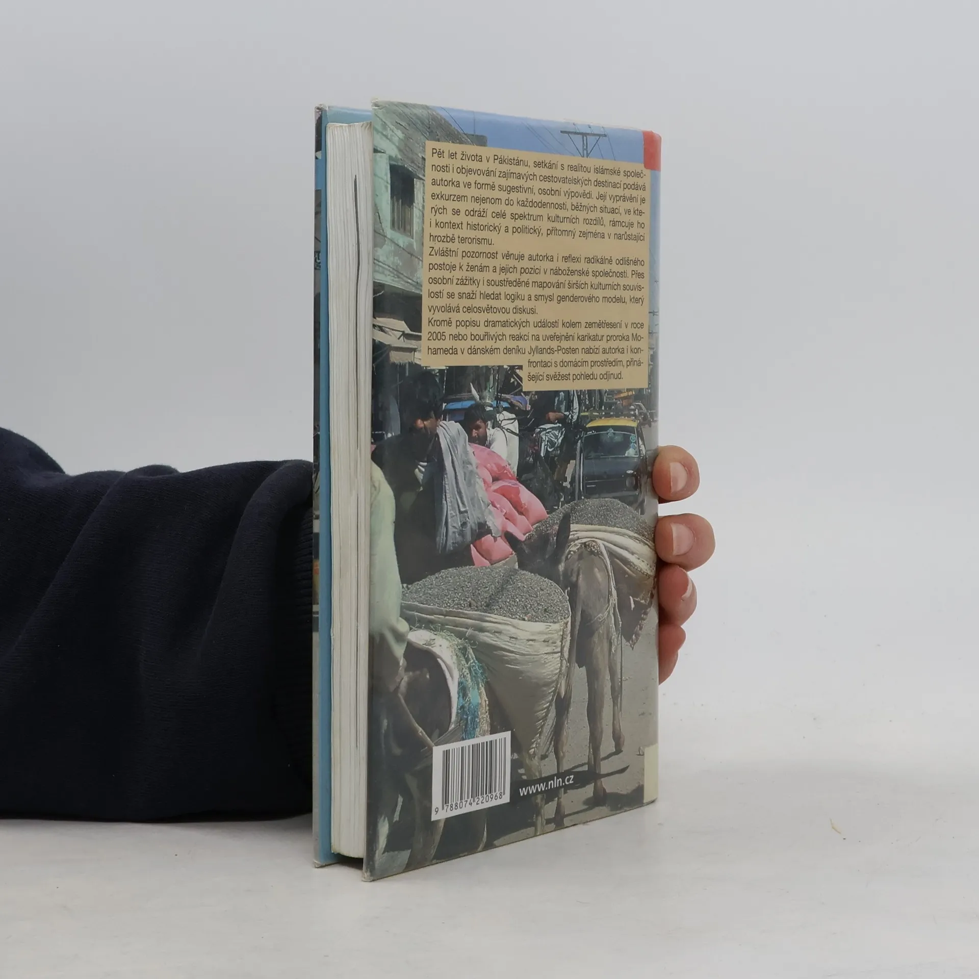 Pět let života v Pákistánu, setkání s realitou islámské společnosti i objevování zajímavých cestovatelských destinací podává autorka ve formě sugestivní, osobní výpovědi. Její vyprávění je exkurzem nejenom do každodennosti, běžných situací, ve kterých se odráží celé spektrum kulturních rozdílů, rámcuje ho i kontext historický a politický, přítomný zejména v narůstající hrozbě terorismu. Zvláštní pozornost věnuje autorka i reflexi radikálně odlišného postoje k ženám a jejich pozici v náboženské společnosti. Přes osobní zážitky i soustředěné mapování širších kulturních souvislostí se snaží hledat logiku a smysl genderového modelu, který vyvolává celosvětovou diskuzi. Kromě popisu dramatických událostí kolem zemětřesení v roce 2005 nebo bouřlivých reakcí na uveřejnění karikatur proroka Mohameda v dánském deníku Jyllands-Posten nabízí autorka i konfrontaci s domácím prostředím, přinášející svěžest pohledu odjinud. Ze slovenštiny přeložila Olga Vašková. Vydání 1.