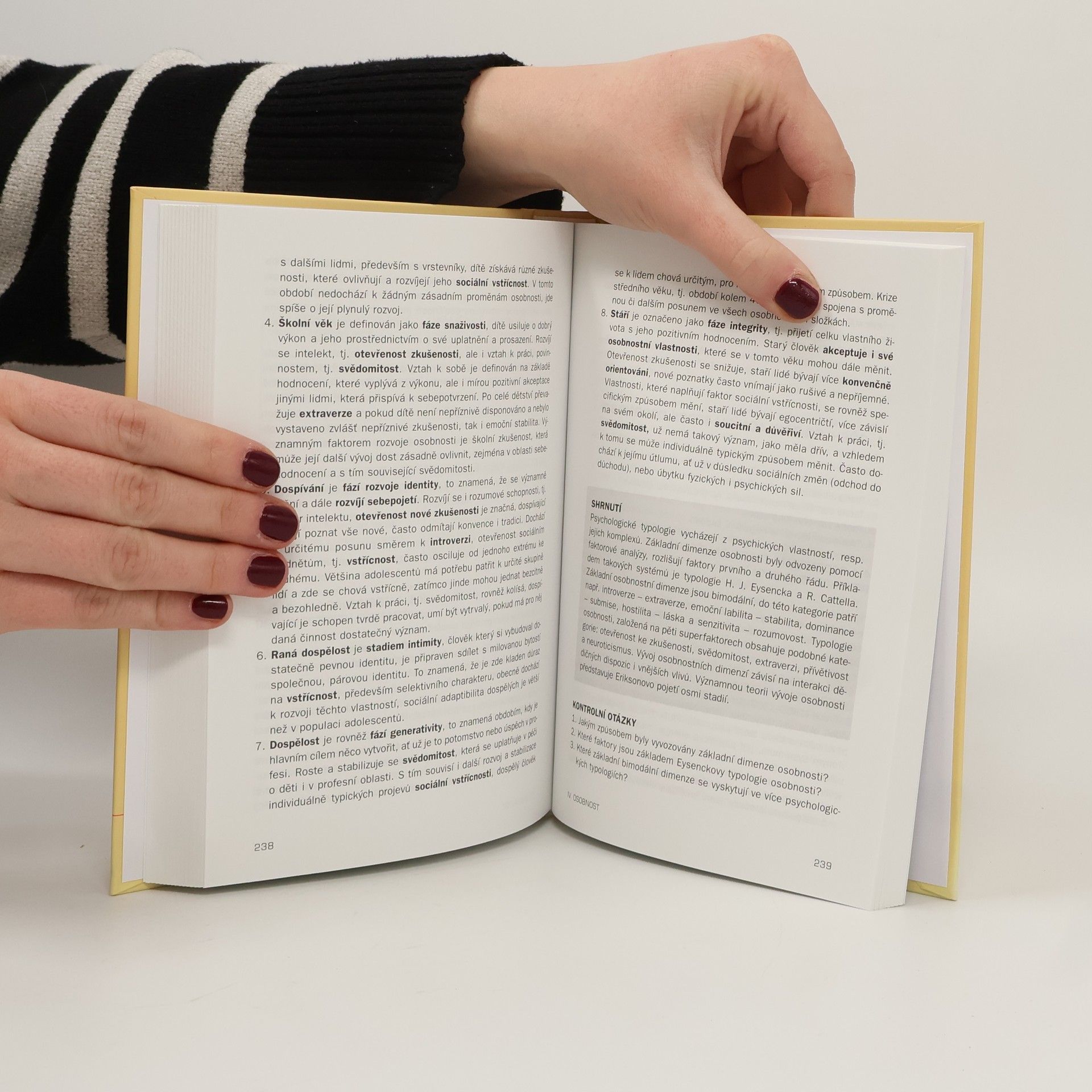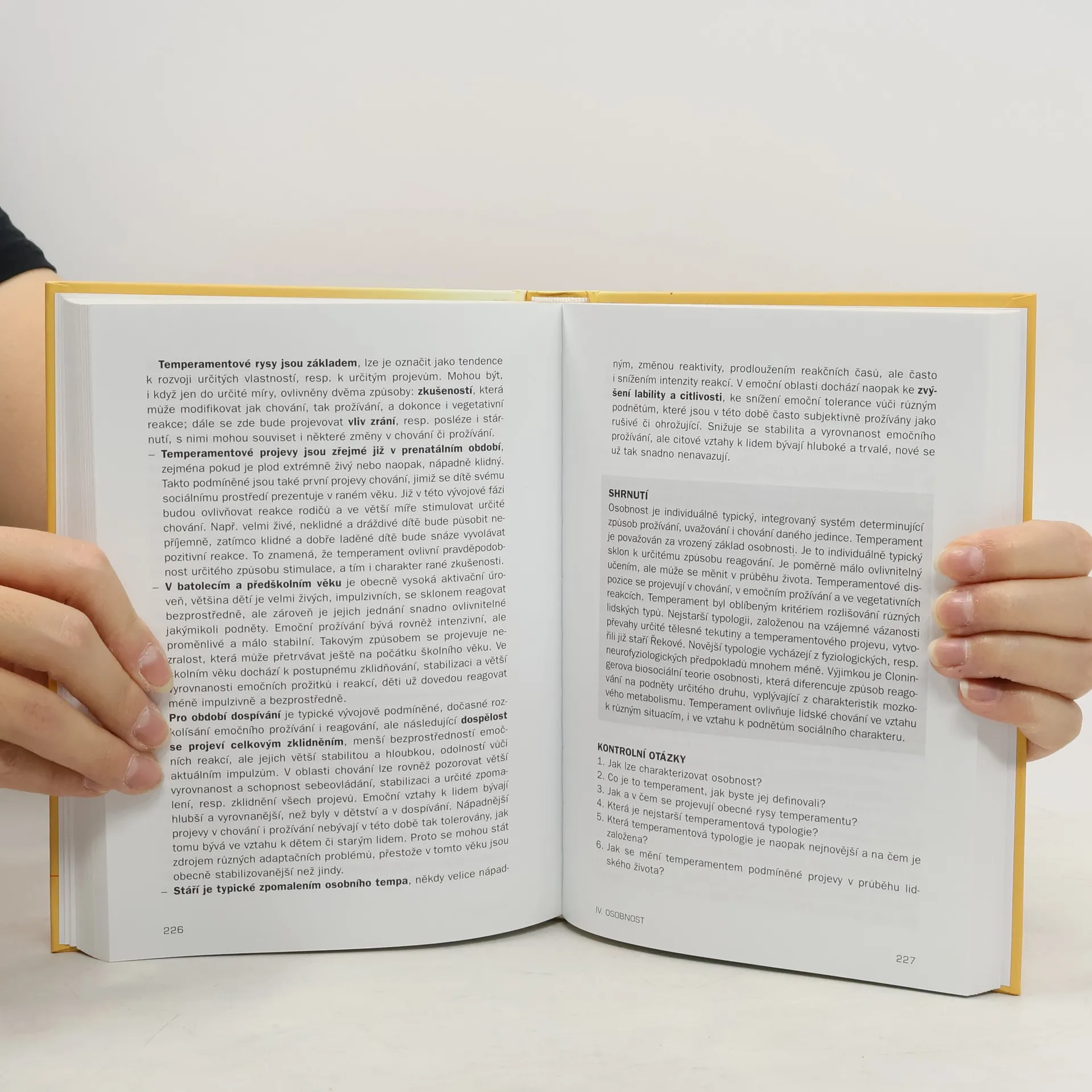 Publikace poskytuje základní orientaci v rozsáhlé oblasti psychologického poznání. Základ tvoří okruhy obecné psychologie a psychologie osobnosti. Výklad je přístupný pro začátečníky i pro pokročilé, kteří se potřebují zorientovat v praxi. Postupně jsou popsány jednotlivé poznávací procesy, emoční prožívání a psychická autoregulace. Autorka vymezuje pojem osobnost, temperament s celou šíří jeho významu, uvádí přehled typologií, vývoj temperamentových projevů. Srozumitelně je vysvětlena problematika jáství, sebepojetí a zvládání zátěžových situací. Závěr knihy je věnován problematice socializace jedince.