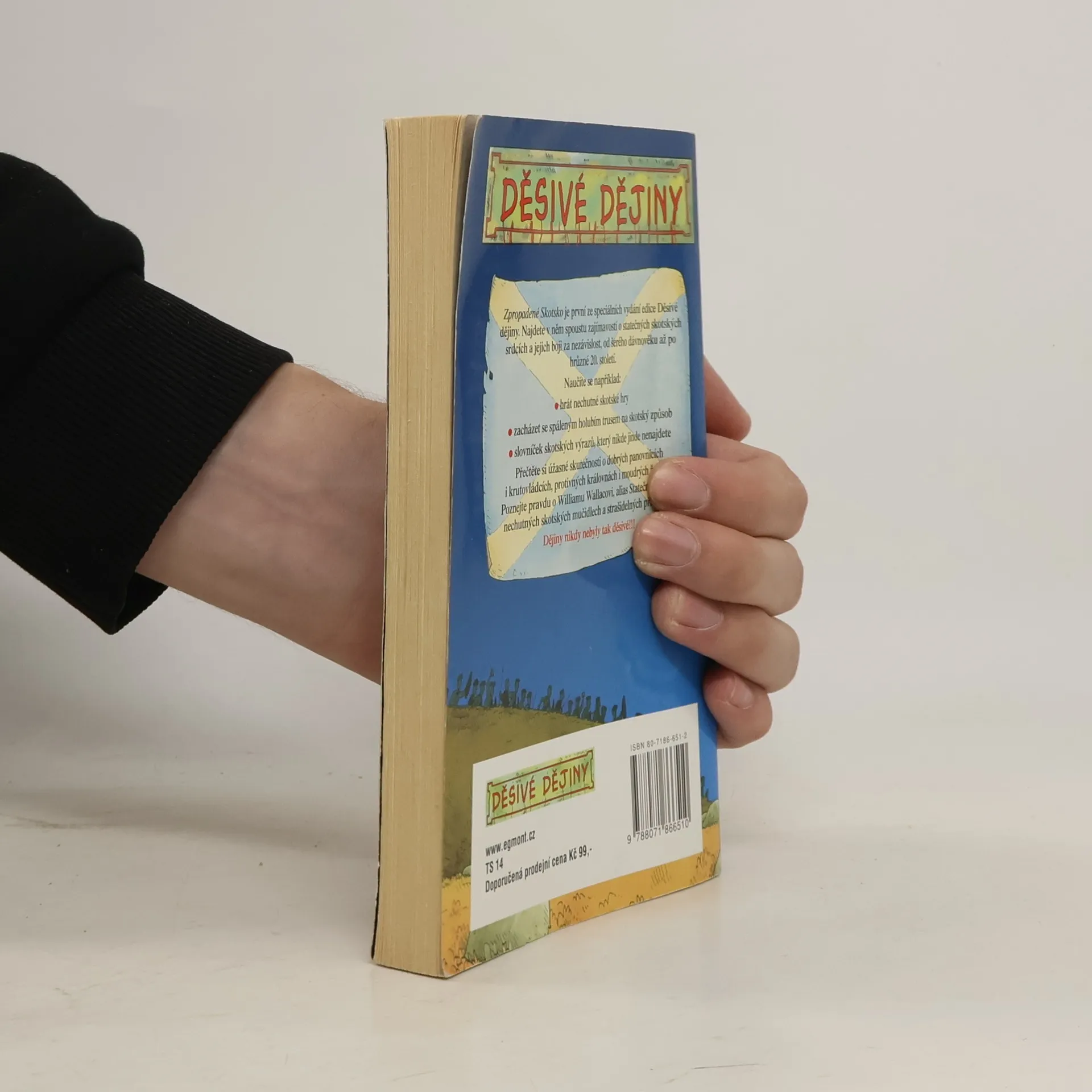 Kniha Zpropadené Skotsko byla prvním ze speciálních vydání edice Děsivé dějiny, která se věnují jediné zemi. Najdete v ní spoustu zajímavostí o ušlechtilých Skotech a jejich odhodlaném boji za nezávislost na Angličanech, který vedou už od temného středověku. Přečtěte si rovněž úžasné skutečnosti o dobrých panovnících i ukrutných kruťasech, protivných královnách i moudrých mudřenách. Dozvíte se také skutečnou pravdu o Williamu Wallacovi, alias Statečném srdci, a za odměnu se naučíte ještě pár nechutných skotských her. Dějiny nikdy nebyly tak děsivé!
