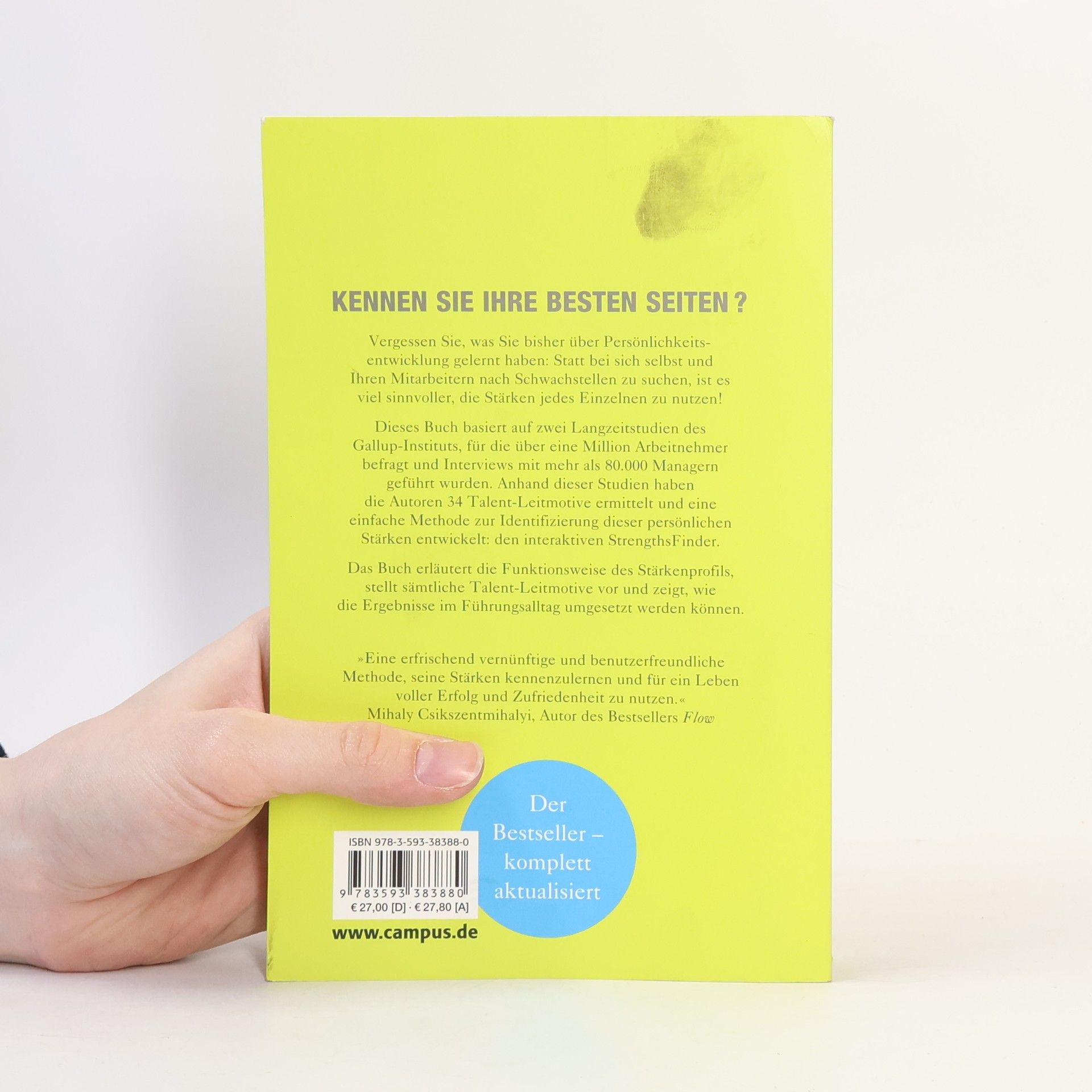 Die Autoren haben eine einfache und anwenderfreundliche Methode entwickelt, mit der jeder seine Stärken identifizieren kann: den StrengthsFinder. Wer diesen Internet-Test nutzt, erhält als Auswertung sofort seine individuelle »Top Five« der Stärken. Das Buch liefert Führungskräften und Mitarbeitern fundierte Informationen, wie die Ergebnisse im Arbeitsalltag umgesetzt werden können. Der Longseller – komplett aktualisiert und mit neuem Vorwort.