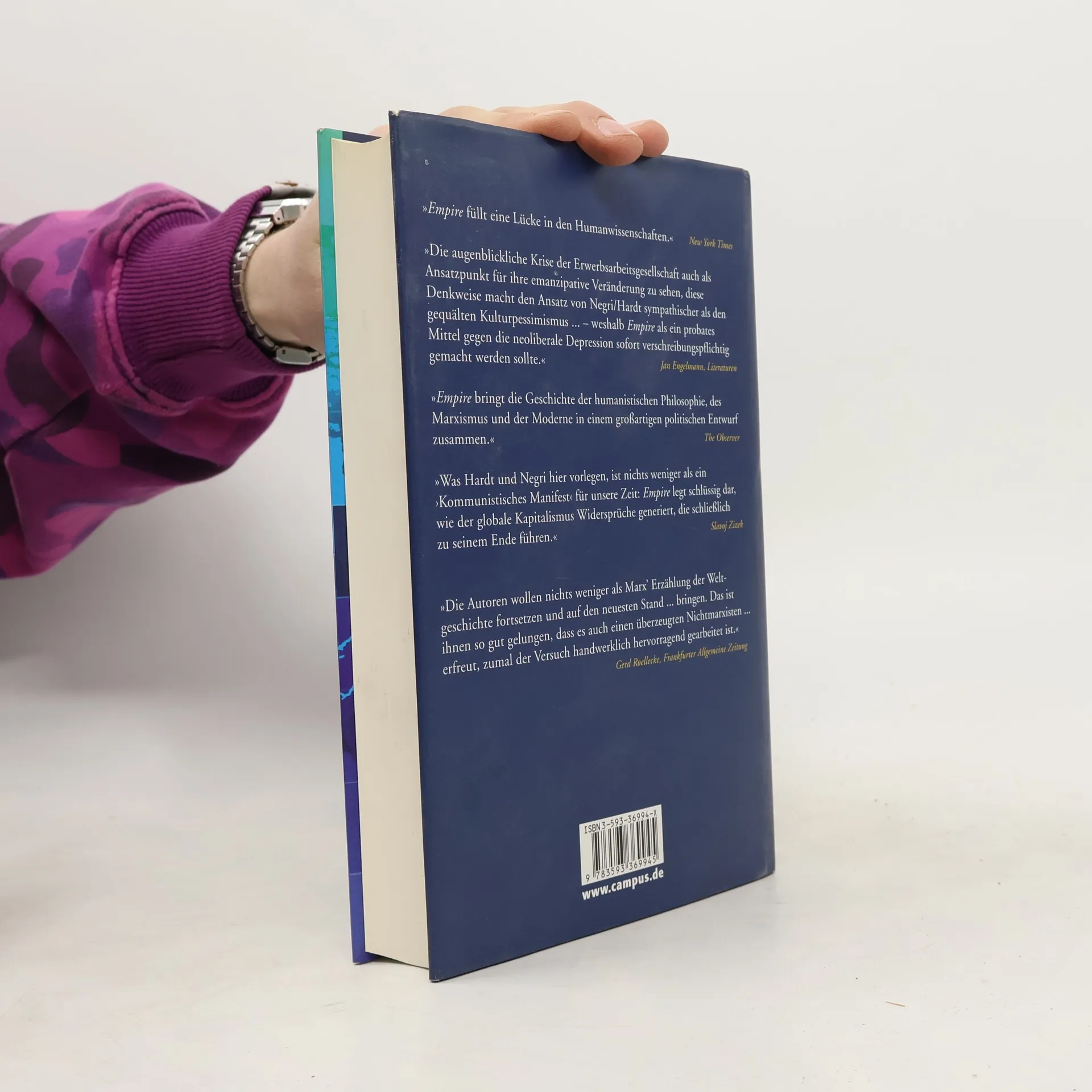 Empire ist eine brillante politische Diagnose des postmodernen Kapitalismus im Zeitalter der Globalisierung. Die Phase des Imperialismus ist zu Ende, abgelöst wurde er vom »Empire«, einem Weltreich ohne Zentrum und mit umfassendem Herrschaftsanspruch, das in seinem rastlosen Drang nach Ausdehnung jeden nationalstaatlichen Rahmen sprengt. Zugleich ist es ein Reich vollendeter Totalität, in dem es keinen moralischen oder kritischen Standpunkt von »außen« mehr gibt. Es verfügt über eine biopolitische Maschinerie, die jeden Einzelnen kontrolliert. In den Arbeitsformen der »New Economy«, wo intellektuelles Wissen und die Hoffnung auf eine bessere Welt zusammenfließen können, verorten die Autoren ein neues »Proletariat«. In einer packenden Analyse entwickeln sie den Gedanken der Vielheit der Menschen, die nach Wegen zu einer neuen Gesellschaft sucht. »Die Autoren wollen nichts weniger als Marx´ Erzählung der Weltgeschichte fortsetzen und auf den neuesten Stand ... bringen. Das ist ihnen so gut gelungen, dass es auch einen überzeugten Nichtmarxisten... erfreut, zumal der Versuch handwerklich hervorragend gearbeitet ist.« Gerd Roellecke, Frankfurter Allgemeine