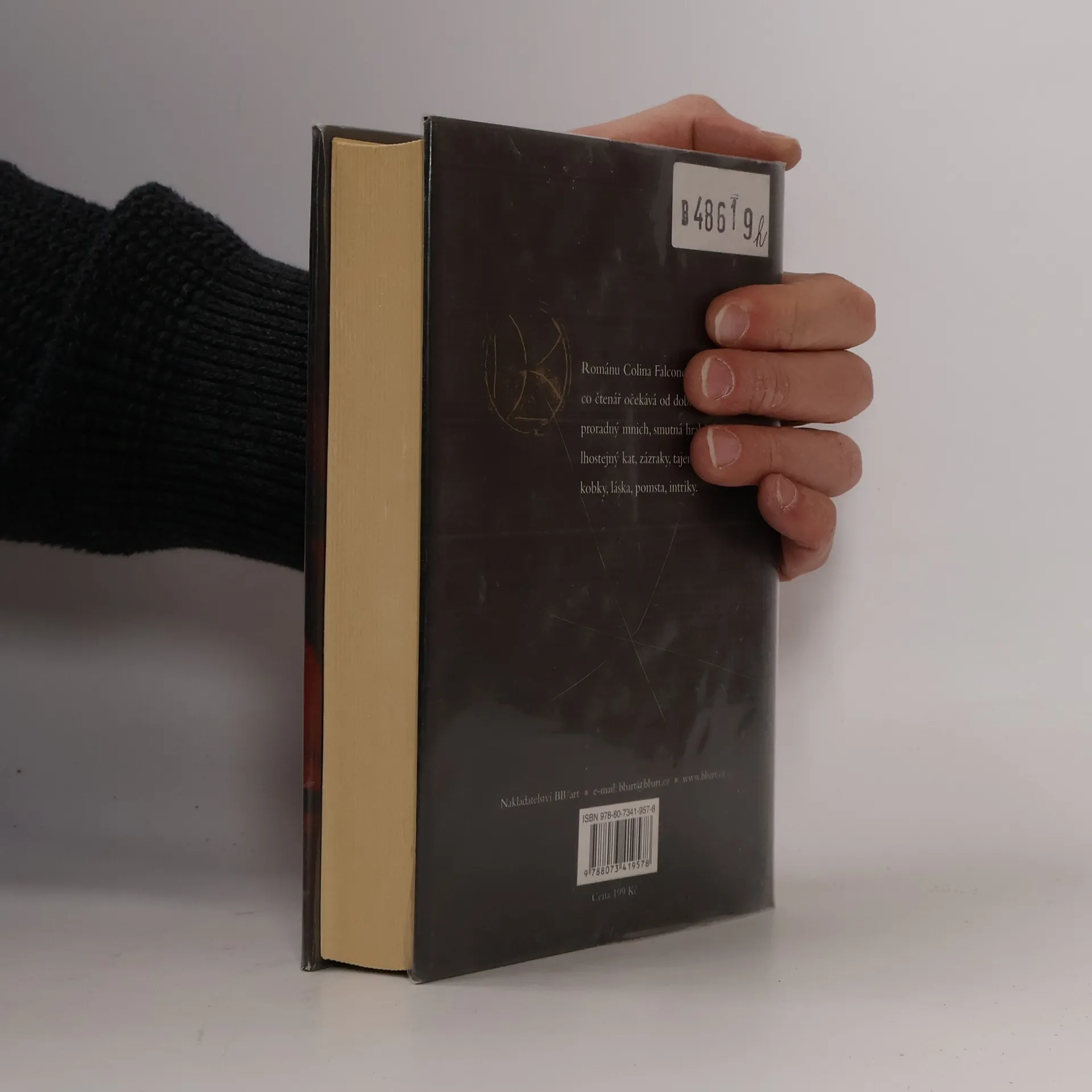Román Colina Falconera se odehrává v Langedocu ve 13. století. Moc katolické církve neohrožují jen kataři, ale i starobylé mýty a legendy, které sahají k samotným počátkům křesťanství, a v Langedocu zůstávají stále živé. V každé báji se skrývá zrnko pravdy. V žilách dávných merovejských králů prý kolovala svatá krev Kristova. Starobylý šlechtický rod, z něhož povstali velmistři templářského řádu, střeží pradávné tajemství už po staletí. Veselý a svobodomyslný slunný jih Francie ve jménu jediné pravé víry bez milosti decimuje inkvizice. Horlivá zbožnost jen zakrývá pomstychtivost a touhu po moci. Inkvizice neušetří nikoho. Majetek či urozený původ jsou spíš přitěžující okolnost. Madeleine de Peyrolles, jediná dcera mistra kameníka, má od mládí vidiny. Nedokáže vysvětlit, co znamenají, ani jak přišla ke stigmatům na rukou a nohou. Namísto požehnání se vidiny stávají prokletím celého kraje. Románu Colina Falconera neschází nic, co čtenář očekává od dobré beletrie: proradný mnich, smutná hraběnka, lhostejný kat, zázraky, tajemství, hrady, kobky, láska, pomsta, intriky.