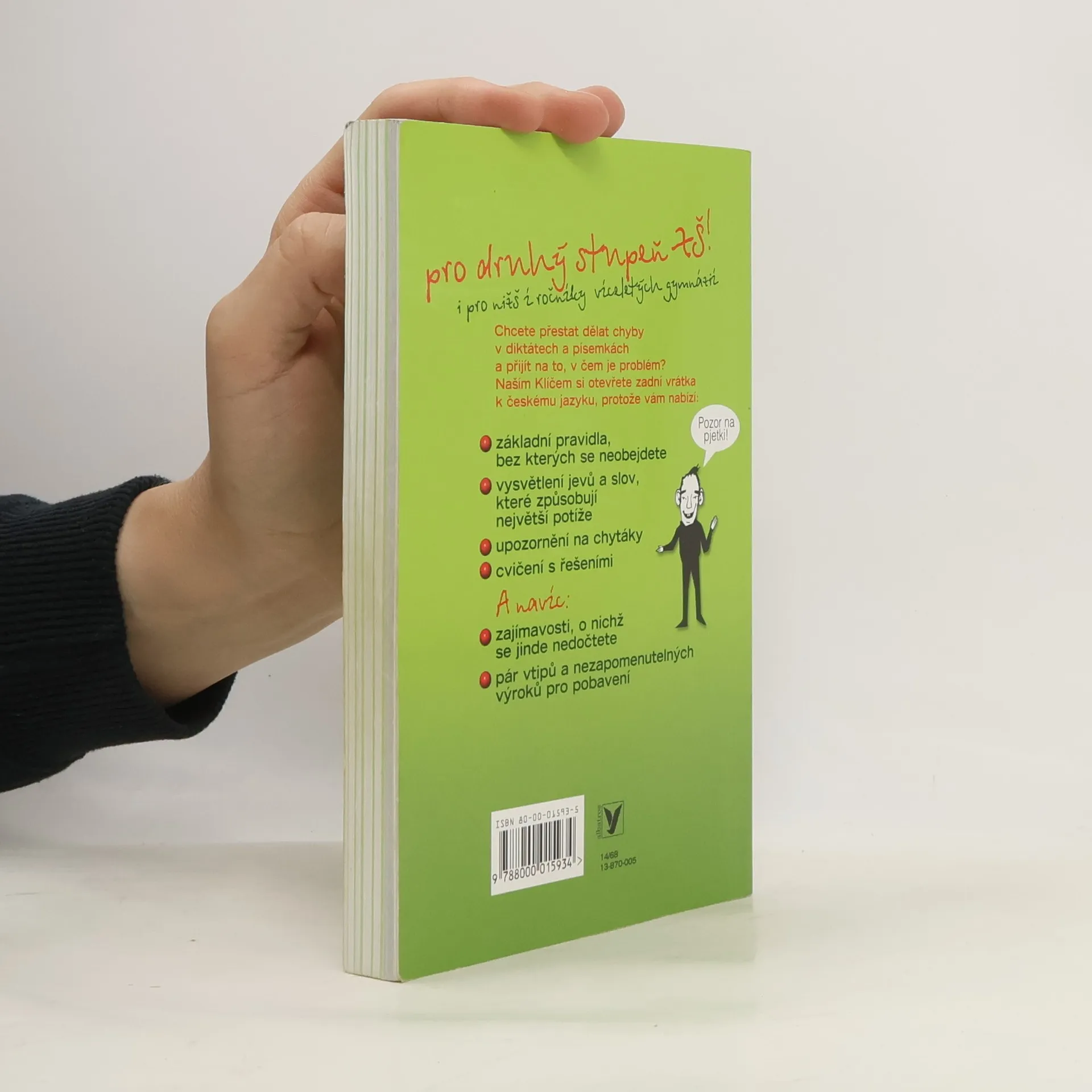 Doplňková učebnice češtiny pro 2. stupeň ZŠ a nižší ročníky víceletých gymnázií.Jedna z prvních příruček nové ediční řady není ani klasickou cvičebnicí, ani nezáživným výkladem učiva. Jejím cílem je především pomoci dětem pochopit a zapamatovat si to, s čím mívají ve škole největší problémy. Pravopisné "chytáky" jsou jasně graficky zvýrazněné a základní pravidla jsou uspořádána do přehledných tabulek. Vtipná cvičení, kreslené postavičky a výroky ze školních lavic navíc zpestří chvíle s knihou.