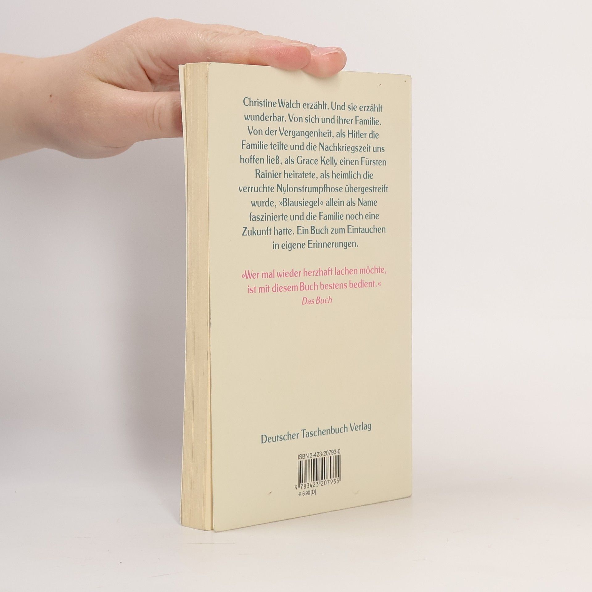 »Walch, Jahrgang 45, beschreibt ihre Kindheit und Jugend voller Witz, Selbstironie und mit verblüffender Ehrlichkeit.« Die Welt Der tückischste – und geburtenförderndste – Satz der frühen 60er Jahre lautete: »Ich paß schon auf!« Da war die eine Hand bereits unter dem Dralon-Pullover, und die andere zwängte sich in den Taillenbund der kurz zuvor erfundenen Strumpfhose. In diesen Sekunden entschieden sich für einen weiblichen Teenager Ruf und weitere Lebensumstände … Christine Walch erzählt. Und sie erzählt wunderbar. Von sich und ihrer Familie. Von der Vergangenheit, als Hitler die Familie teilte und die Nachkriegszeit uns hoffen ließ, als Grace Kelly einen Fürsten Rainer heiratete, als heimlich die verruchte Nylonstrumpfhose übergestreift wurde, »Blausiegel« allein als Name faszinierte und die Familie noch eine Zukunft hatte. Ein Buch zum Eintauchen in die eigene Erinnerung.