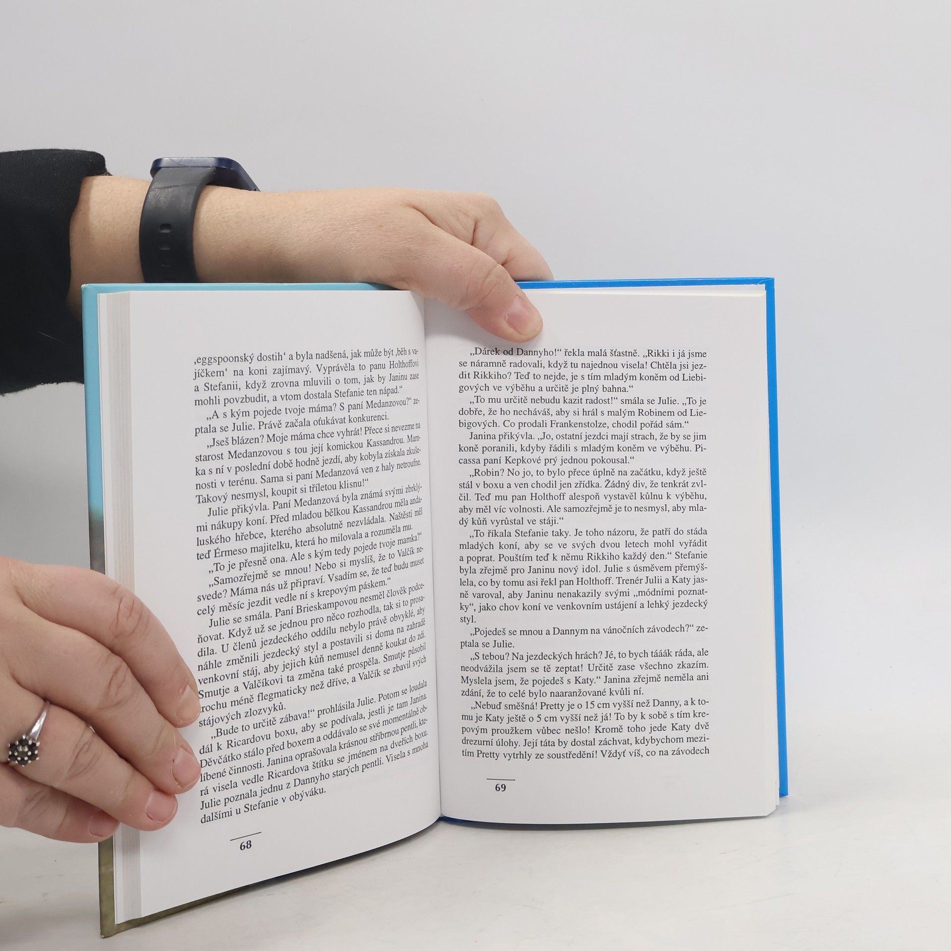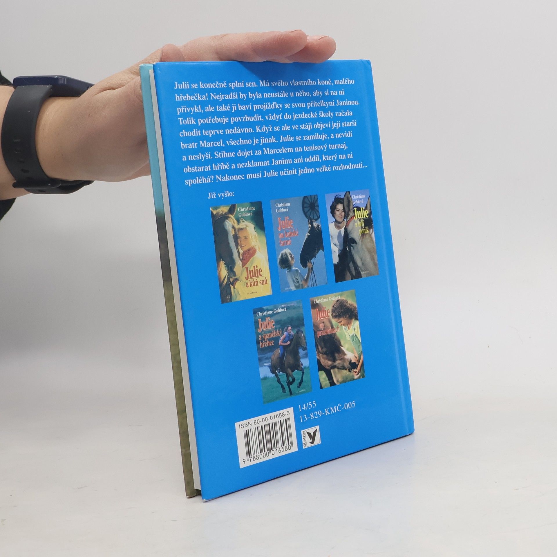 Šesté pokračování příběhů o Julii a její lásce ke koním. Tentokrát se Julie zamiluje. Čtenářům kolem 10 let. Julii se splnil velký sen, má vlastního koně, malé hříbátko Coffeeho. Když není na tréninku, tak je u svého hříběte. To se však změní, když se ve stájích objeví sebevědomý mladík Marcel, bratr zakřiknuté Janiny. Julie se bláznivě zamiluje a nechce si připustit, že jeho chování bere sebevědomí jeho sestře a jí diktuje, co má dělat. Nastane však chvíle, kdy se bude muset rozhodnout, jestli dá přednost koním a přátelům před nafoukaným floutkem. Kniha v závěru nabízí i ilustrovaný slovníček jezdectví. Volně navazuje na knihu "Julie na prázdninách". ... celý text