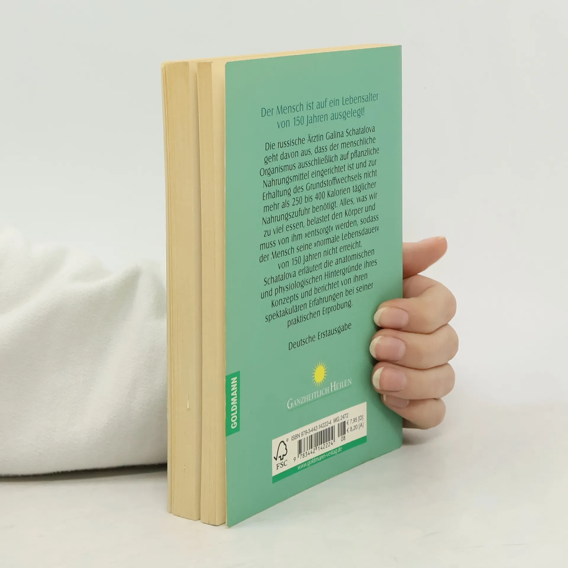 Die russische Ärztin Galina Schatalova geht davon aus, dass der menschliche Organismus ausschließlich auf pflanzliche Nahrungsmittel eingerichtet ist und zur Erhaltung des Grundstoffwechsels nicht mehr als 250 bis 400 Kalorien täglicher Nahrungszufuhr benötigt. Alles, was wir zu viel essen, belastet den Körper und muss von ihm \"entsorgt\" werden, sodass der Mensch seine \"normale Lebensdauer\" von 150 Jahren nicht erreicht. Schatalova erläutert die anatomischen und physiologischen Hintergründe ihres Konzepts und berichtet von ihren spektakulären Erfahrungen bei seiner praktischen Erprobung. (Verlagsangabe)