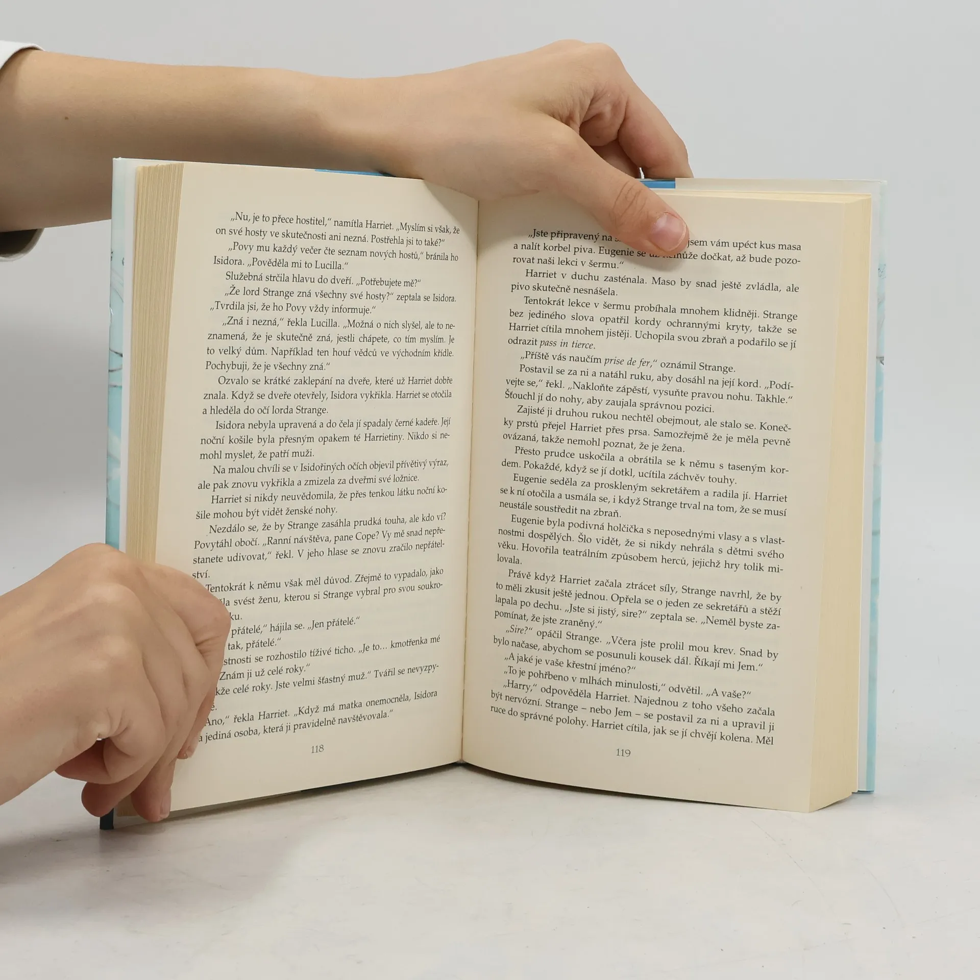 Harriet má už dost povinností spojených se svým titulem vévodkyně z Berrow, nudí ji uhlazené čajové dýchánky i elegantní bály. Tak ráda by zavítala na nějaký nespoutaný večírek, kde by mohla popustit uzdu svým skrytým přáním a touhám! Ovšem kdyby navštívila nechvalně známou sešlost v sídle lorda Strangea, jež proslulo jako místo setkání nespoutaných mužů, žen i milostných hrátek, nevyhnula by se skandálu. A právě proto se musí přestrojit za někoho jiného… Lord Strange se těší na další noc plnou nevázané vášně…, ale pak zjistí, že onen rozkoší chtivý mladík je ve skutečnosti nejkrásnější ženou v místnosti. Proč jen takováto žena navštíví místo neřesti a dává tím v sázku svou dobrou pověst? A co víc - byla by ochotna zůstat? Nejen na dnešní noc, ale napořád?
